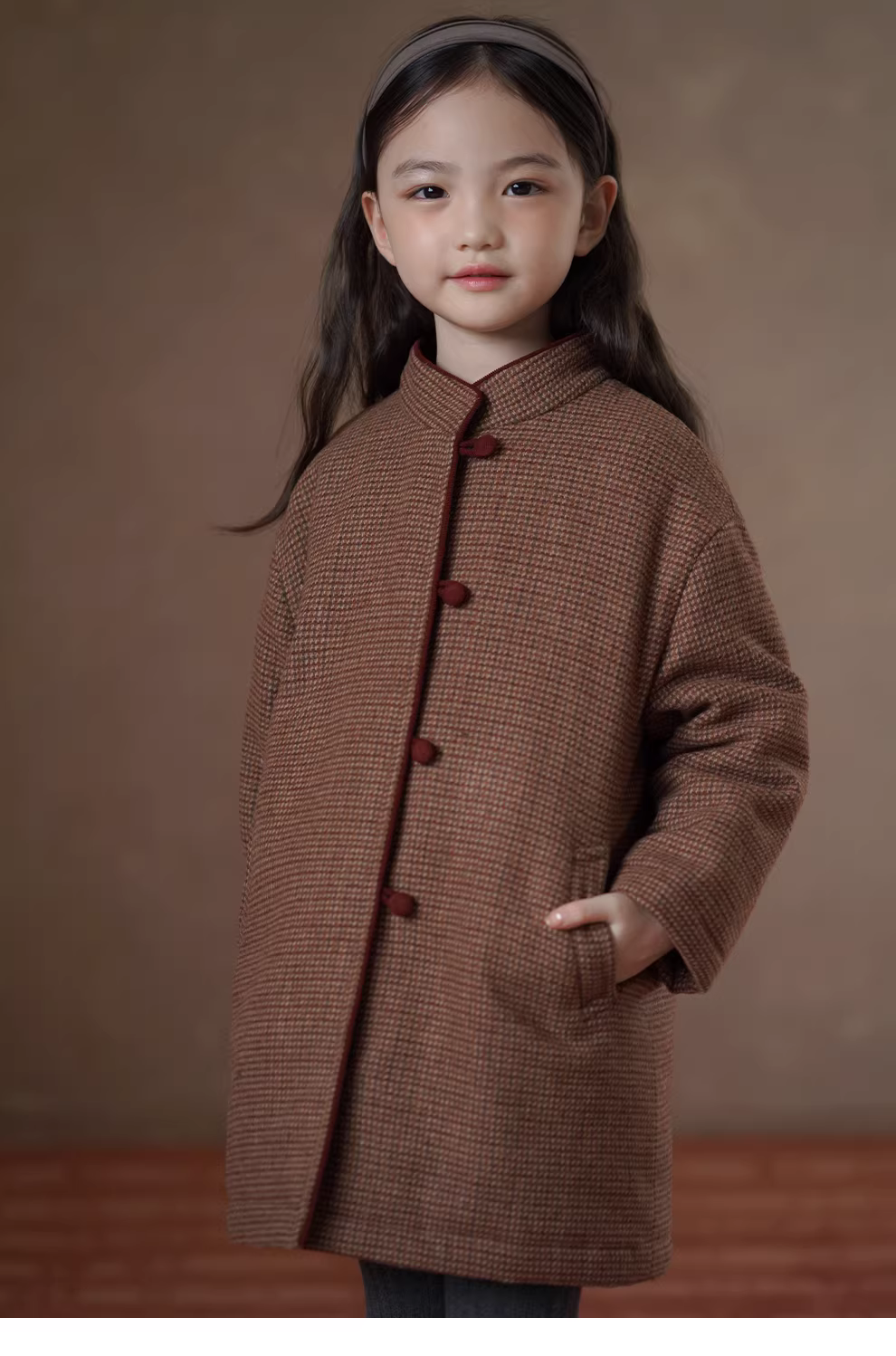 - Quần áo mùa đông trẻ em kẻ sọc cổ điển phong cách Trung Quốc mới áo khoác cotton áo khoác len nữ áo khoác dài vừa phải cho bé gái