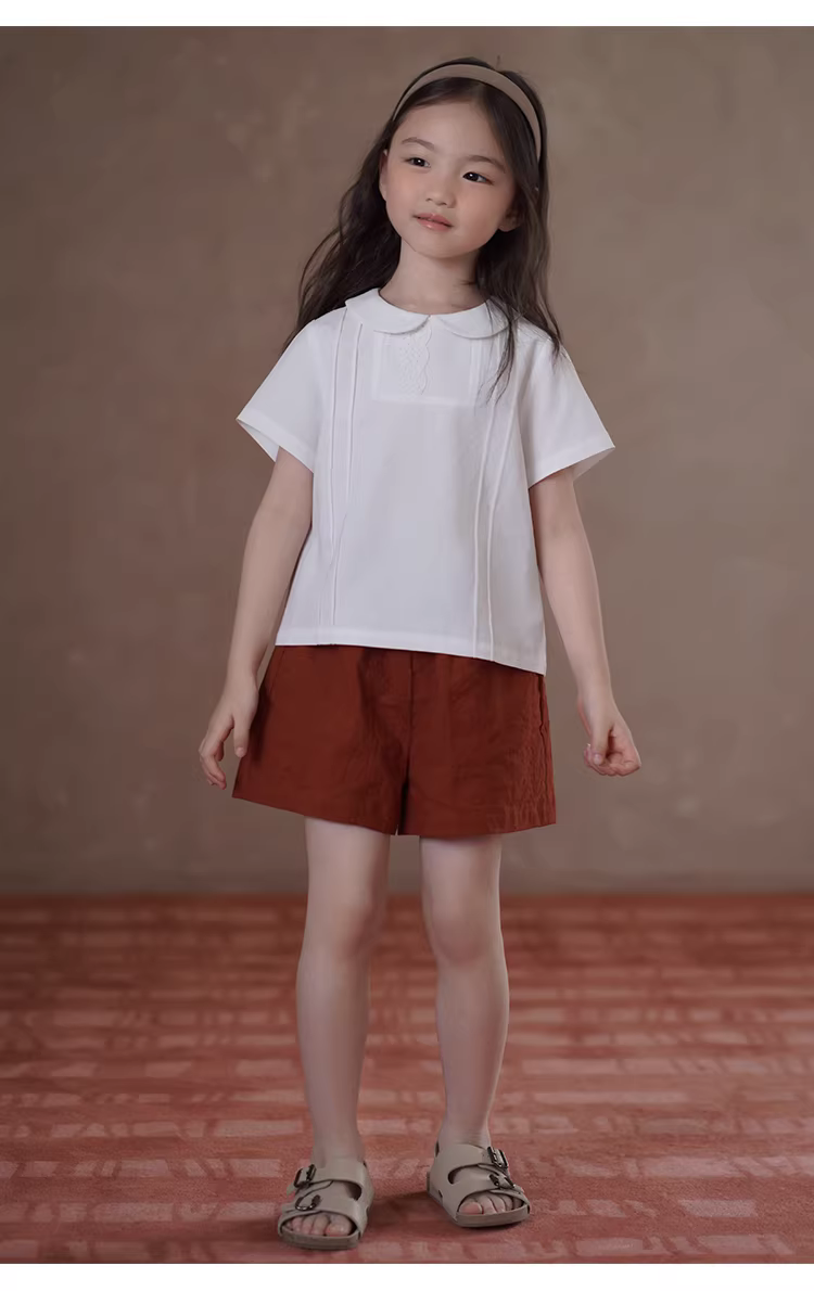 - Quần áo mùa hè cho trẻ em Quần dài dáng rộng phong cách Hàn Quốc Quần dài đến đầu gối cho bé gái Quần short thêu cotton thân thiện với da cho bé gái