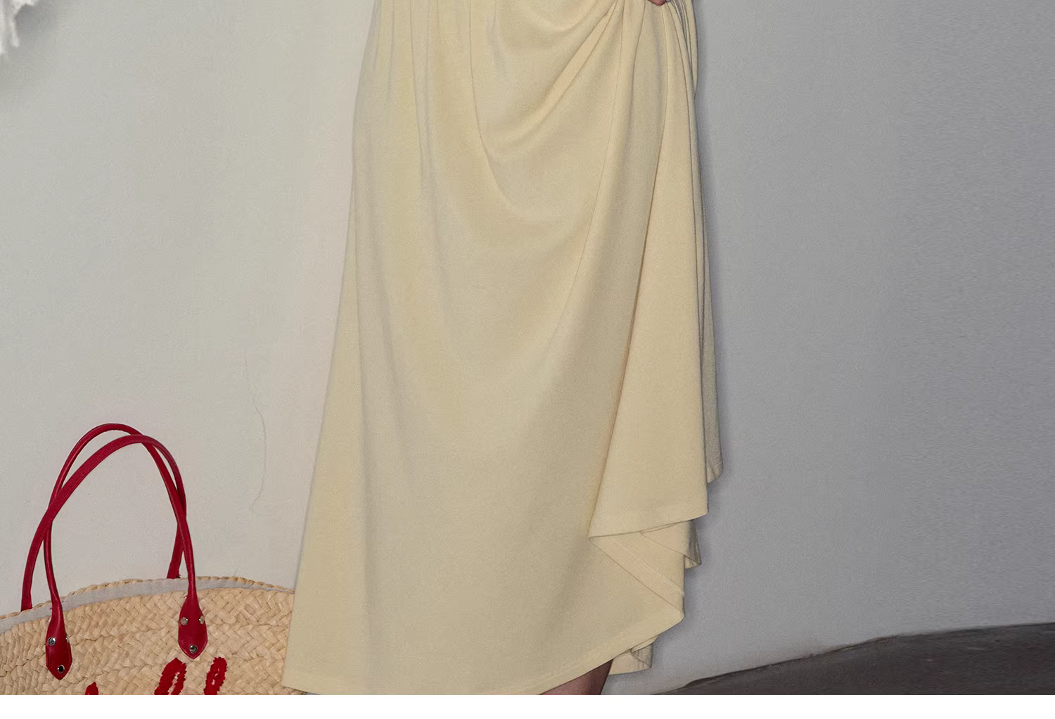 Quần áo mùa hè cỡ lớn mới của Zhang Daren dành cho các cô gái mũm mĩm, áo trễ vai tôn dáng và bộ váy chữ A giản dị.