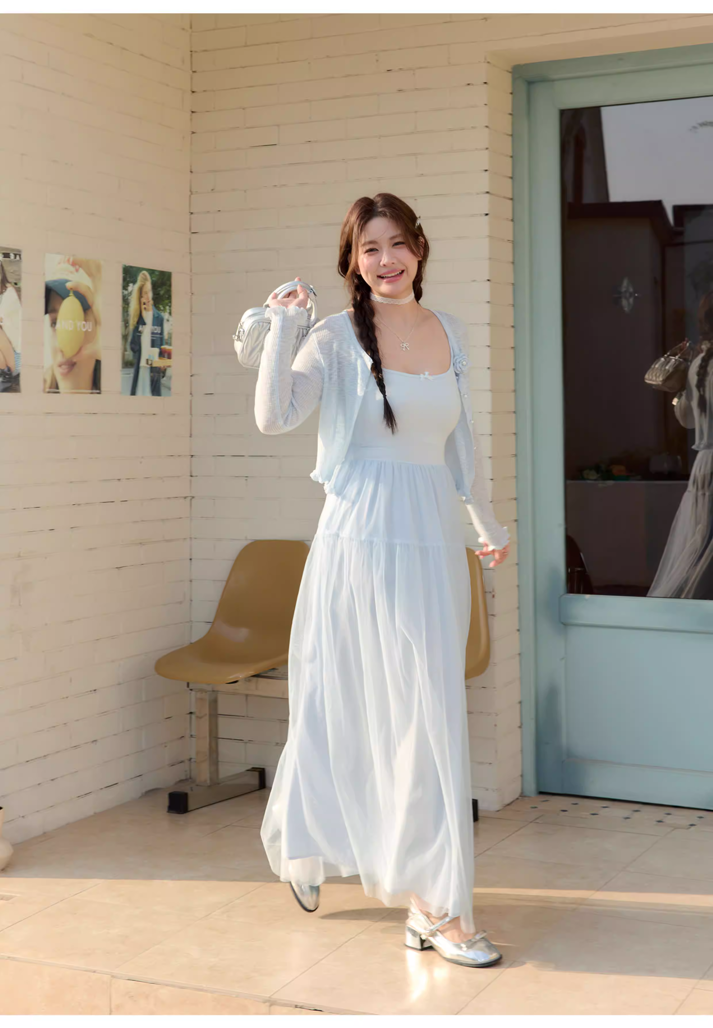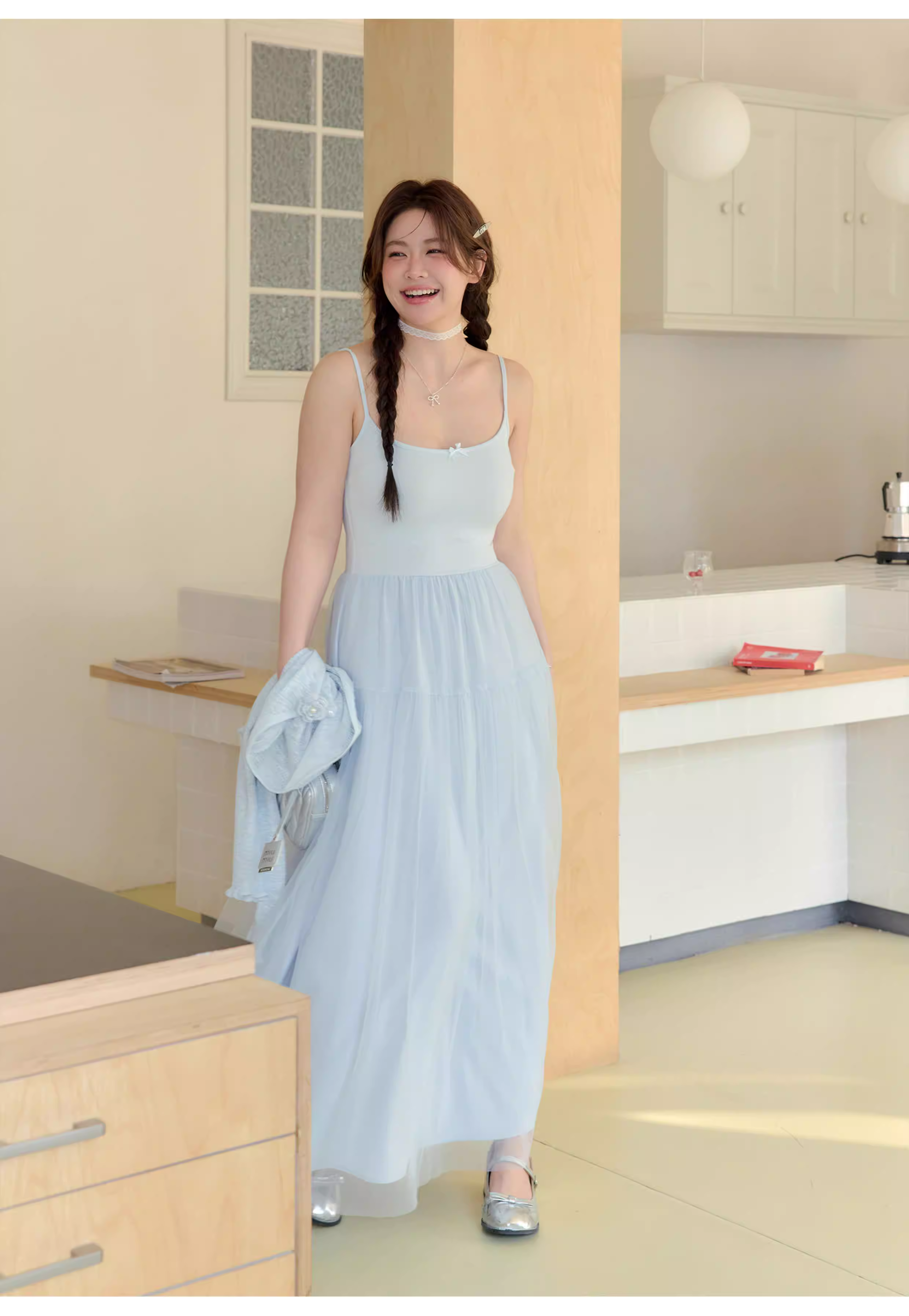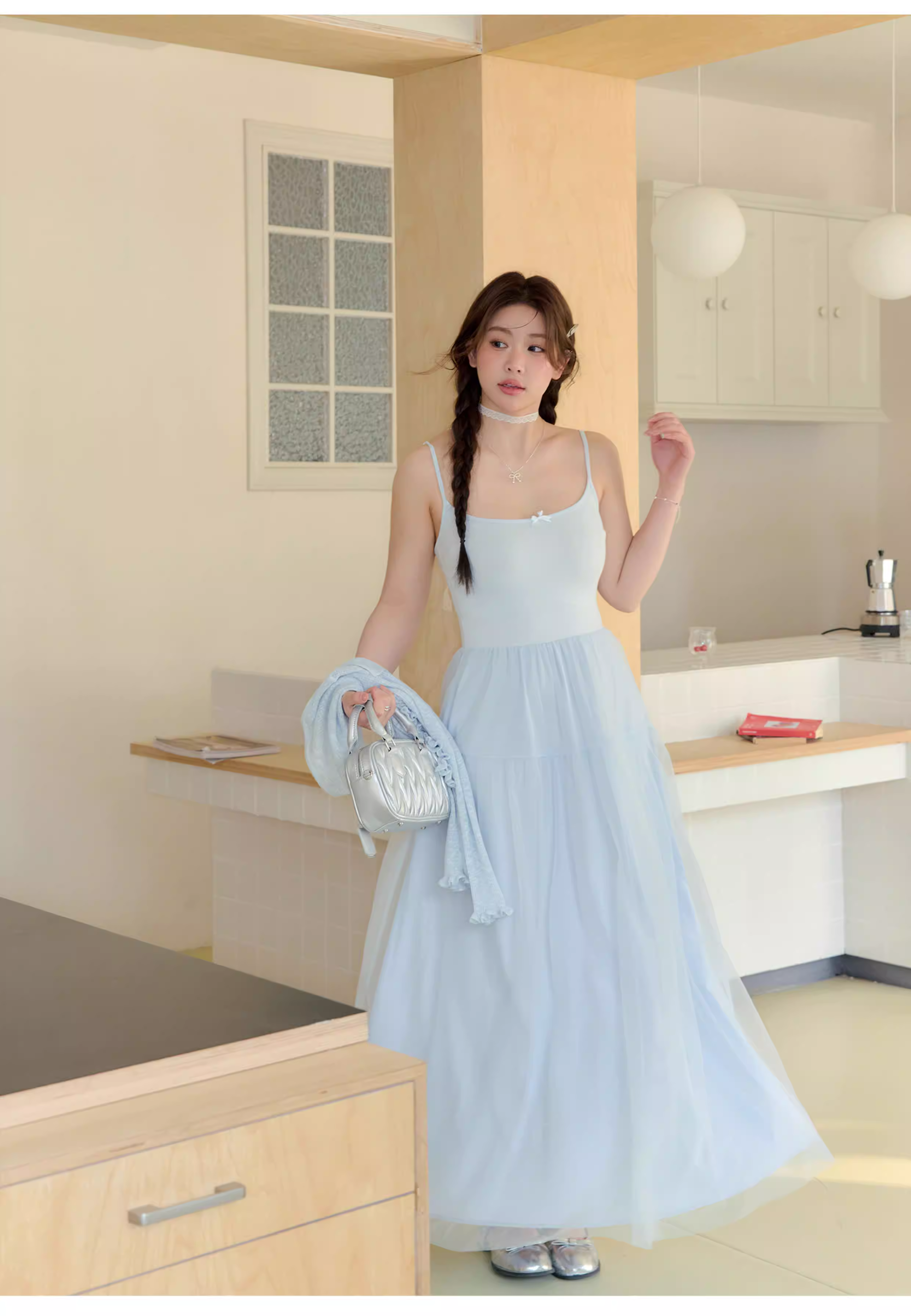 - Quần áo nữ cỡ lớn dành cho người lớn, váy thon gọn cho các cô gái mũm mĩm, phong cách nhẹ nhàng, màu Morandi, váy dây spaghetti.