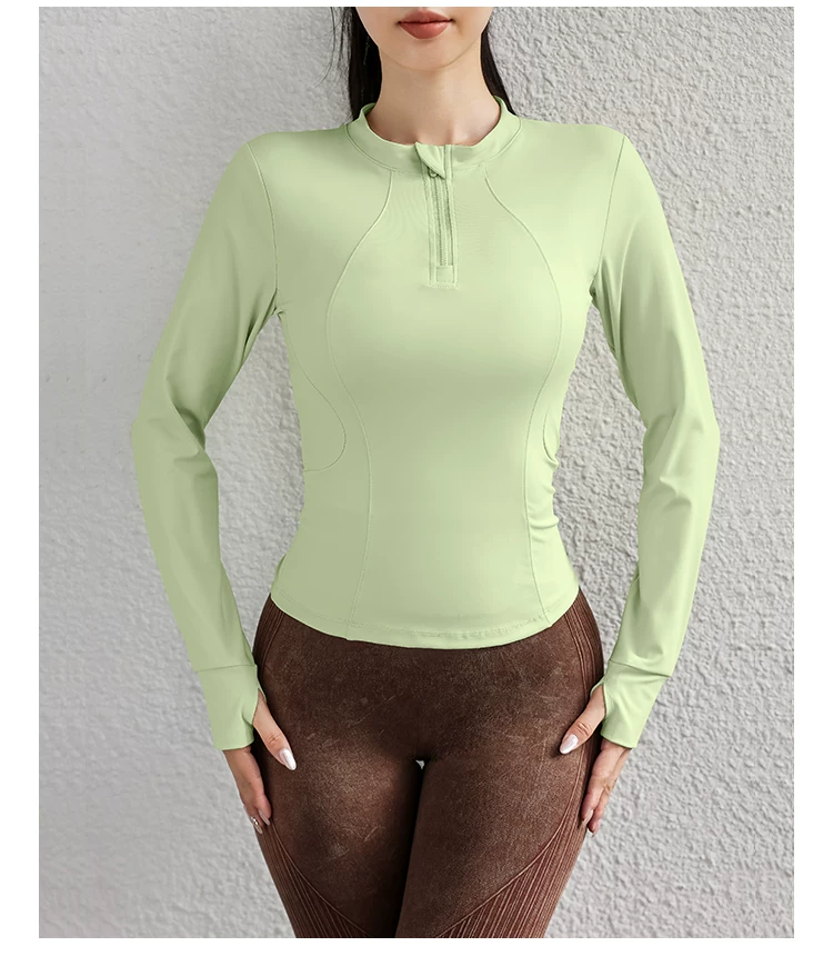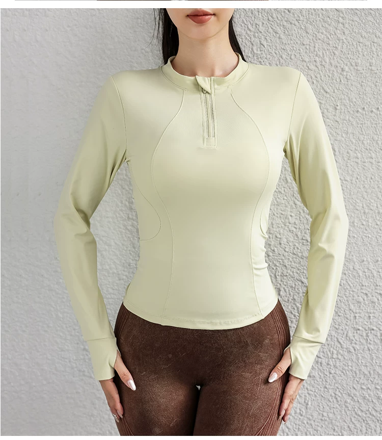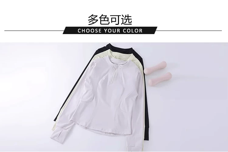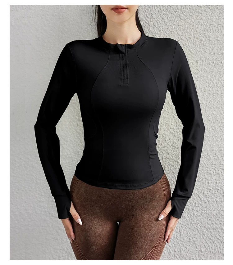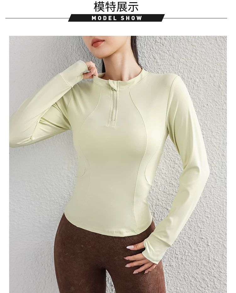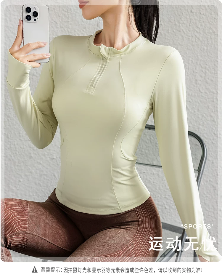 - Quần áo tập luyện chạy bộ mùa thu đông, đồ tập yoga, áo khoác ngoài, áo nửa khóa kéo, ôm sát, nhanh khô, co giãn, áo thể thao dài tay.
