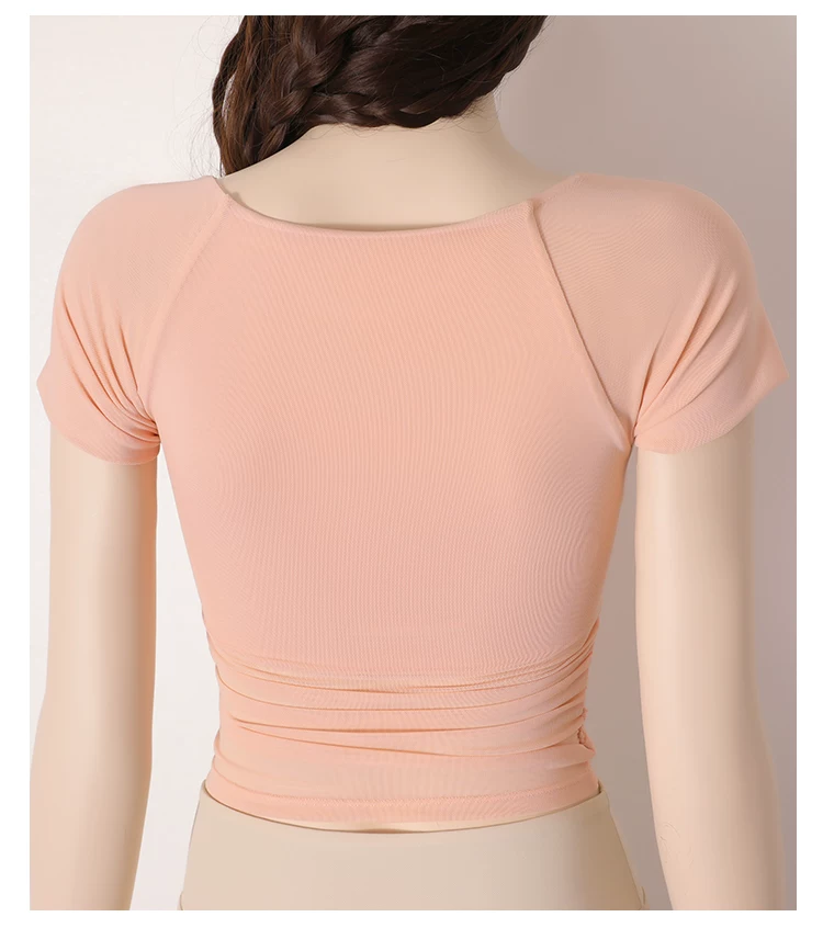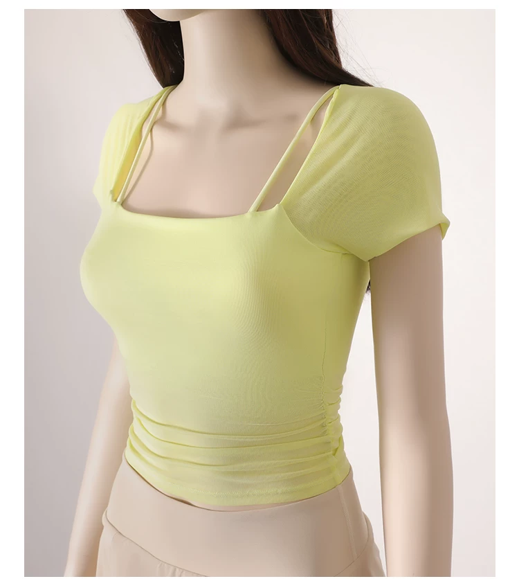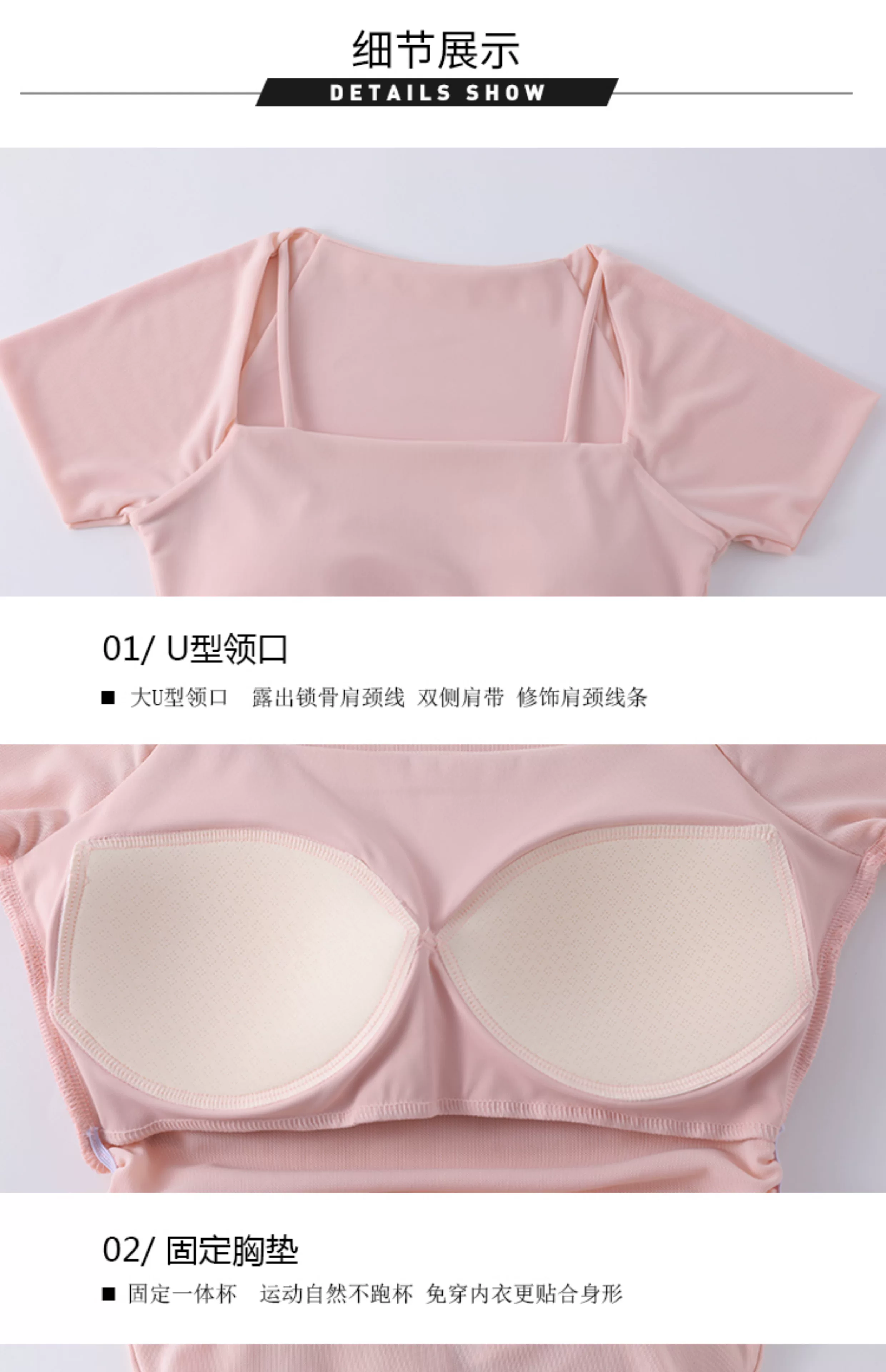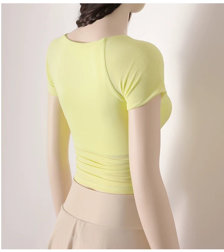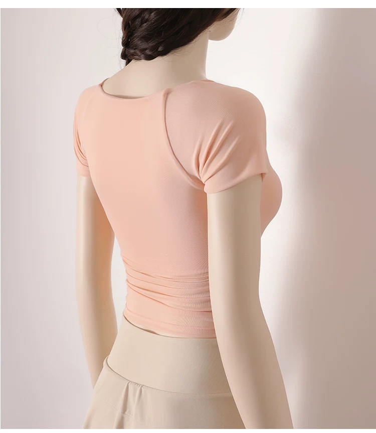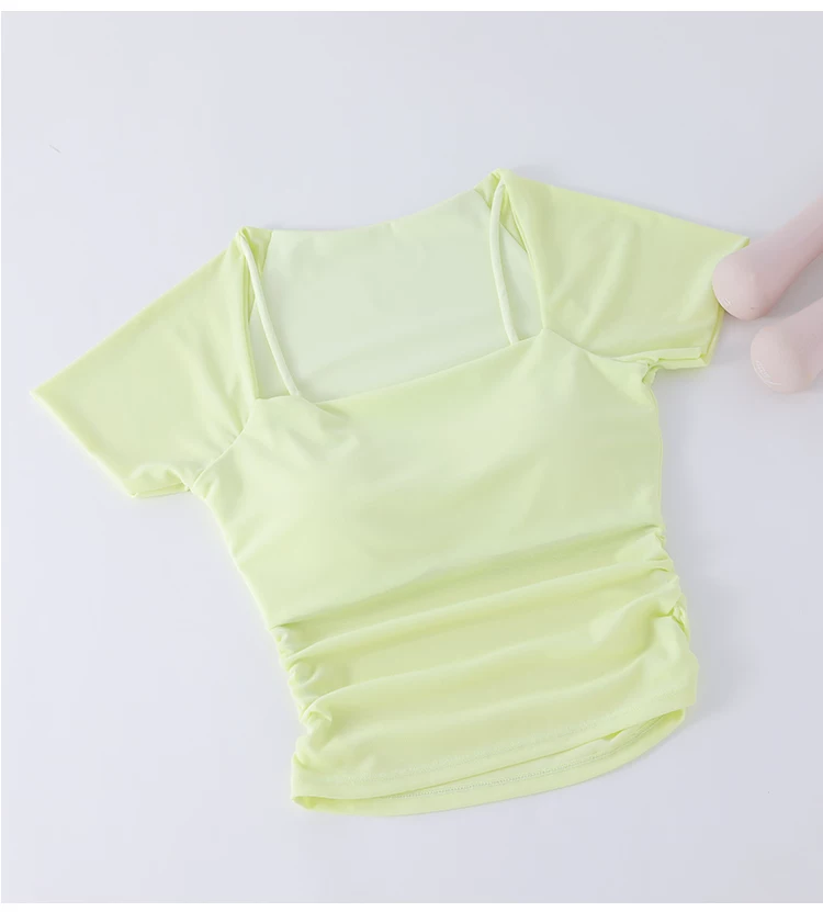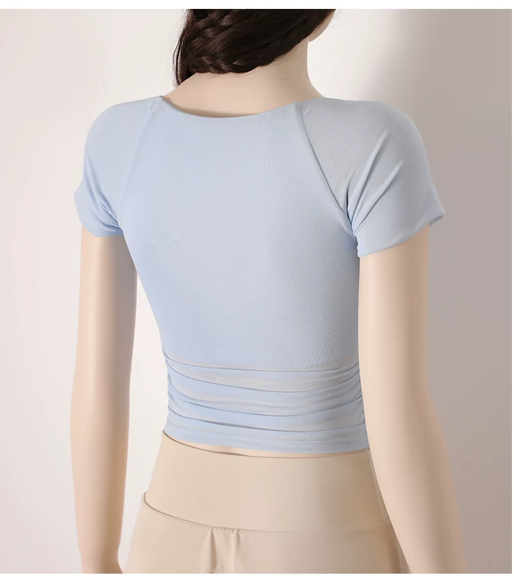 - Quần áo tập Pilates thanh lịch cao cấp, quần áo tập yoga cho nữ, mùa hè có đệm ngực, áo thun ngắn tay chống sốc, áo thể thao