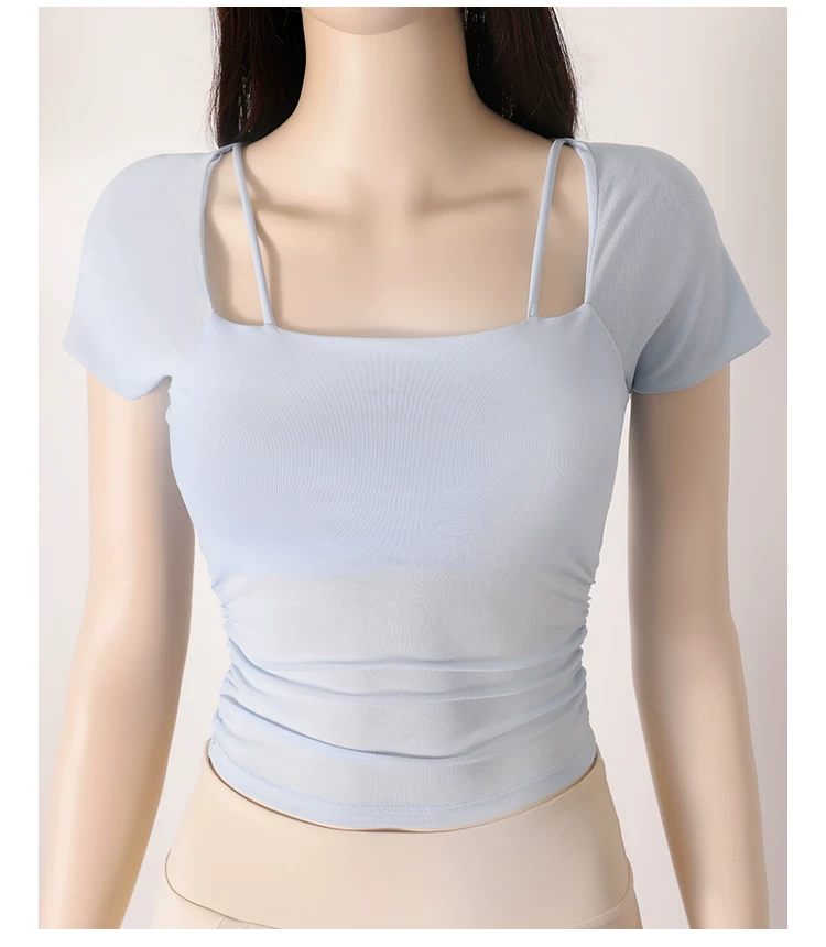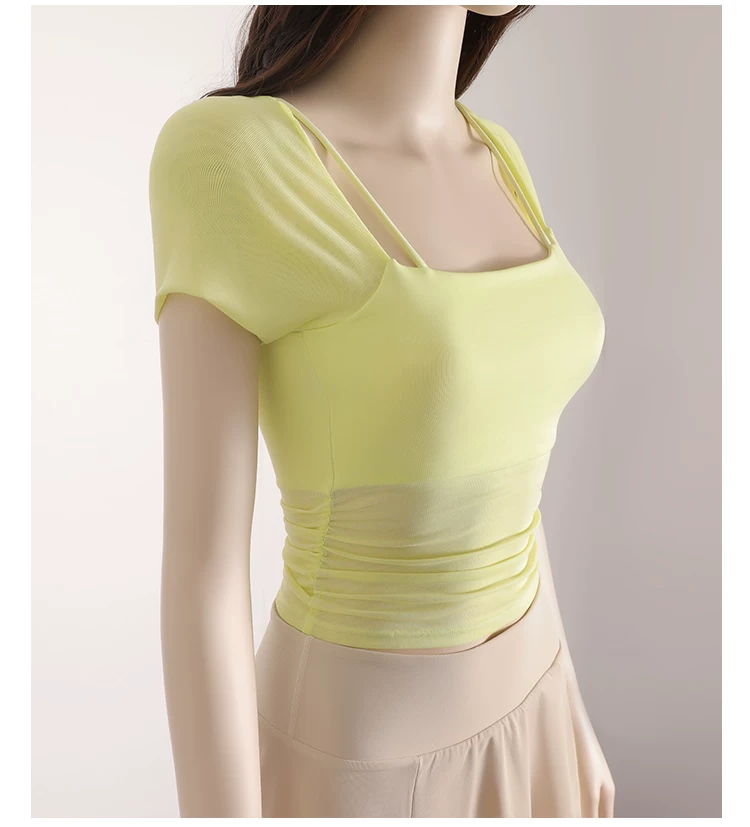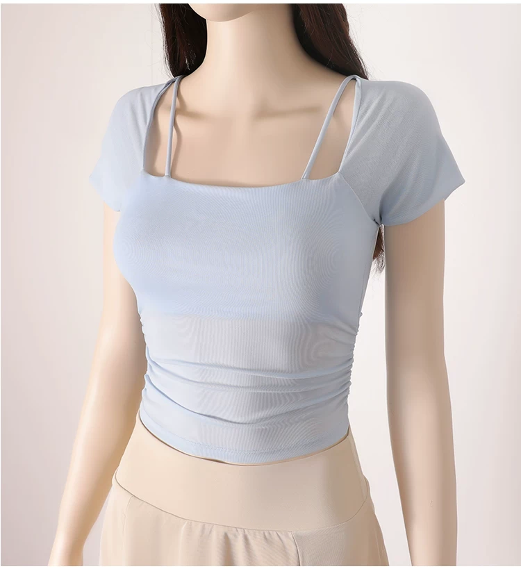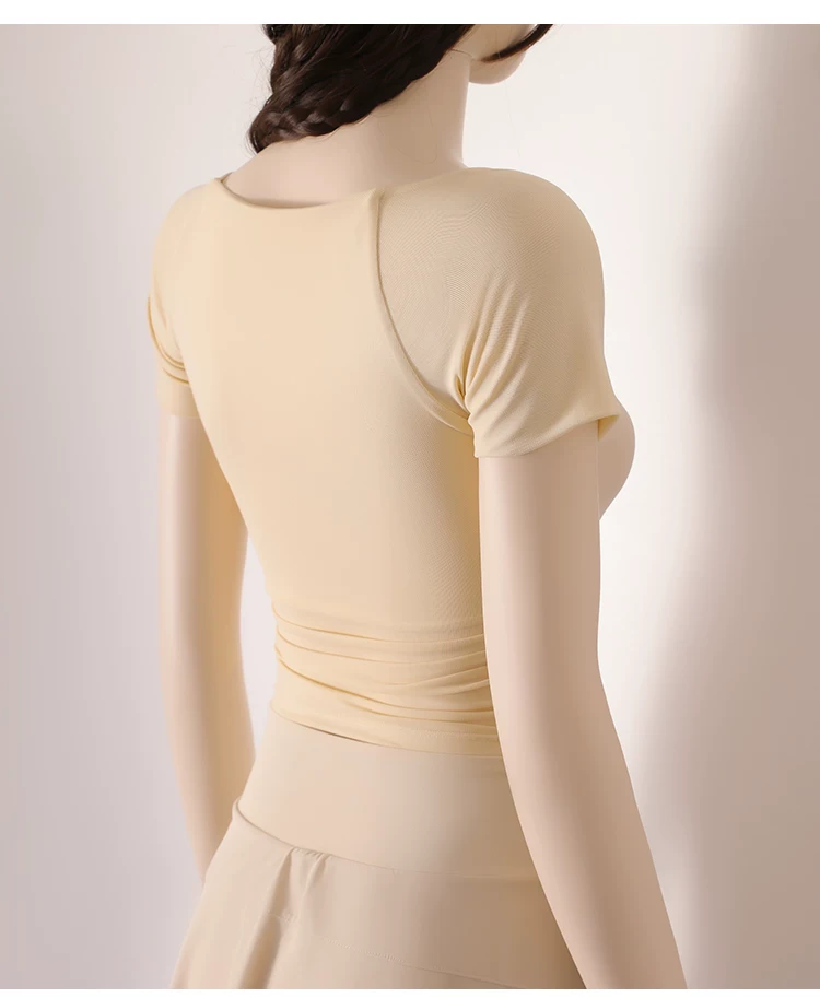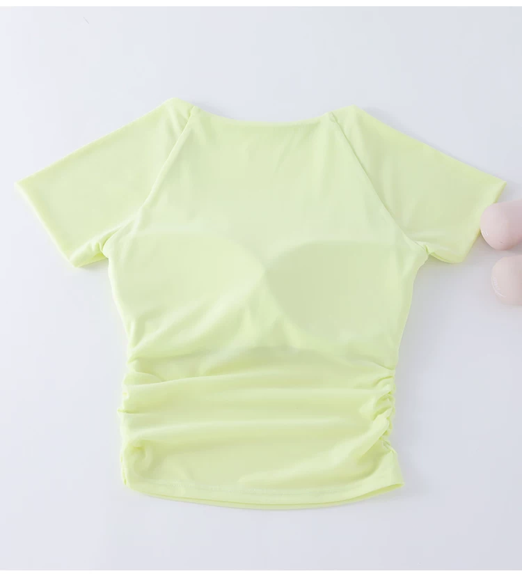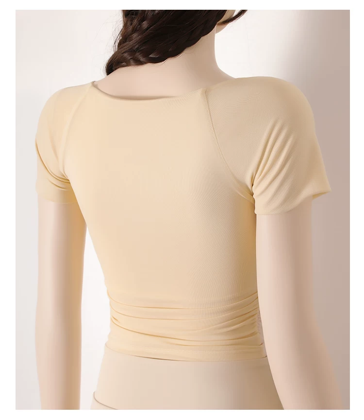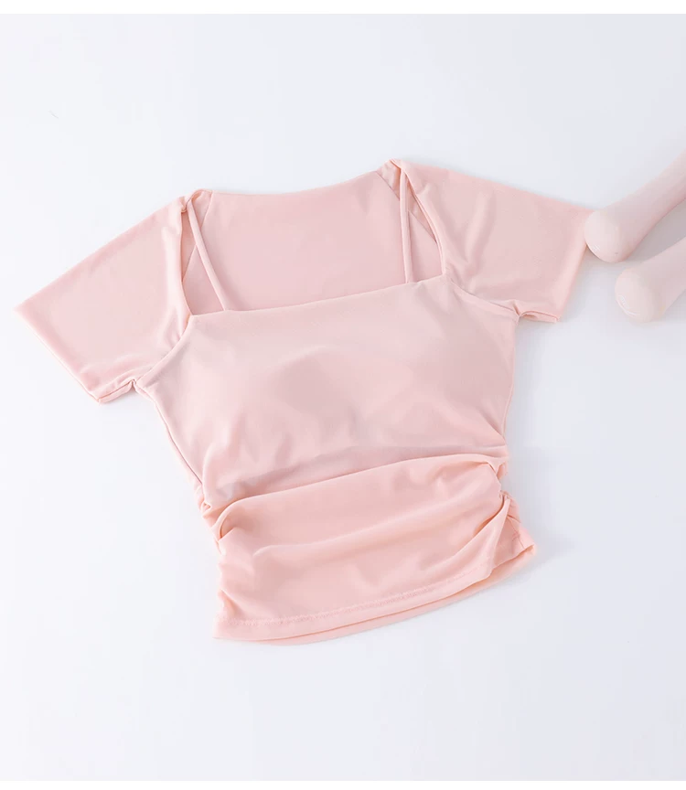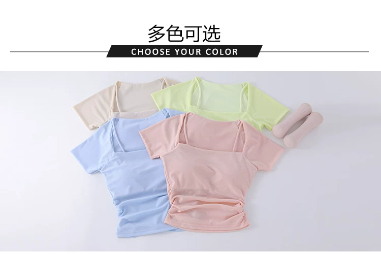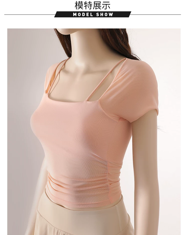 - Quần áo tập Pilates thanh lịch cao cấp, quần áo tập yoga cho nữ, mùa hè có đệm ngực, áo thun ngắn tay chống sốc, áo thể thao