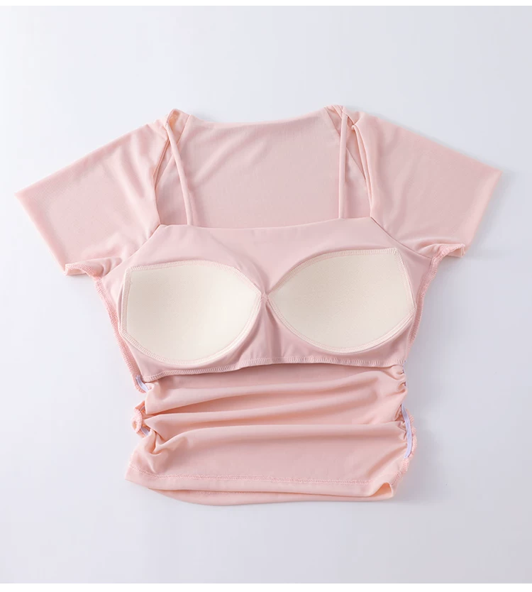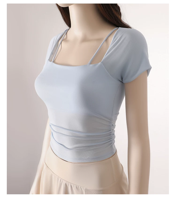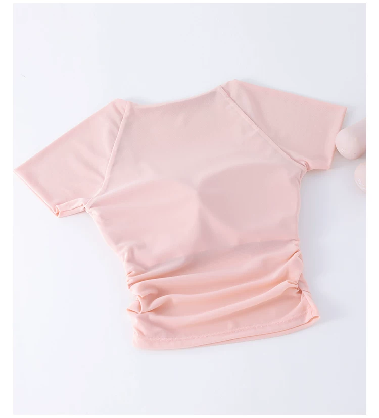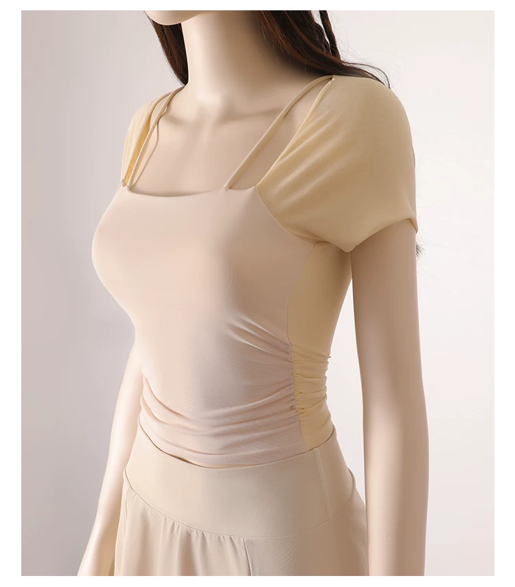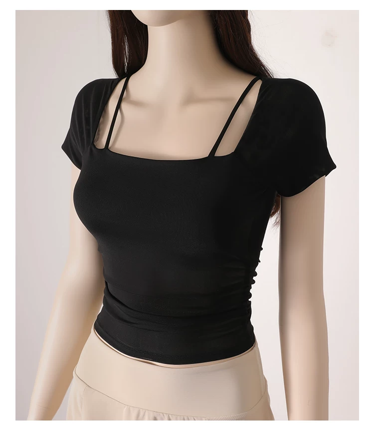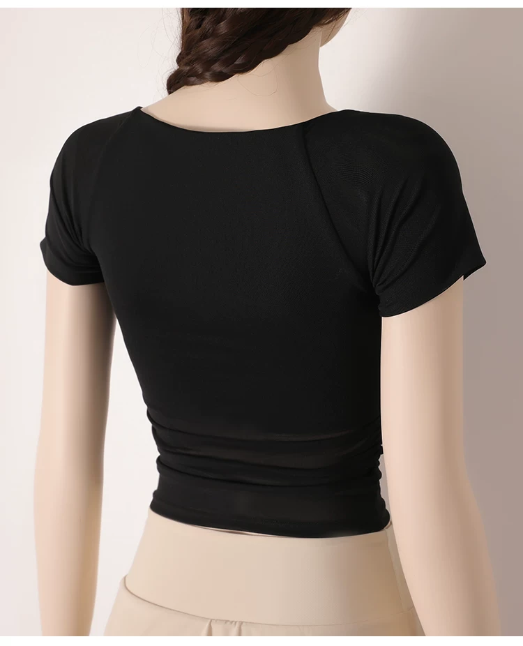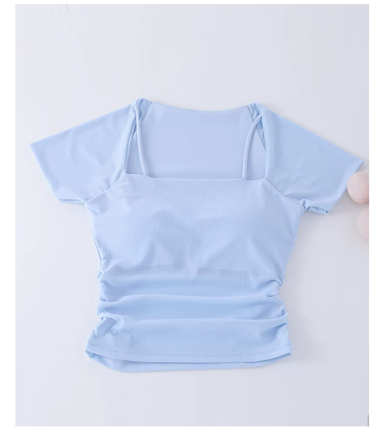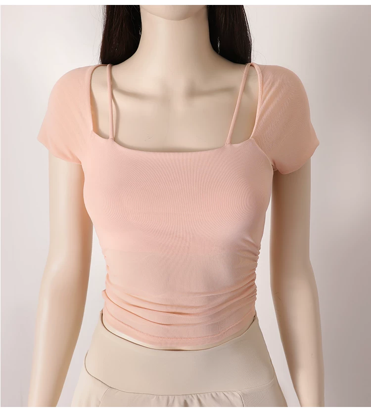 - Quần áo tập Pilates thanh lịch cao cấp, quần áo tập yoga cho nữ, mùa hè có đệm ngực, áo thun ngắn tay chống sốc, áo thể thao
