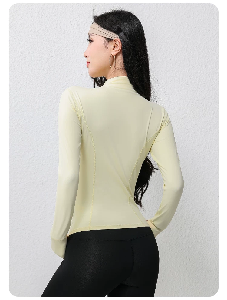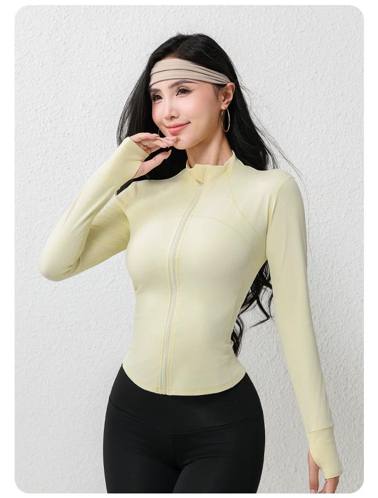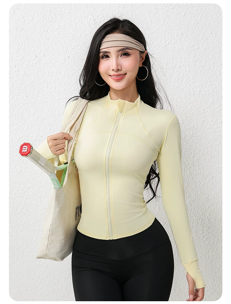 Quần áo tập yoga cao cấp dành cho nữ, áo dài tay ôm sát, áo khoác thể thao chạy bộ tập Pilates ôm sát cổ đứng dành cho mùa thu đông.
