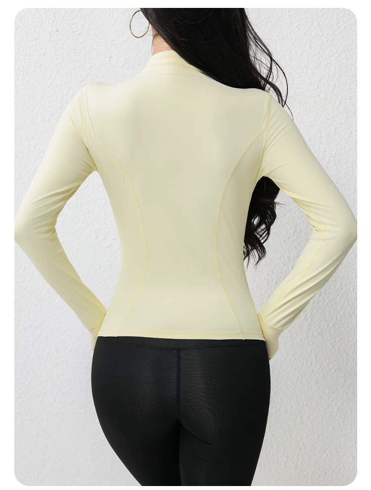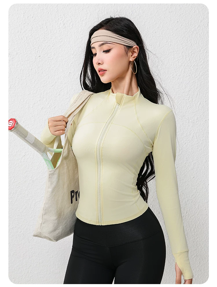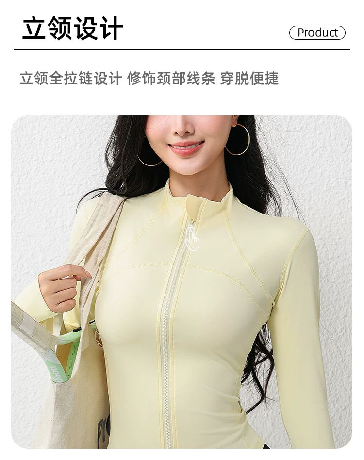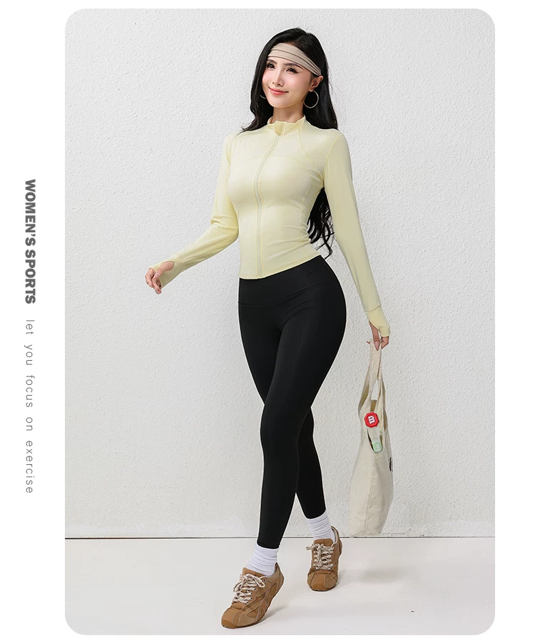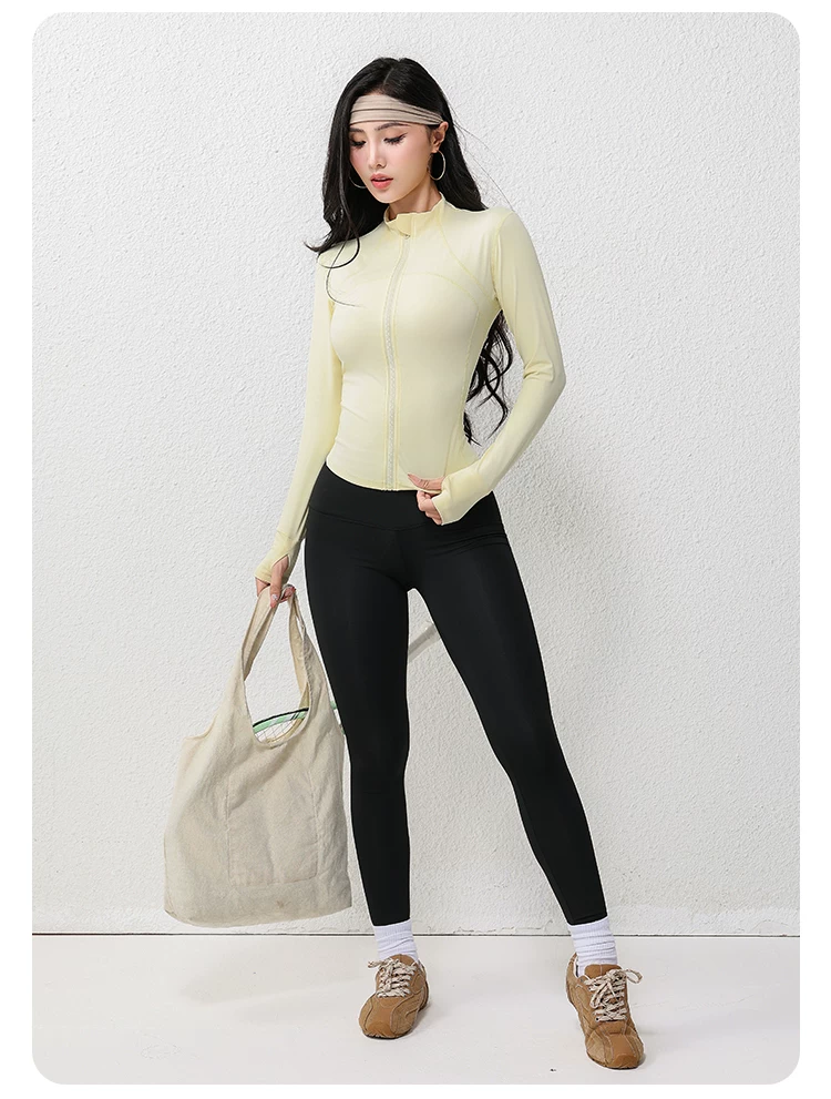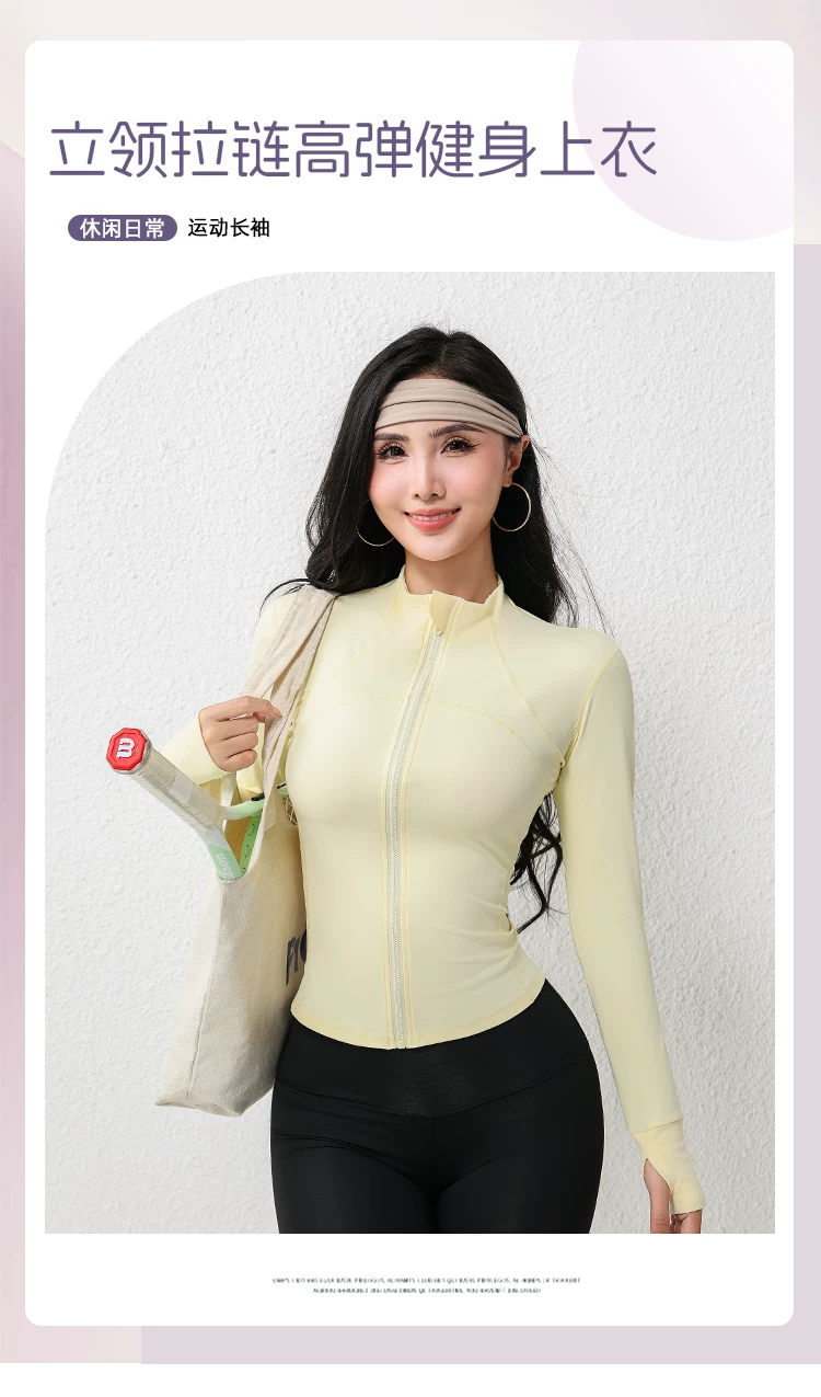 - Quần áo tập yoga cao cấp dành cho nữ, áo dài tay ôm sát, áo khoác thể thao chạy bộ tập Pilates ôm sát cổ đứng dành cho mùa thu đông.