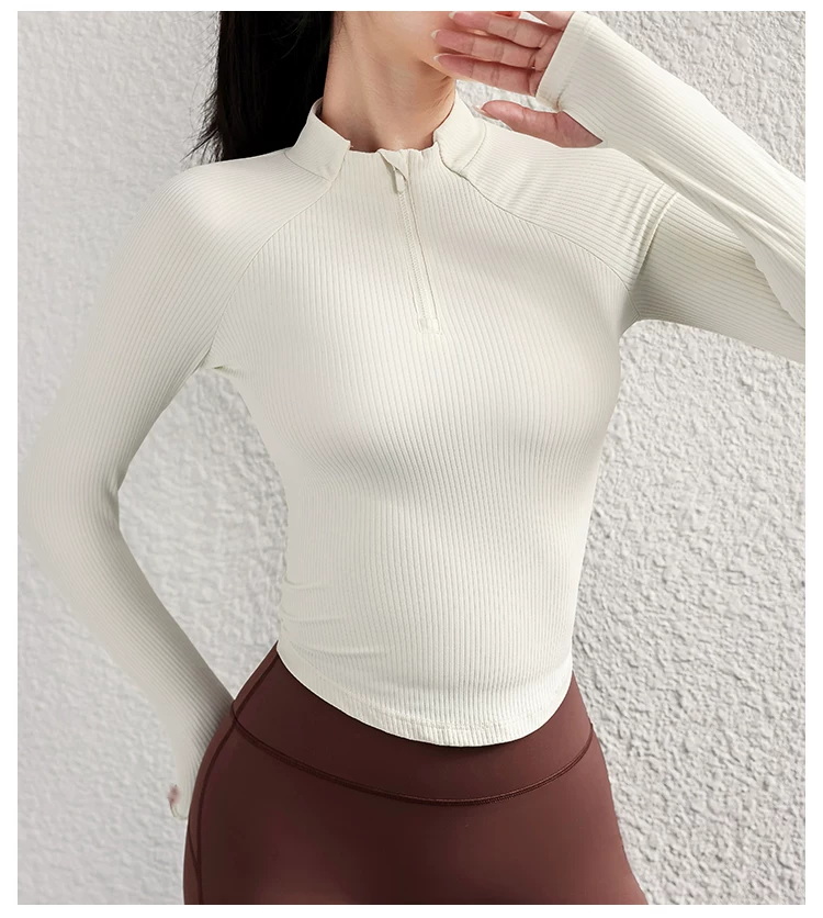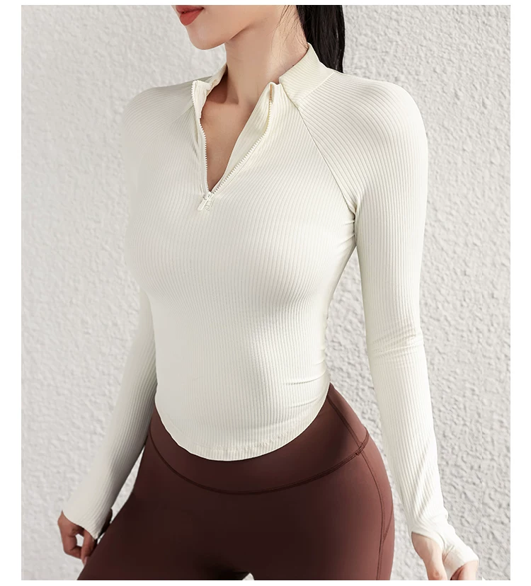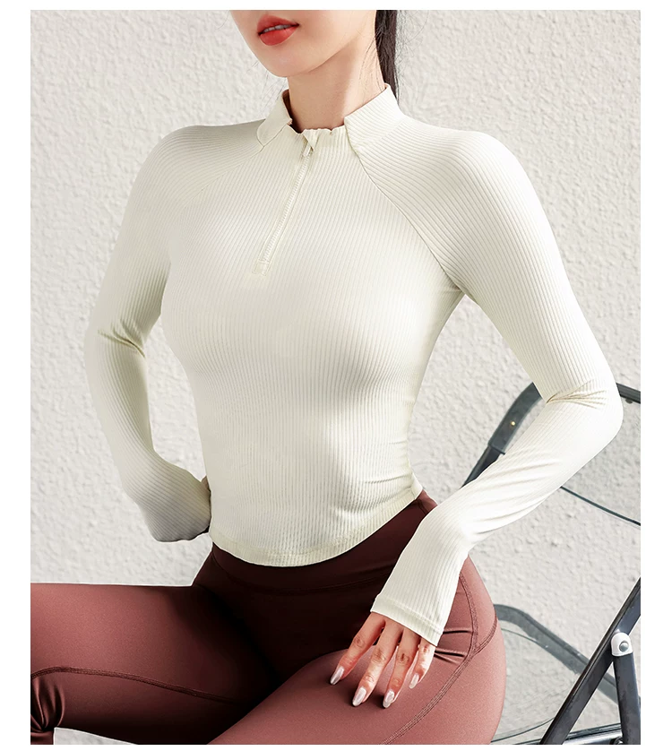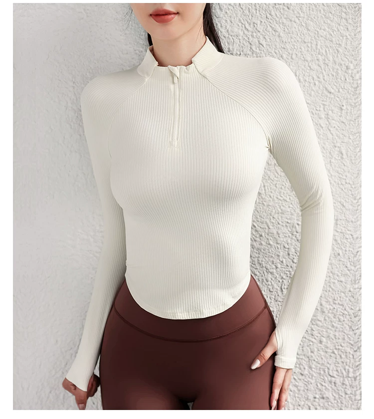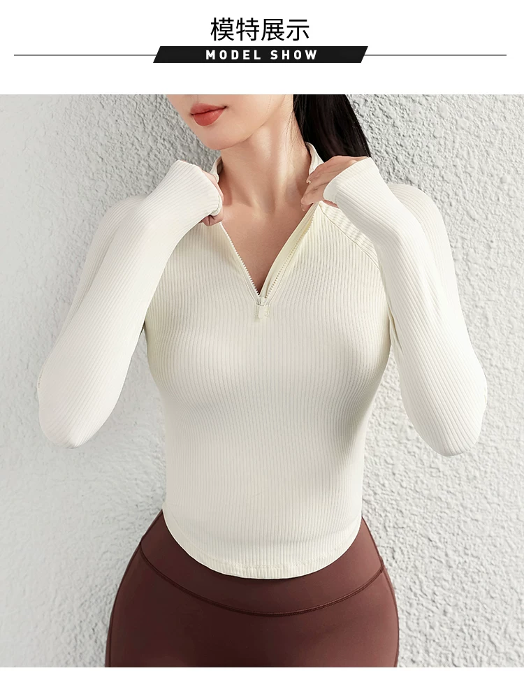 Quần áo tập yoga cho nữ, áo thể thao cổ đứng mùa thu đông, áo khoác dài tay ôm sát nửa khóa kéo, quần áo tập thể dục chạy bộ