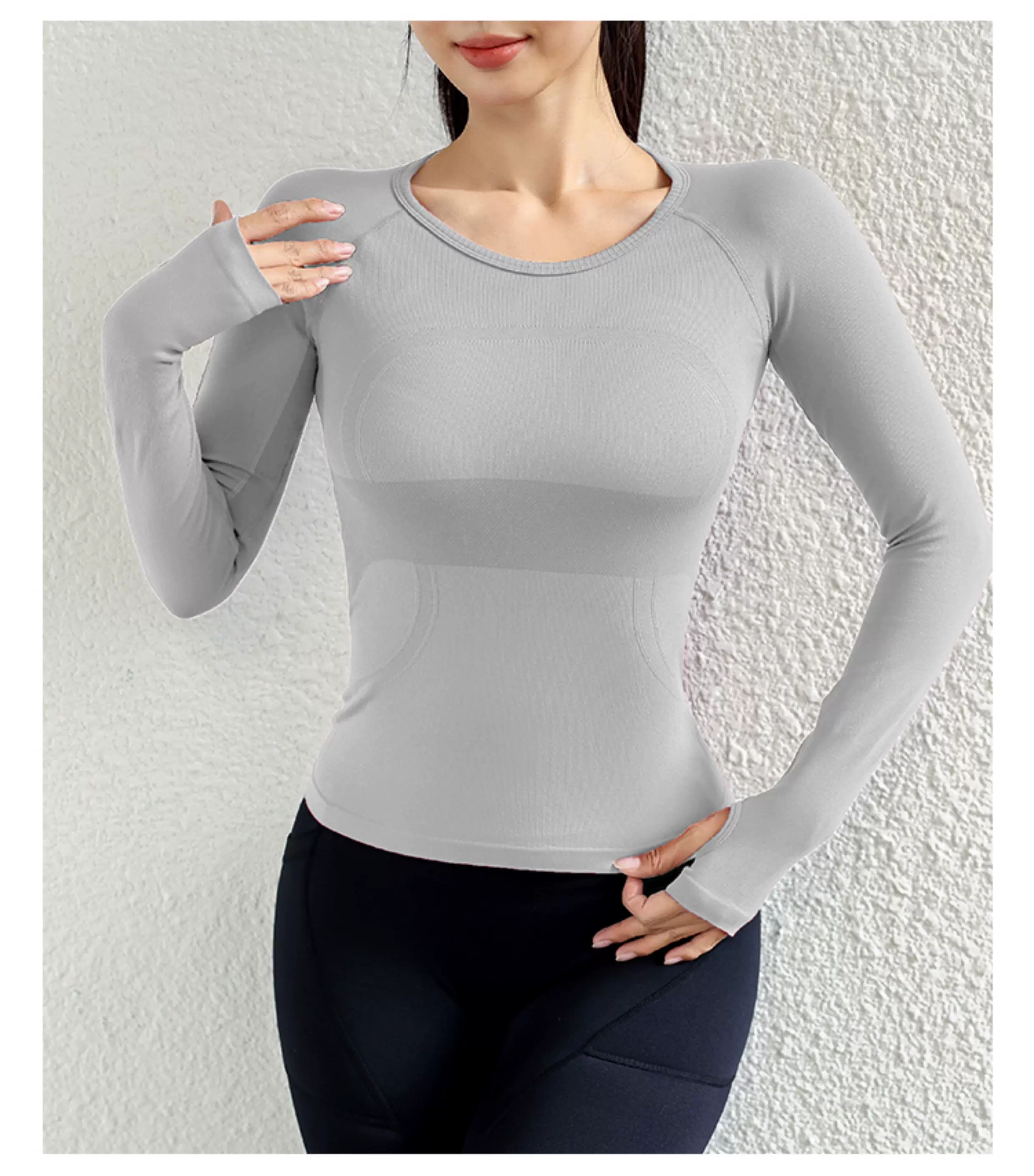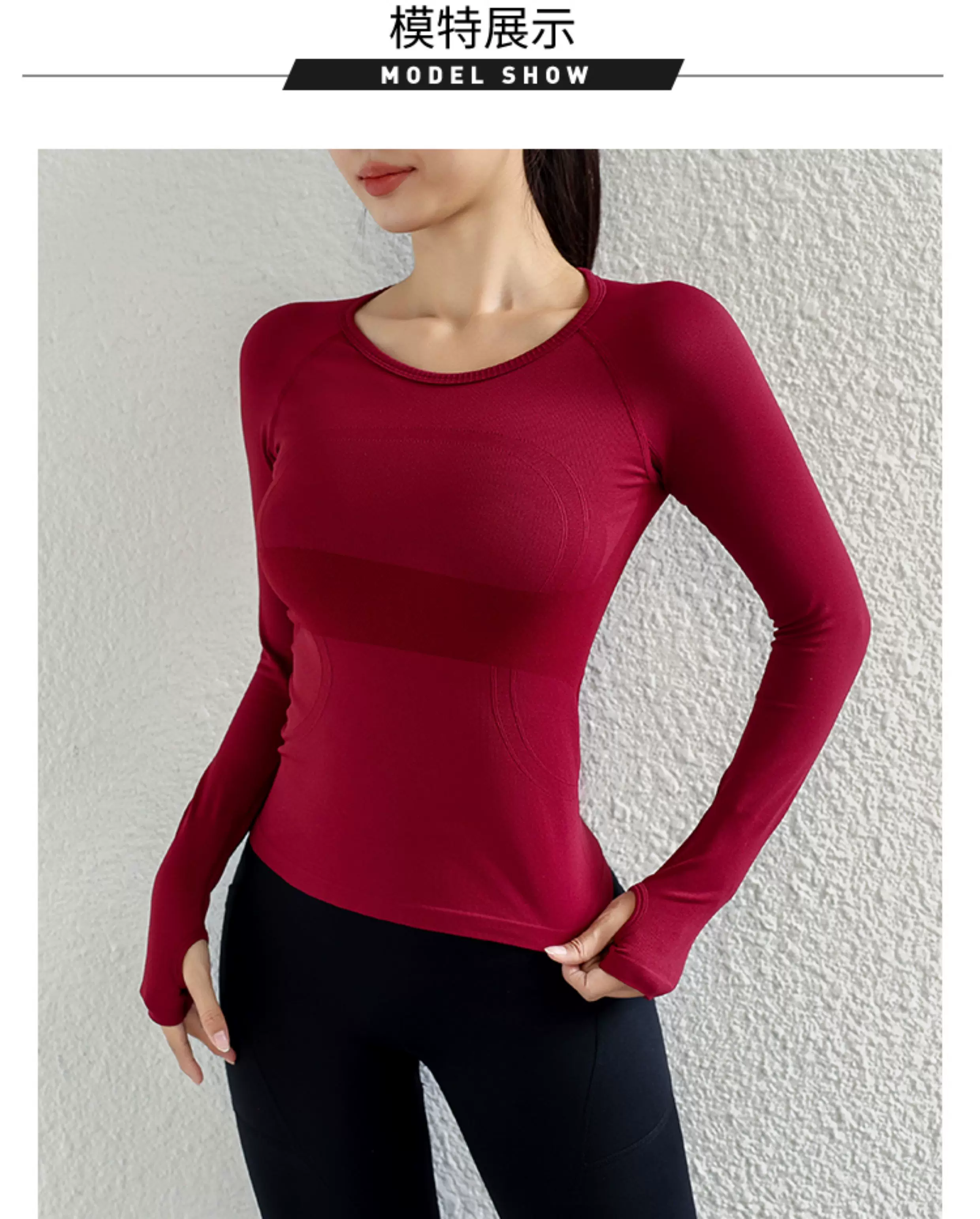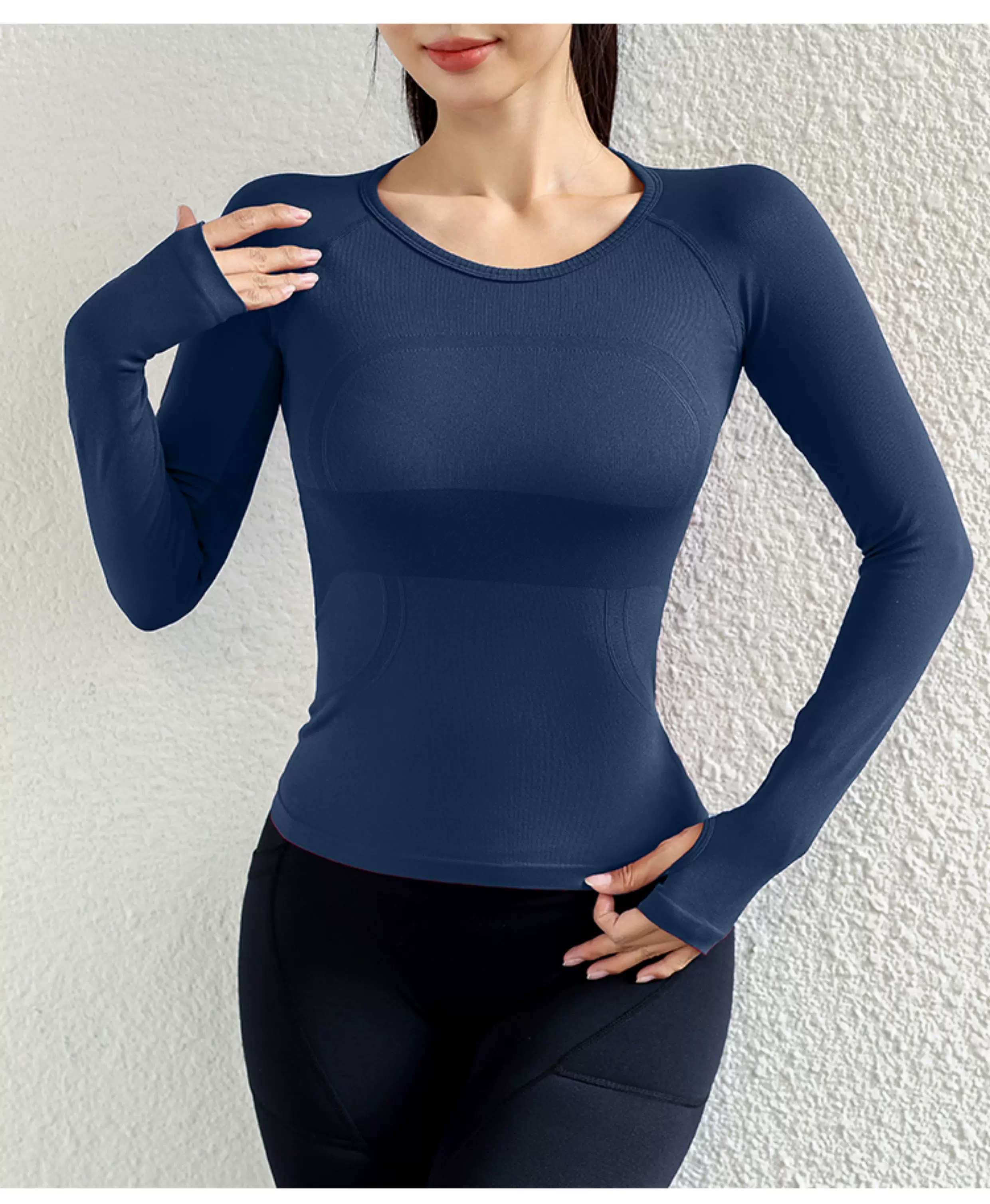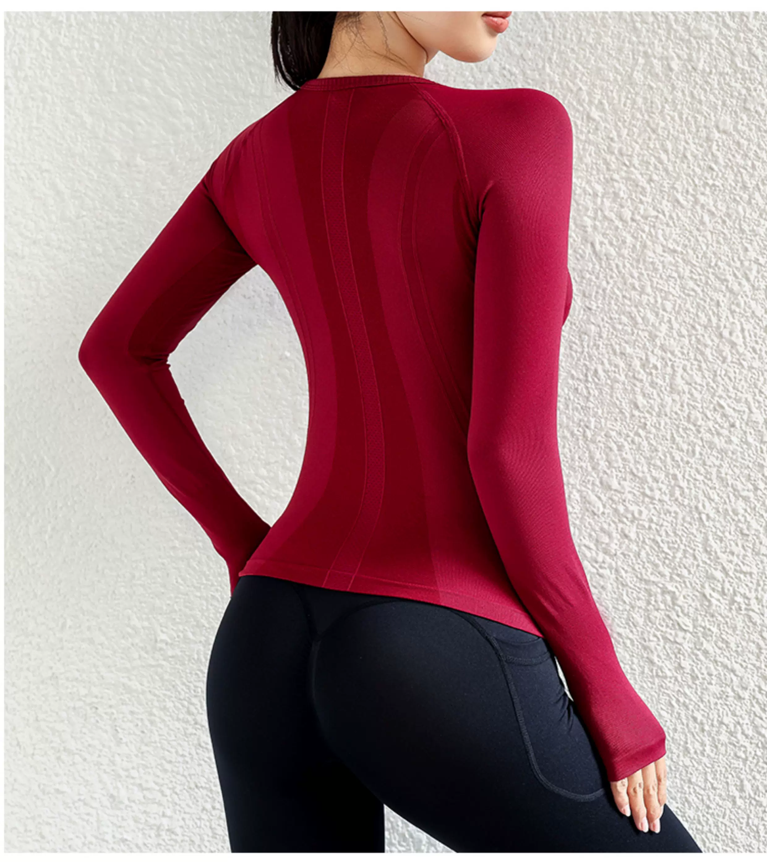 - Quần áo tập yoga cho nữ, áo thể thao dài tay, liền thân, không đường may, ôm sát, giúp thon gọn, chạy bộ, co giãn cao, nhanh khô.
