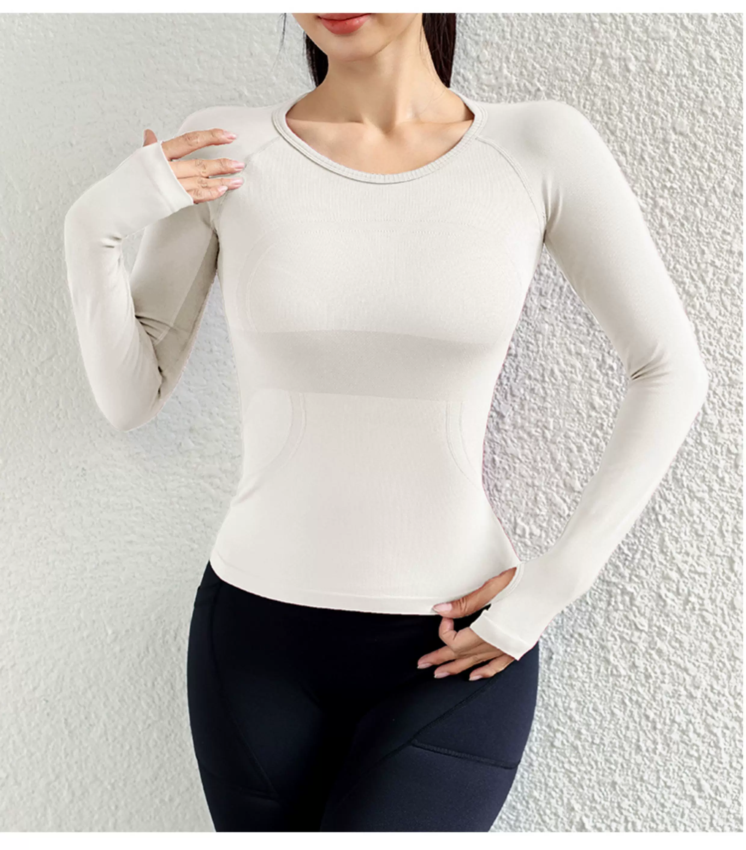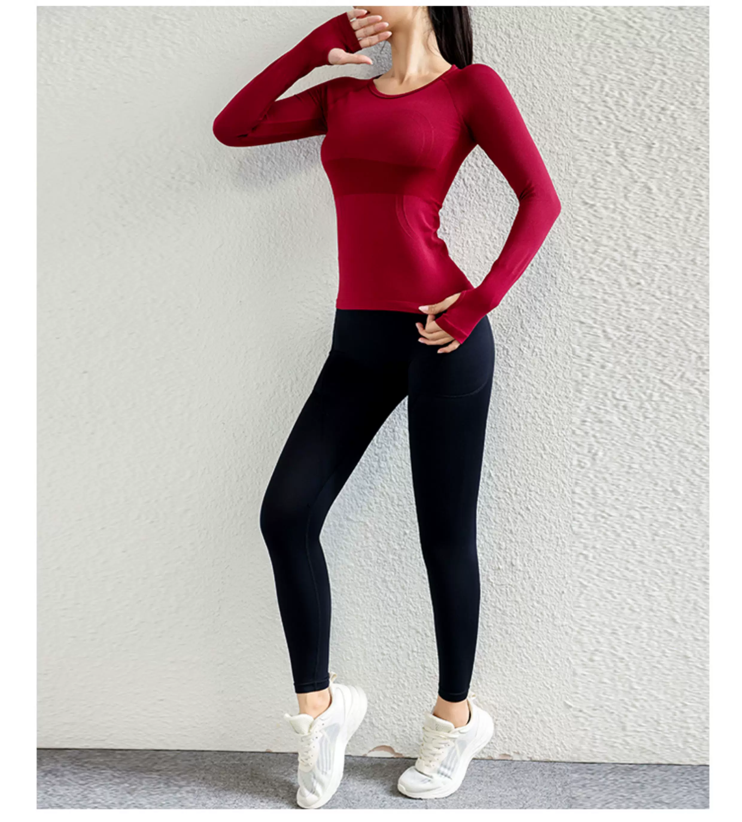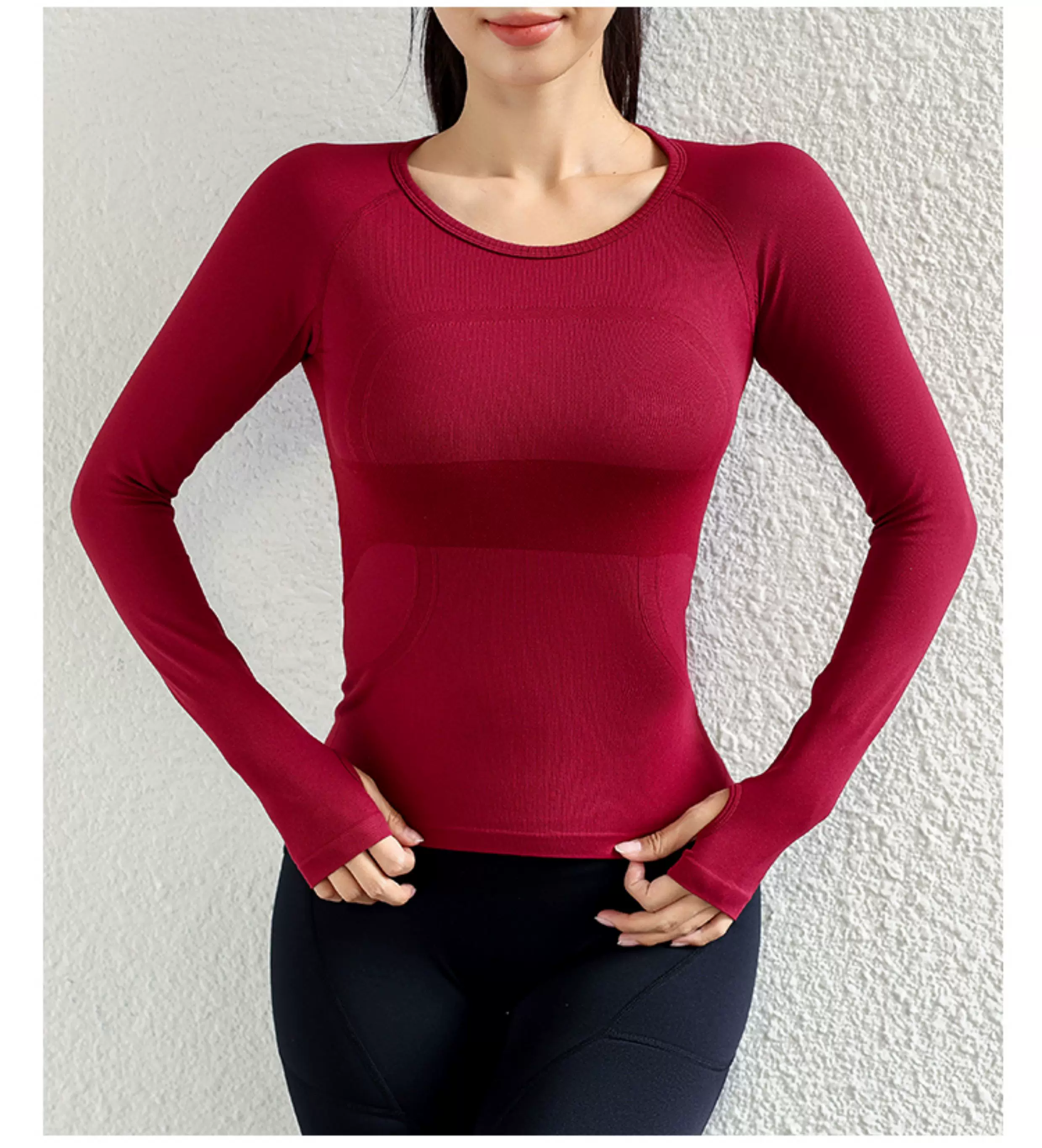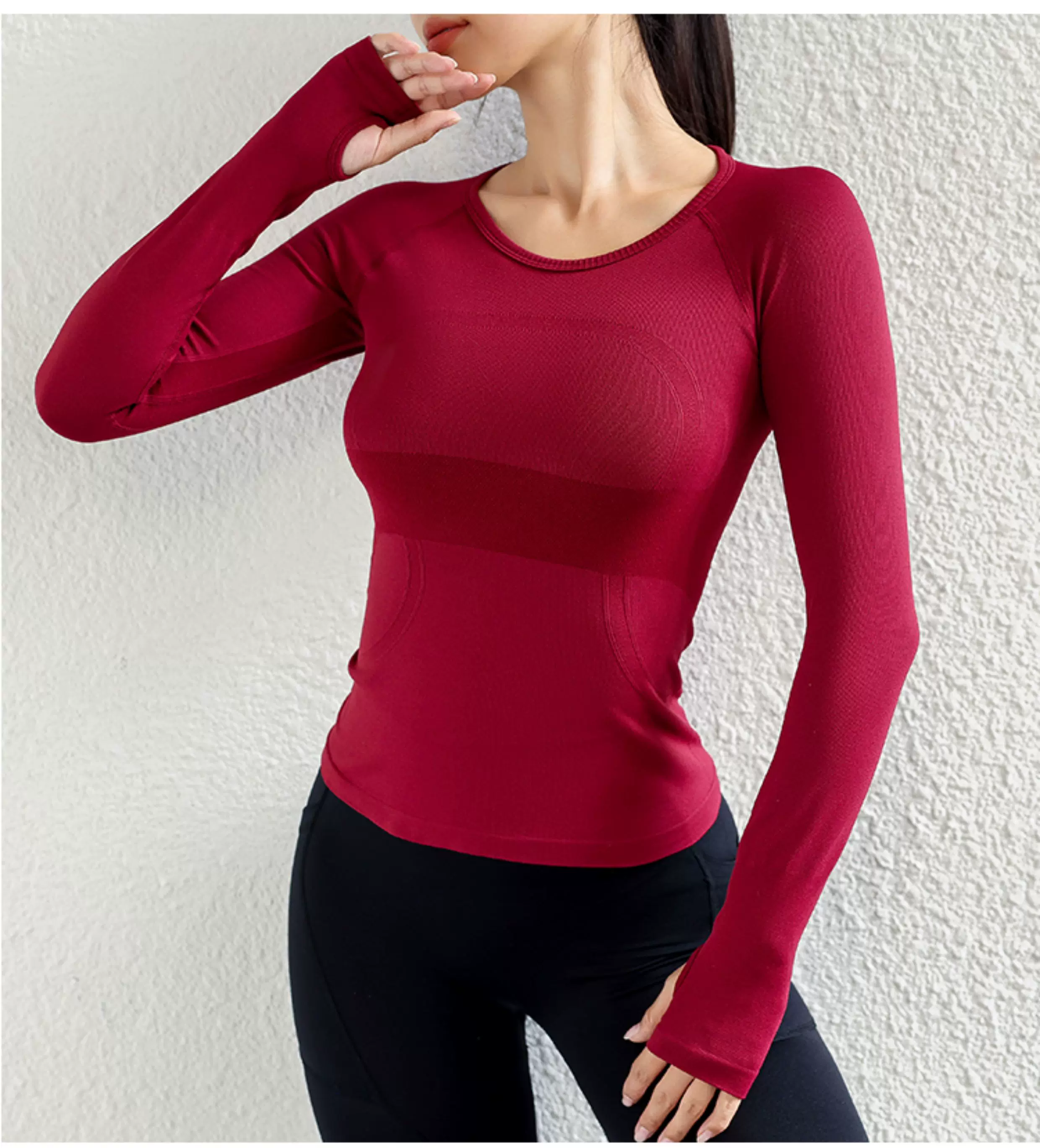 - Quần áo tập yoga cho nữ, áo thể thao dài tay, liền thân, không đường may, ôm sát, giúp thon gọn, chạy bộ, co giãn cao, nhanh khô.