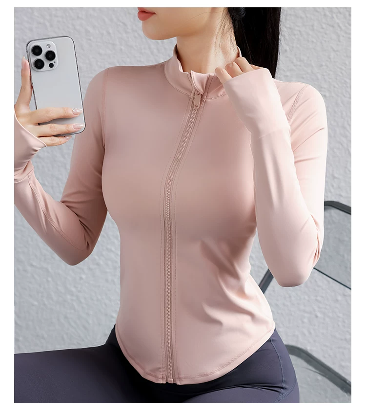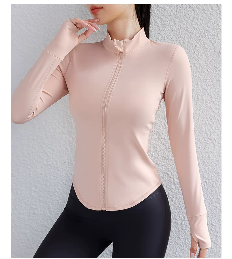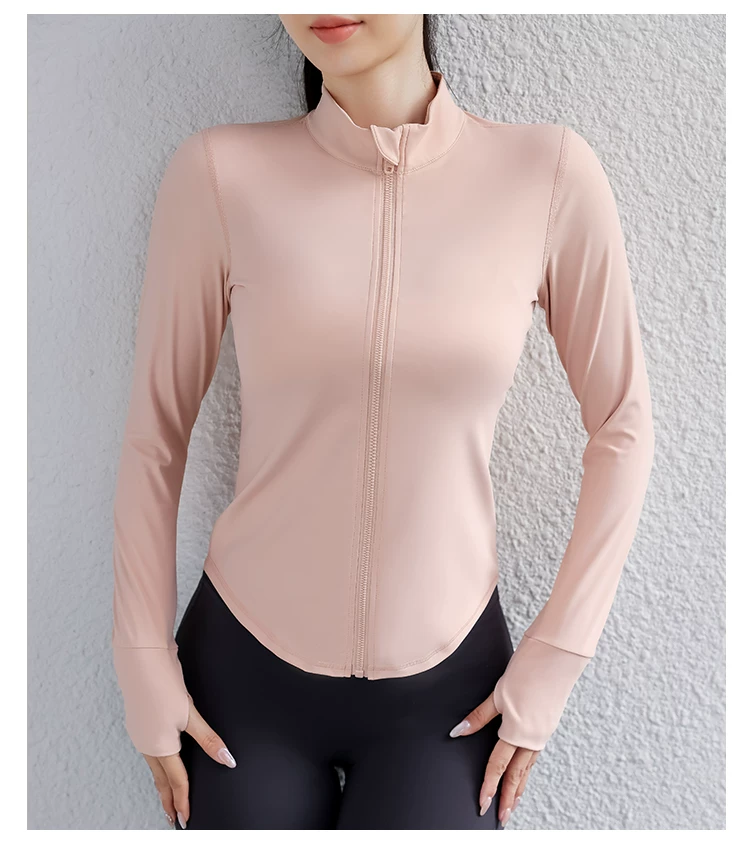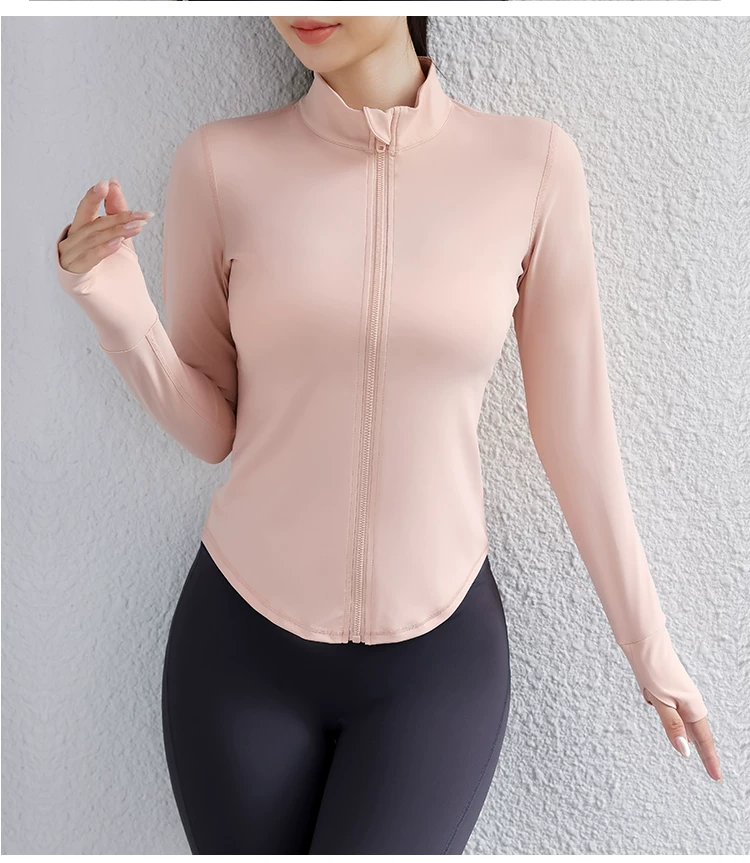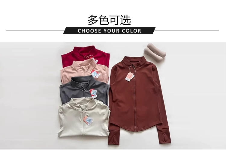 Quần áo tập yoga cho nữ, áo thể thao mùa xuân, mùa thu và mùa đông, áo khoác ôm sát, chống nắng, có khóa kéo, áo khoác dài tay thông thường, áo khoác ngoài, quần áo chạy bộ và tập thể dục