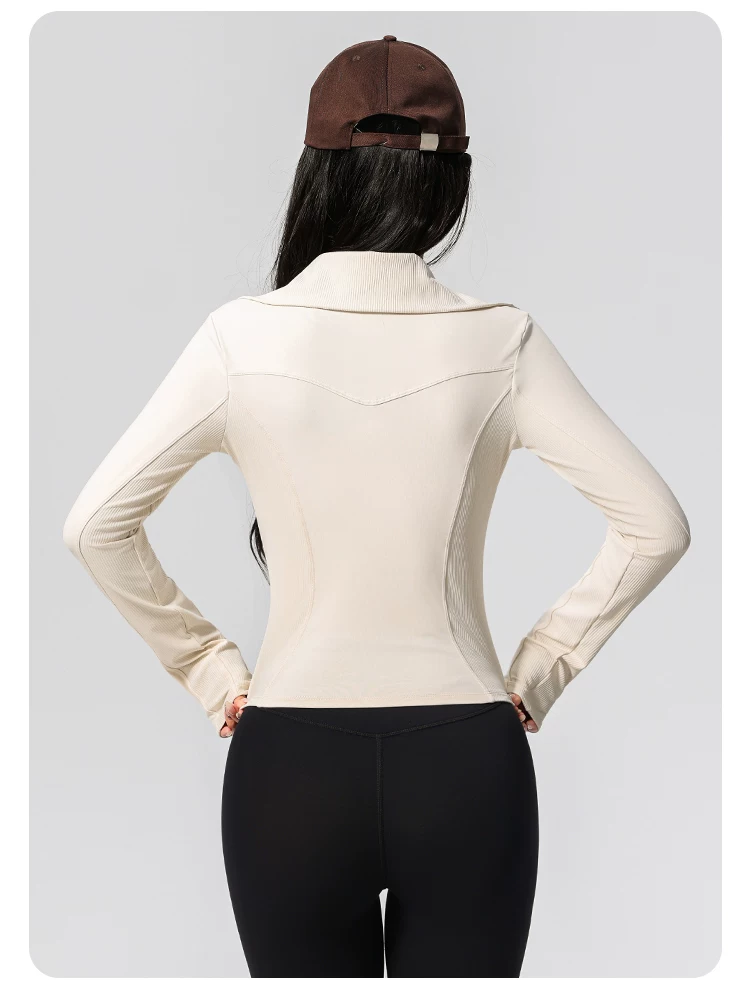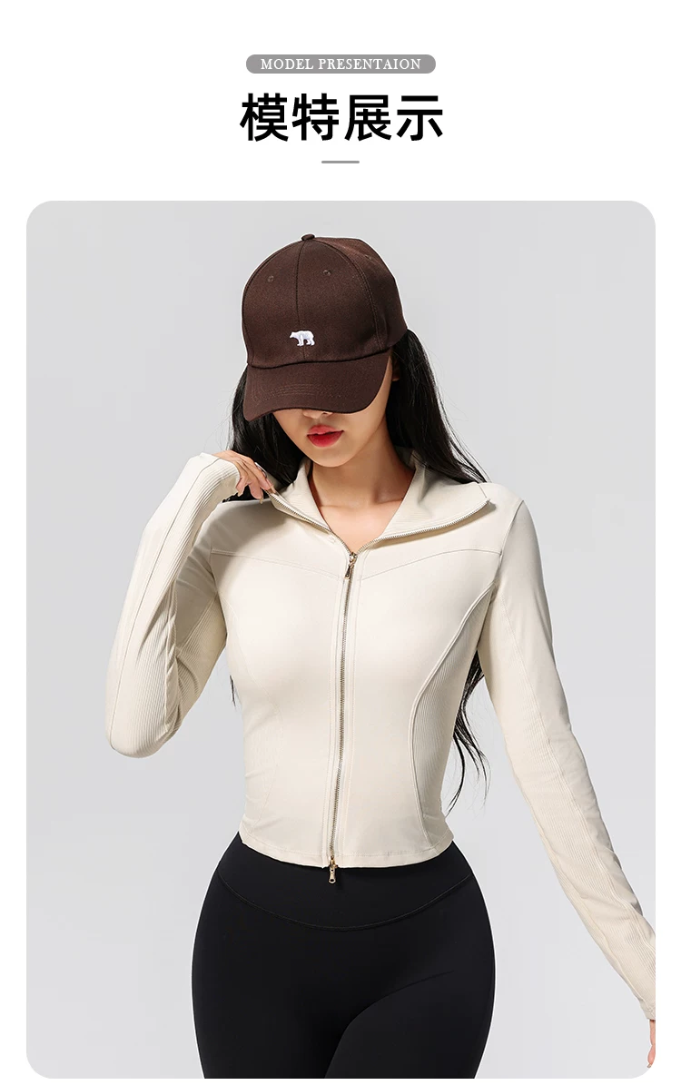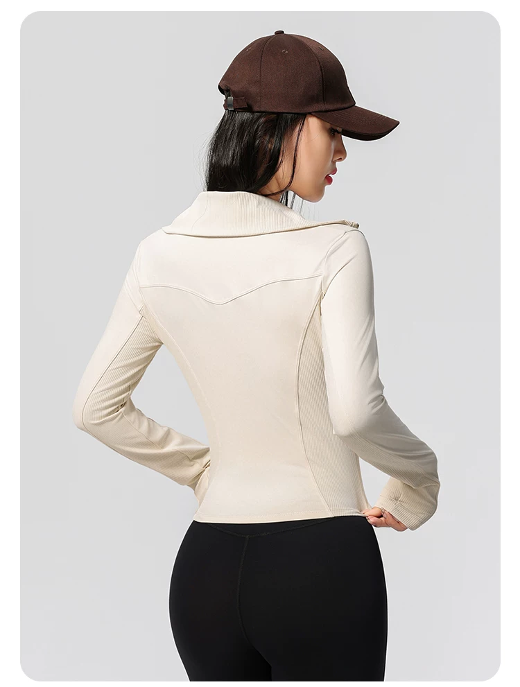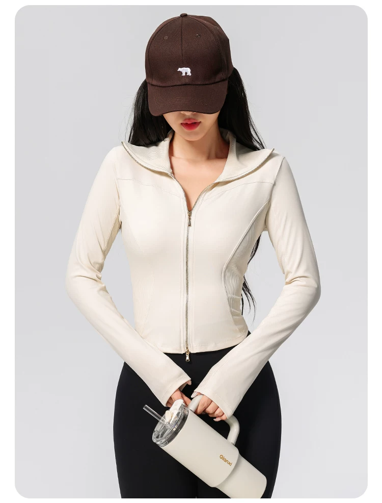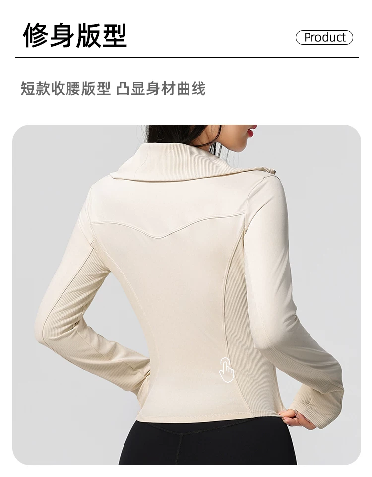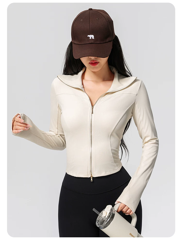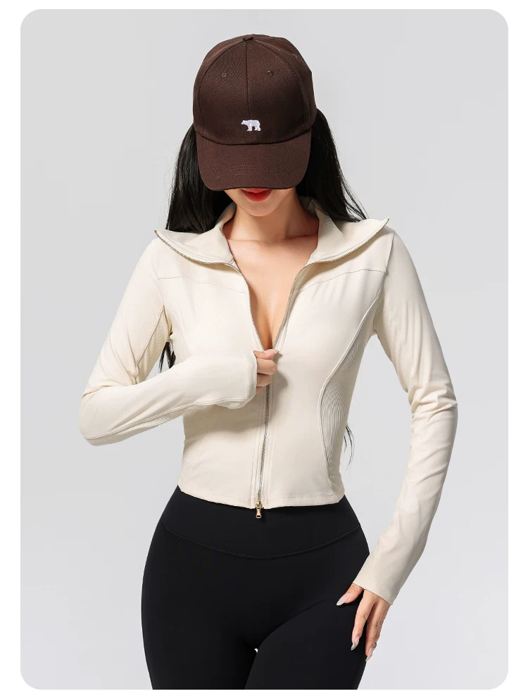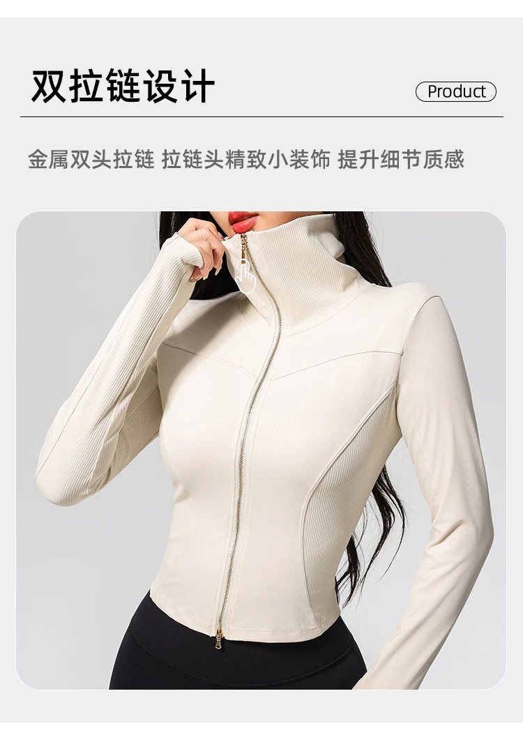 Quần áo tập yoga cho nữ, kiểu dáng mới, cao cấp, khóa kéo đôi, cổ cao, áo thể thao chạy bộ ôm sát, áo khoác tập thể dục Pilates