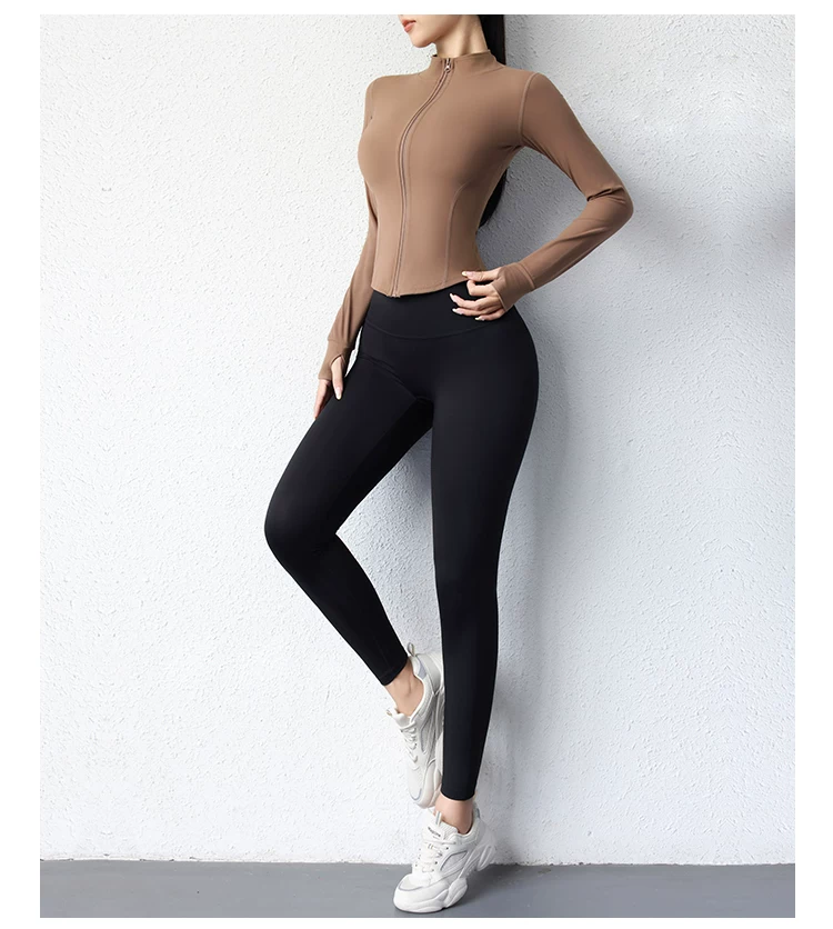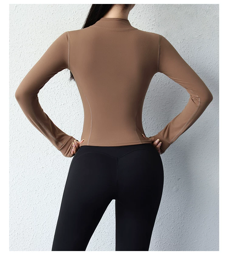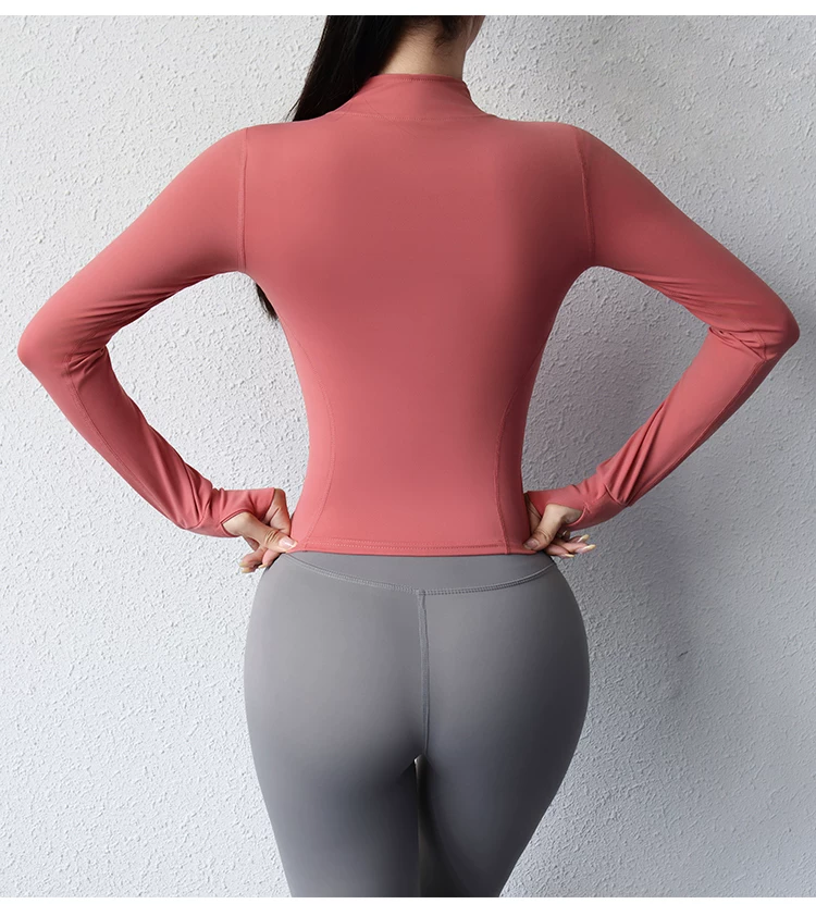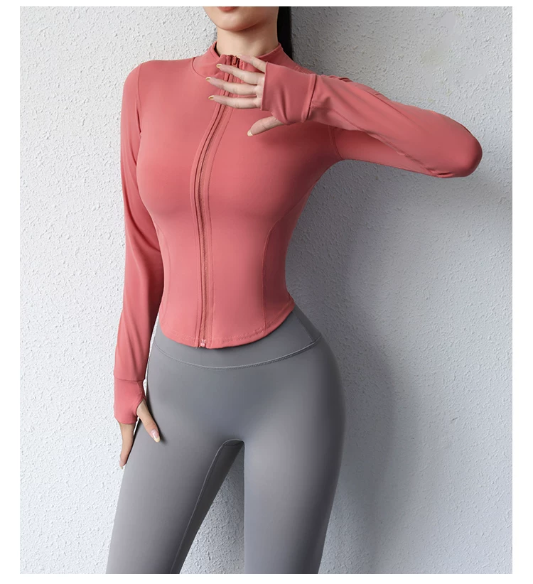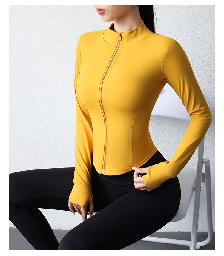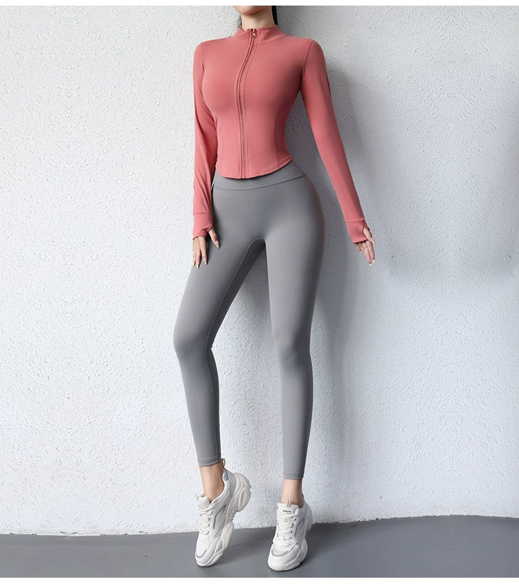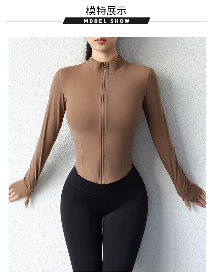 Quần áo tập yoga Jiumai Yipin dành cho nữ, Áo khoác tập luyện vừa vặn bằng vải chải kỹ mới mùa xuân, Quần áo tập thể dục dài tay.