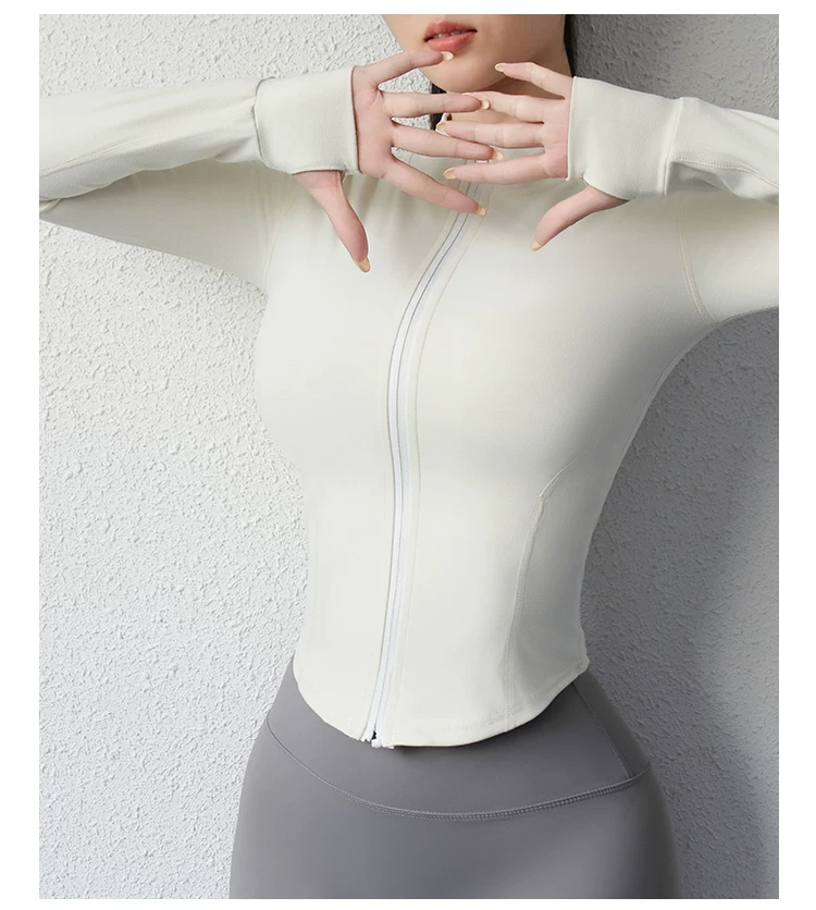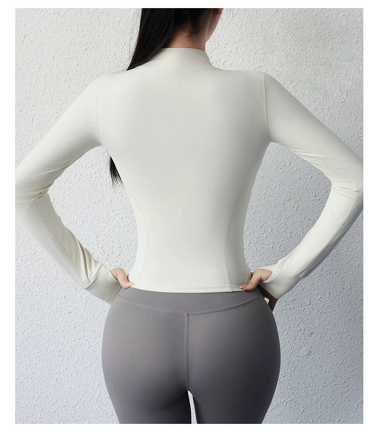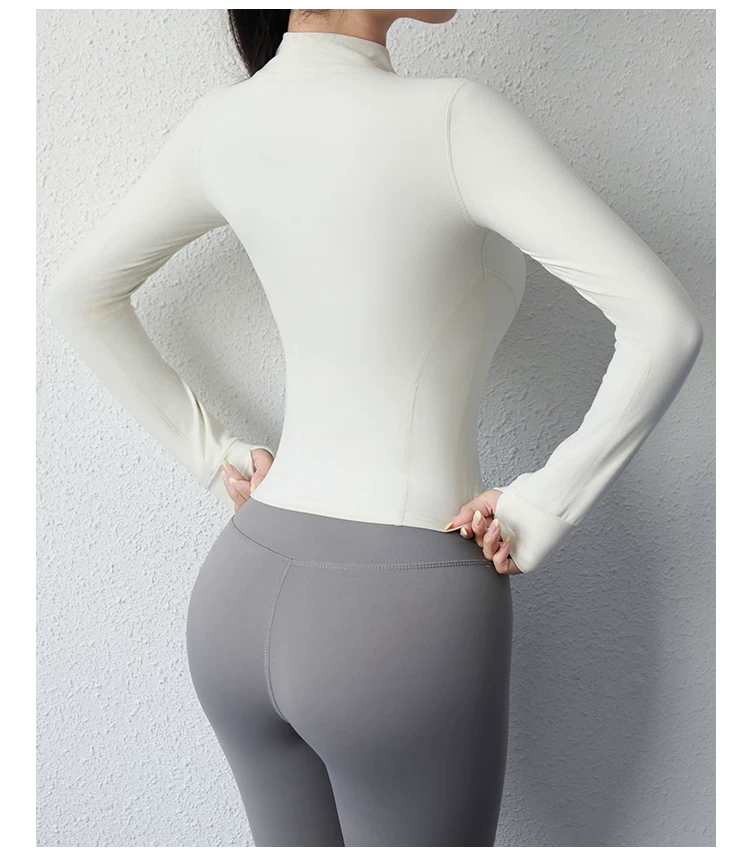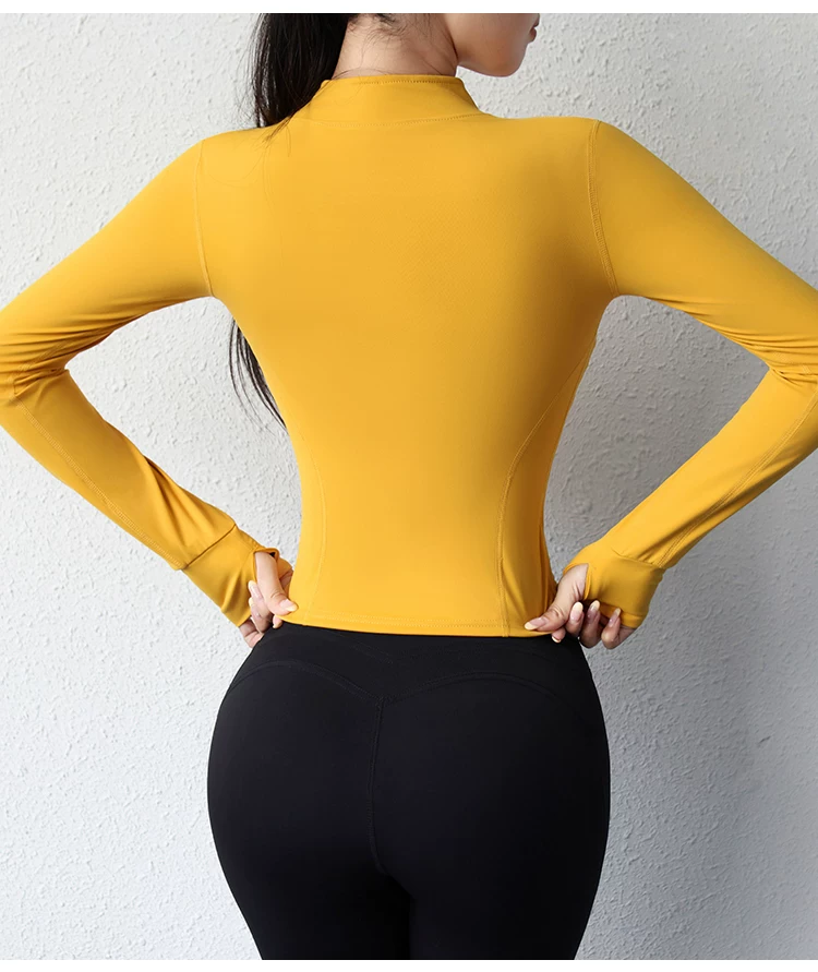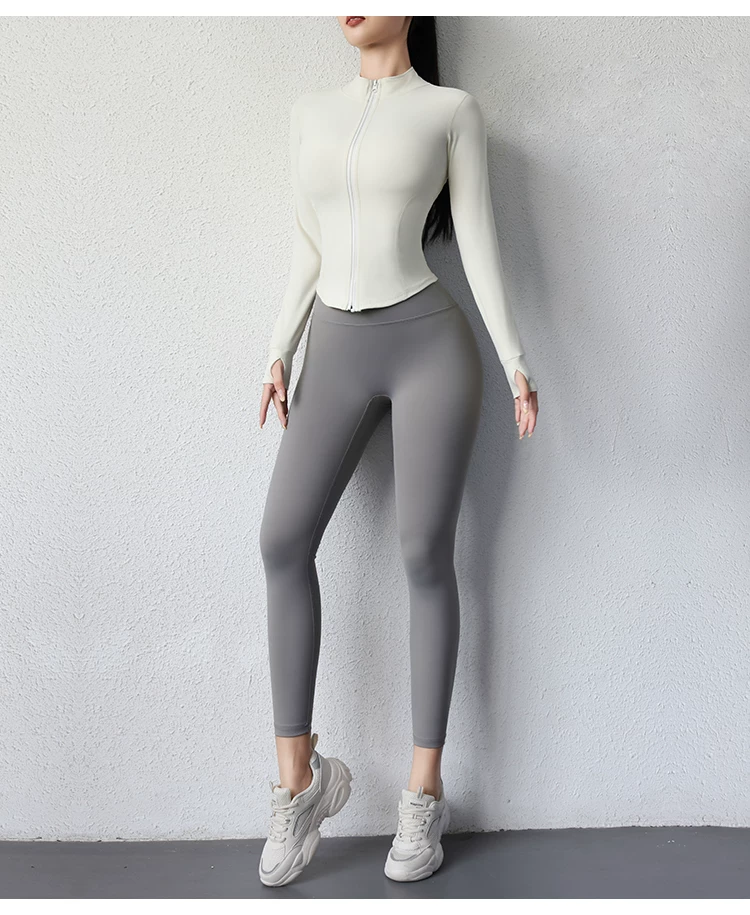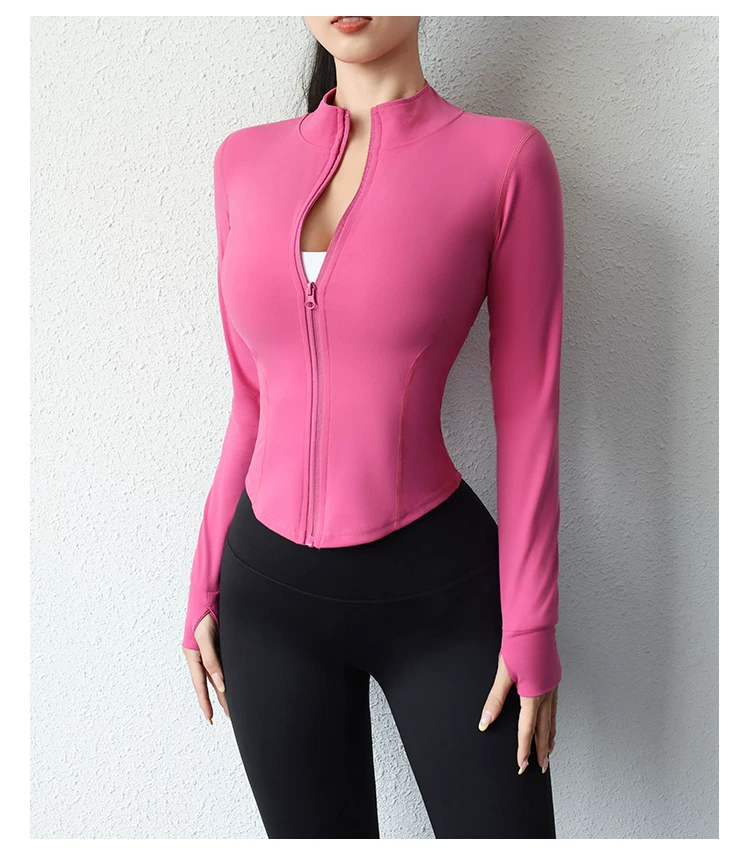 Quần áo tập yoga Jiumai Yipin dành cho nữ, Áo khoác tập luyện vừa vặn bằng vải chải kỹ mới mùa xuân, Quần áo tập thể dục dài tay.