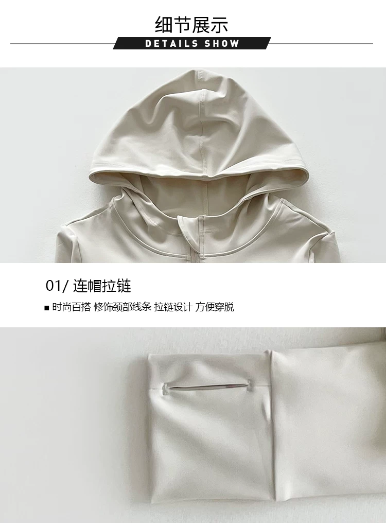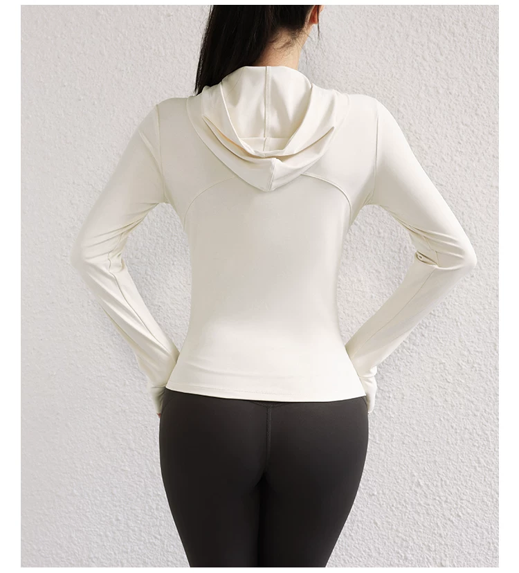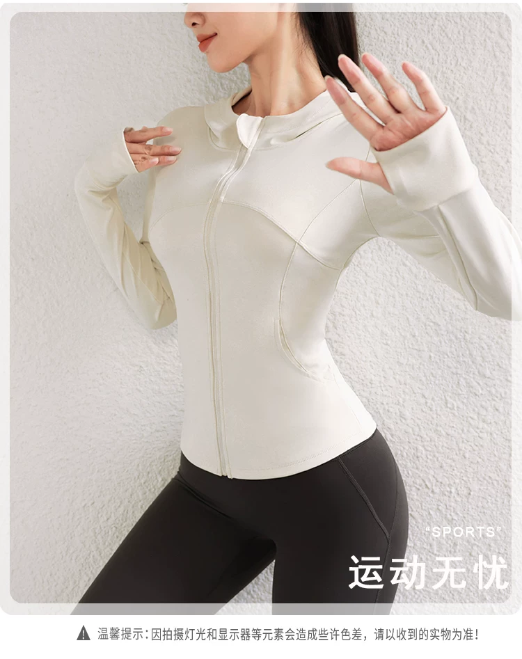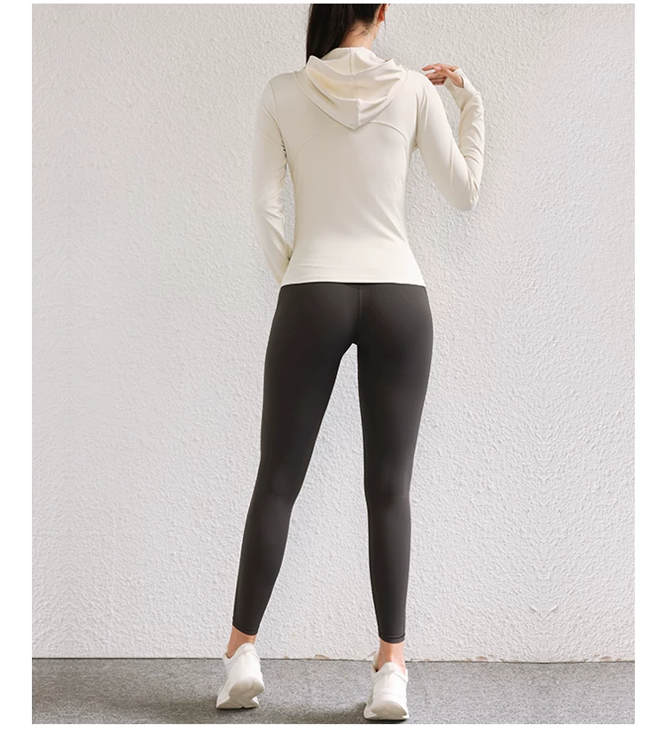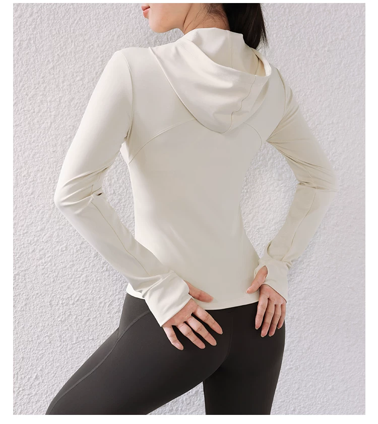 - Quần áo thể dục dài tay, quần áo đạp xe, áo khoác thể thao chống gió và chống nắng, áo tập yoga ngoài trời có mũ trùm đầu cho nữ, quần áo mùa thu đông nhanh khô