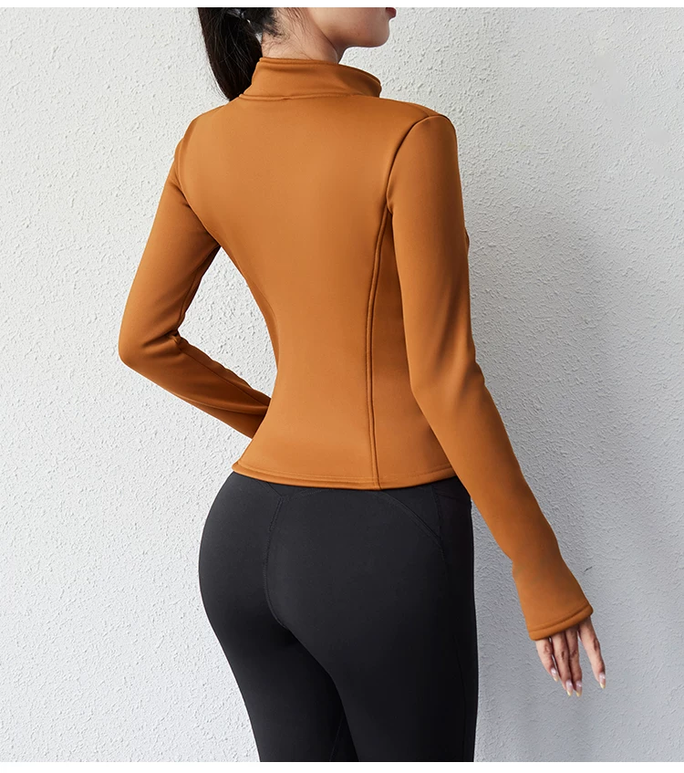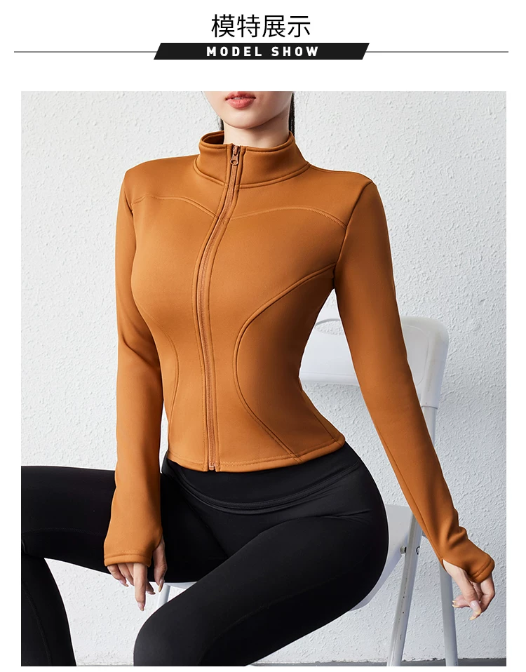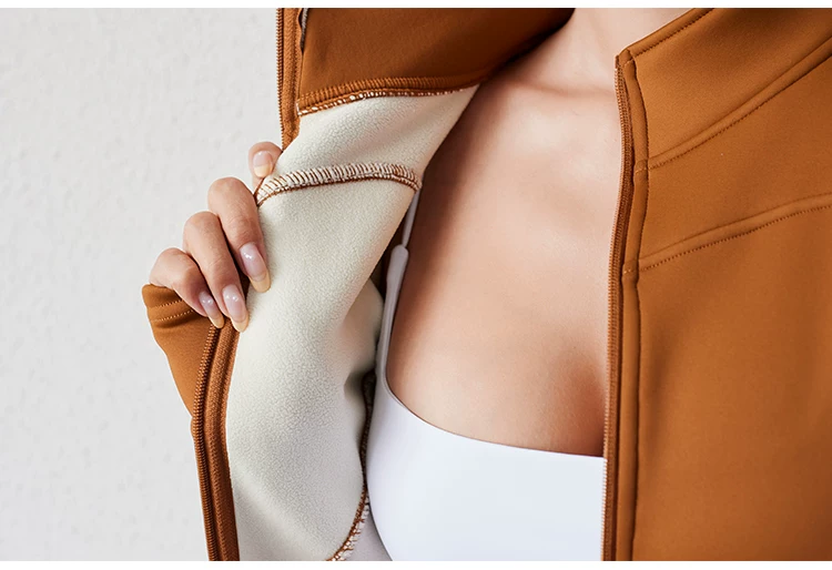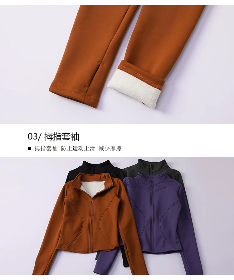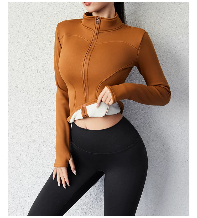 - Quần áo thể thao chuyên nghiệp dành cho nữ, áo khoác thể thao chạy bộ ngắn, lót lông cừu, dày dặn, áo cardigan có khóa kéo, áo cổ đứng, áo dài tay tập yoga.