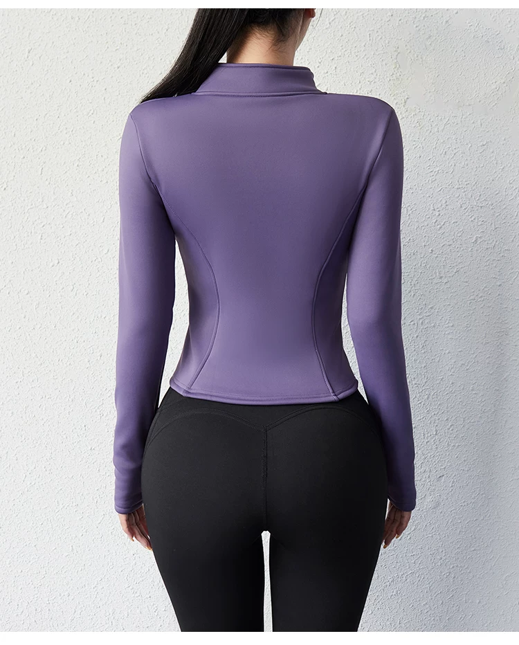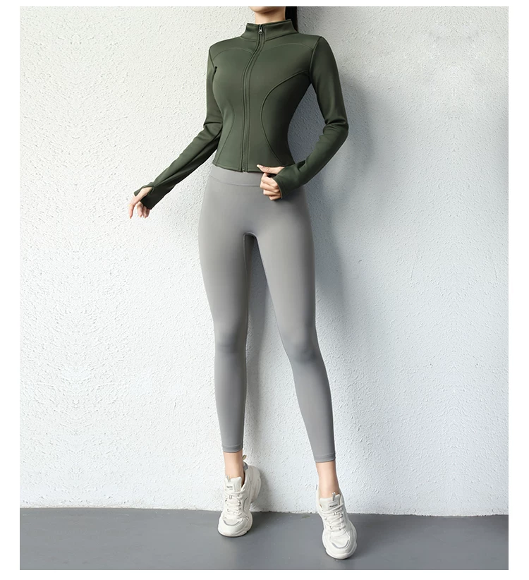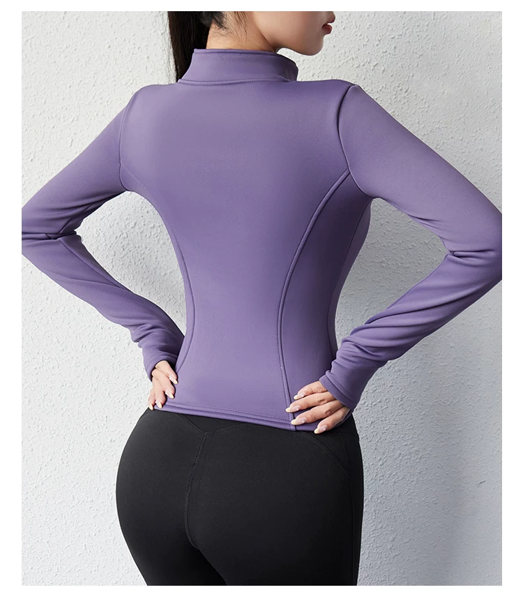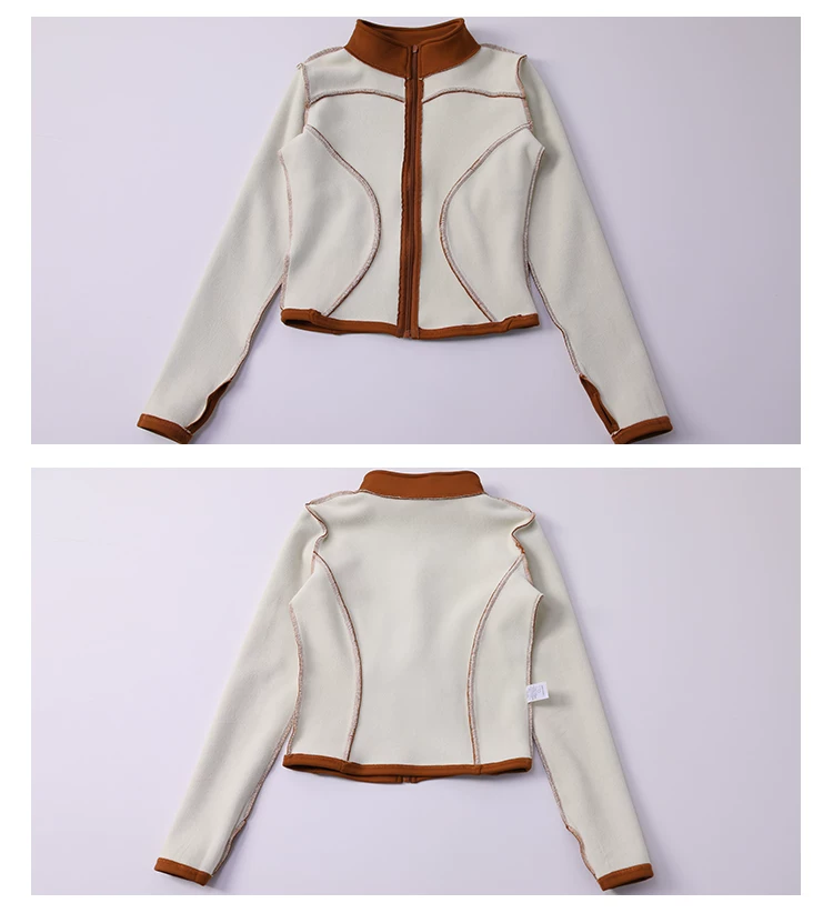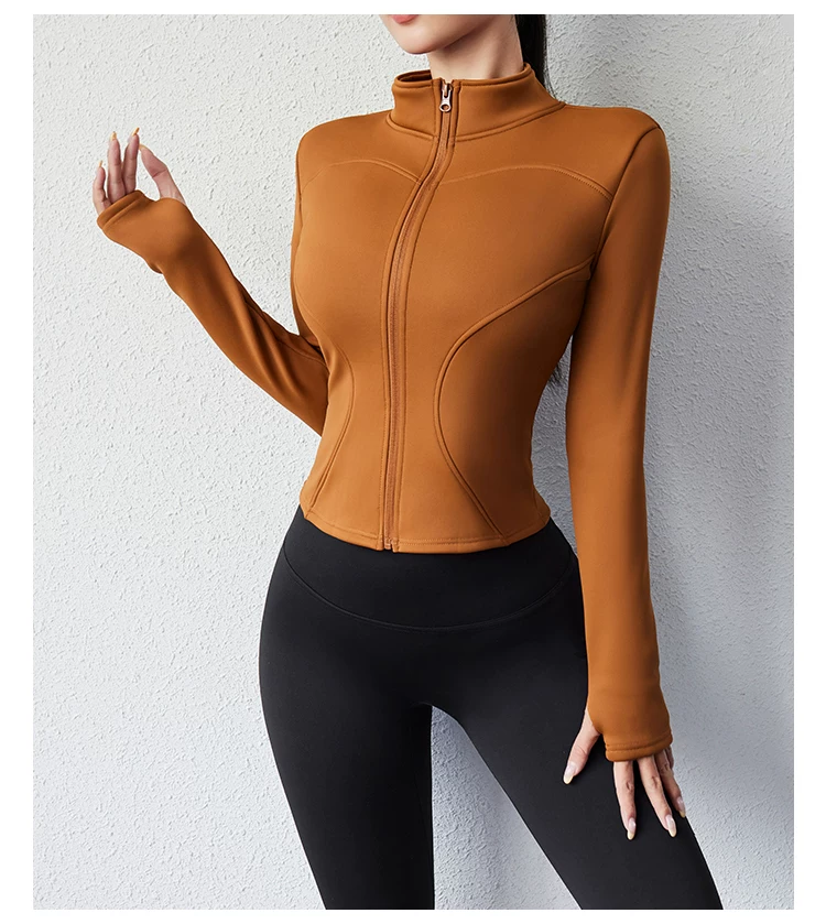 - Quần áo thể thao chuyên nghiệp dành cho nữ, áo khoác thể thao chạy bộ ngắn, lót lông cừu, dày dặn, áo cardigan có khóa kéo, áo cổ đứng, áo dài tay tập yoga.