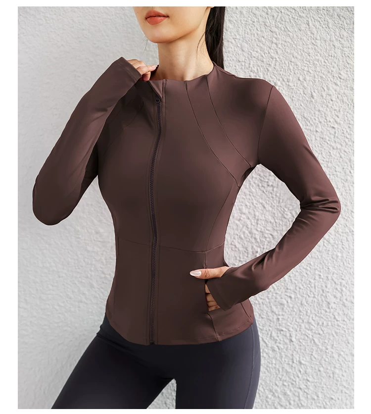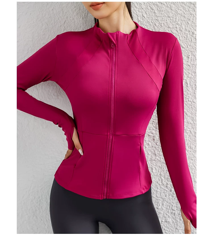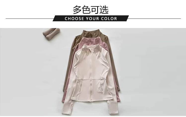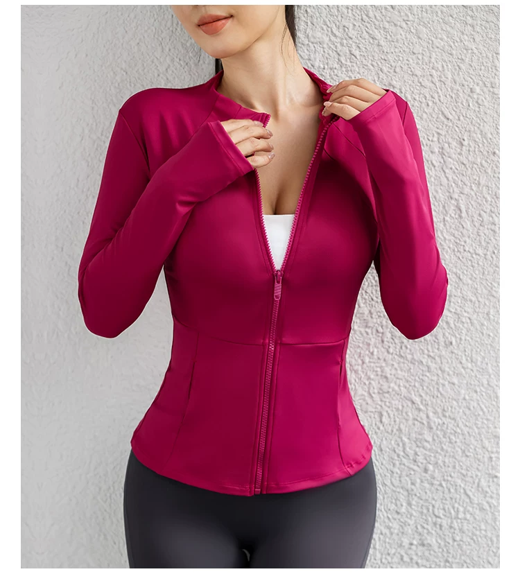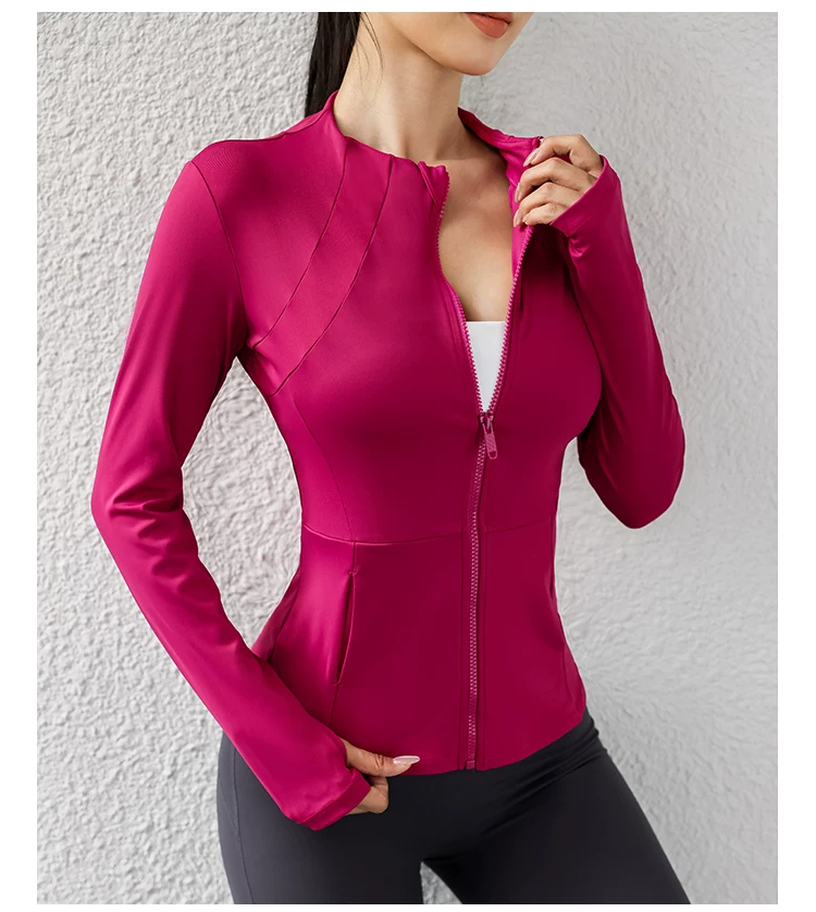 - Quần áo thể thao nữ, thiết kế ôm eo, giúp thon gọn, nhanh khô, đồ tập yoga, áo tập chạy dài tay, áo khoác có khóa kéo