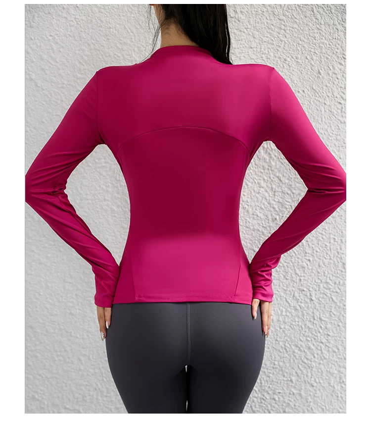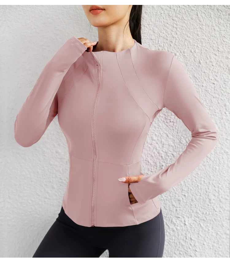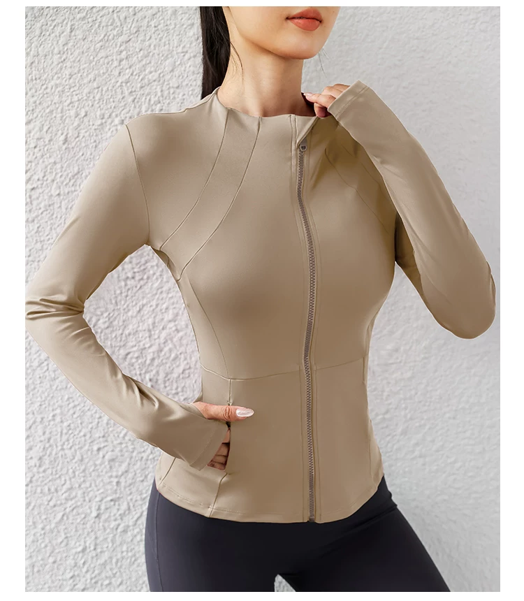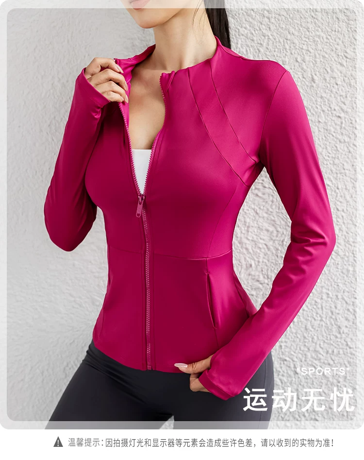 Quần áo thể thao nữ, thiết kế ôm eo, giúp thon gọn, nhanh khô, đồ tập yoga, áo tập chạy dài tay, áo khoác có khóa kéo