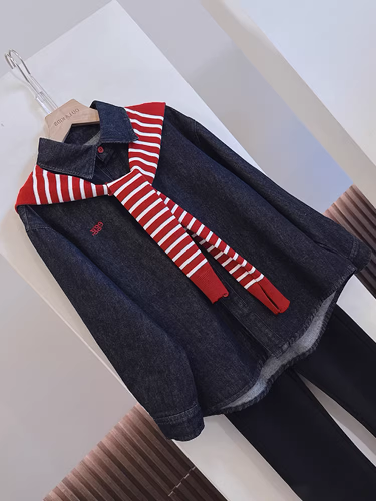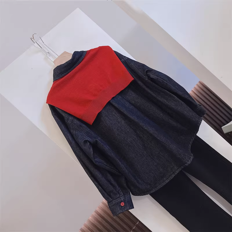 - Quần áo trẻ em 25 mùa thu quần áo bé gái phong cách Hàn Quốc chữ đơn giản màu gốc áo khoác denim mềm mại áo khoác đa năng cho trẻ lớn hơn