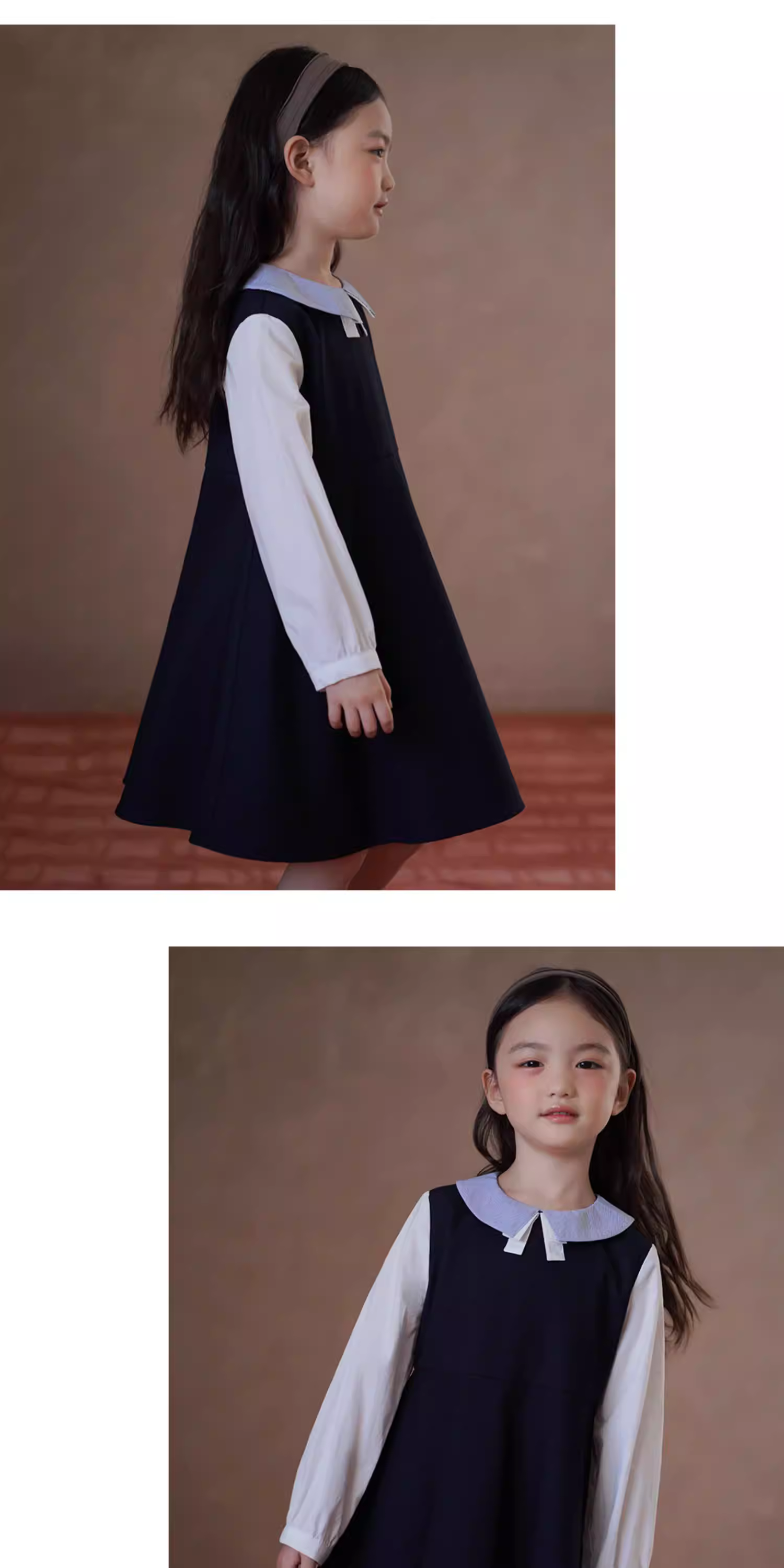 - Quần áo trẻ em cho mùa xuân và mùa thu, váy hai mảnh dài tay kiểu học sinh cho bé gái, váy dài màu xanh hải quân cho bé gái, trang phục mùa thu.