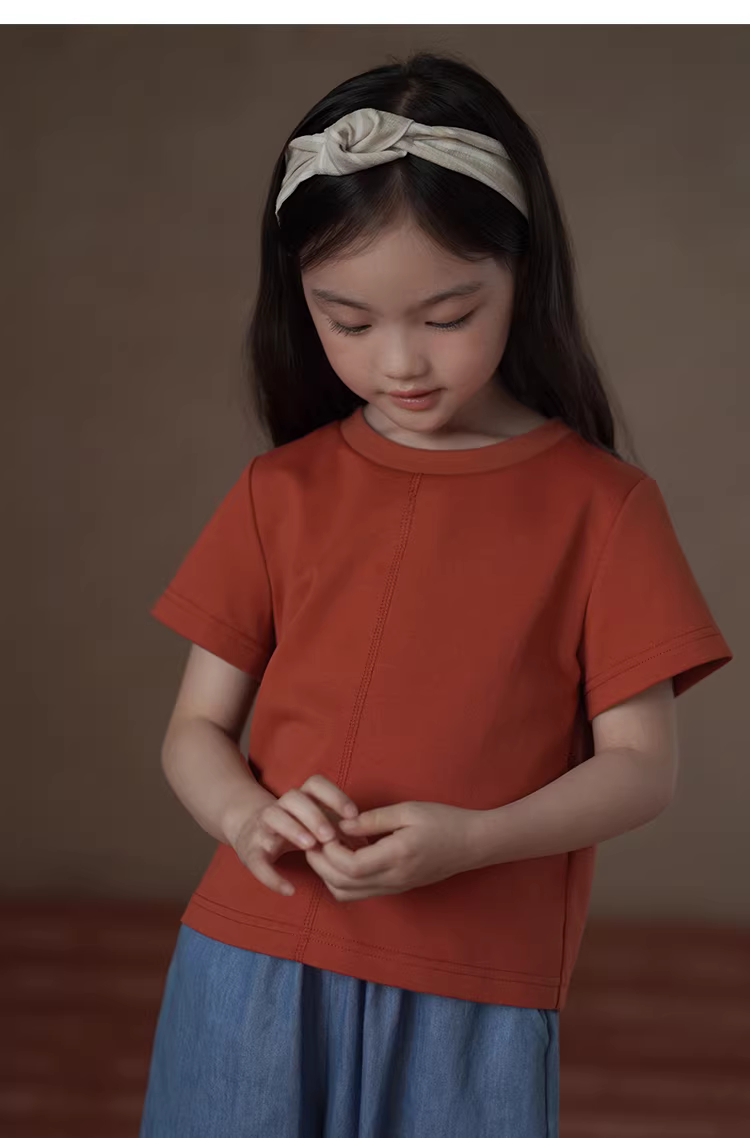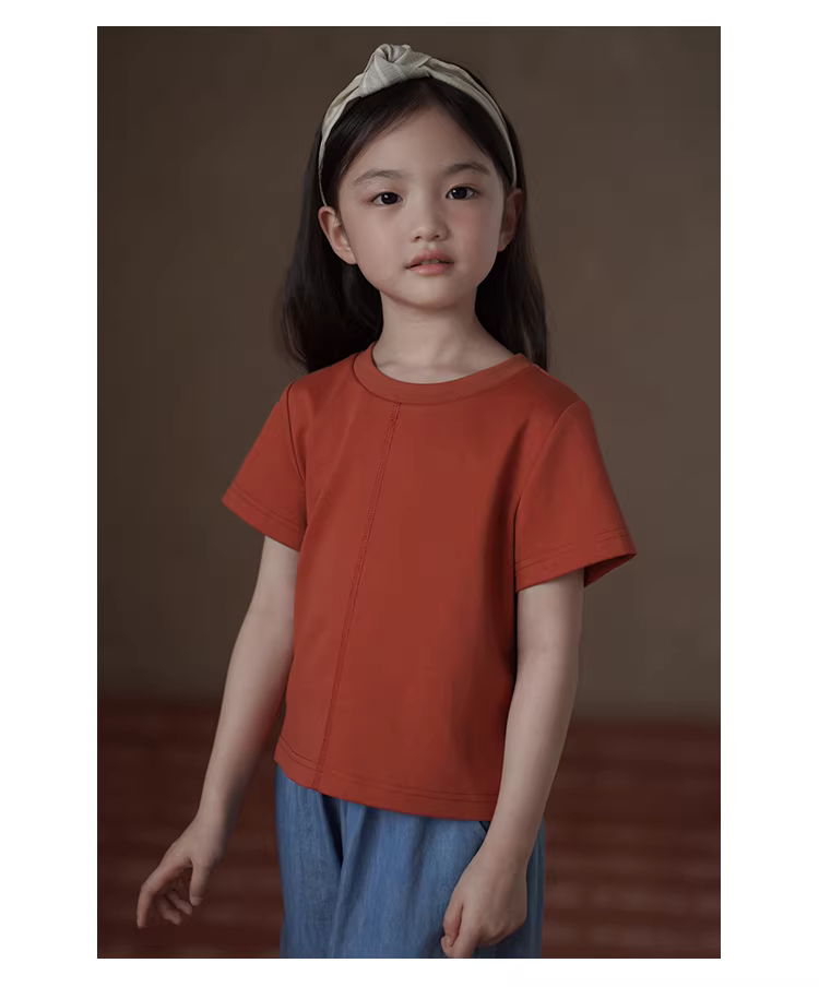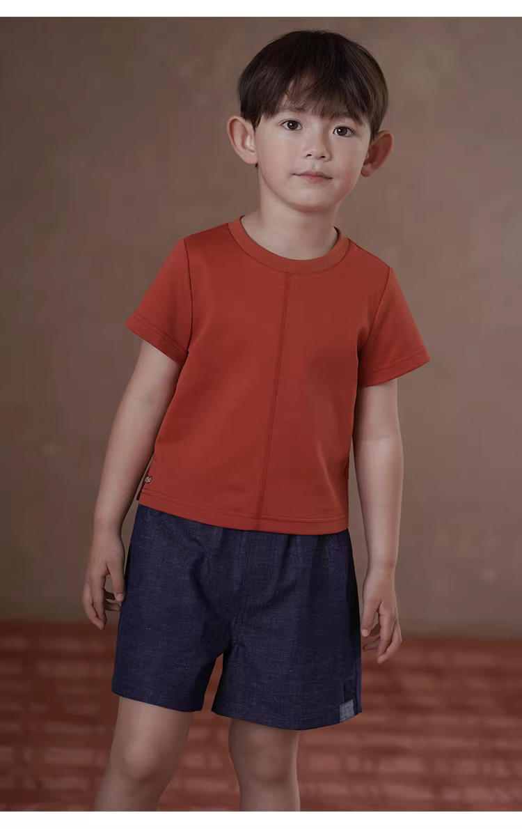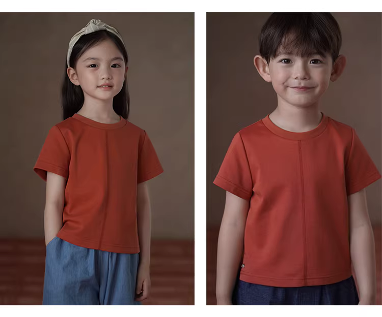 - Quần áo trẻ em Hazi Bộ sưu tập mùa hè mới Áo thun dệt kim thoáng khí thân thiện với da dành cho bé trai và bé gái Áo ngắn tay màu đỏ kiểu dáng mỏng