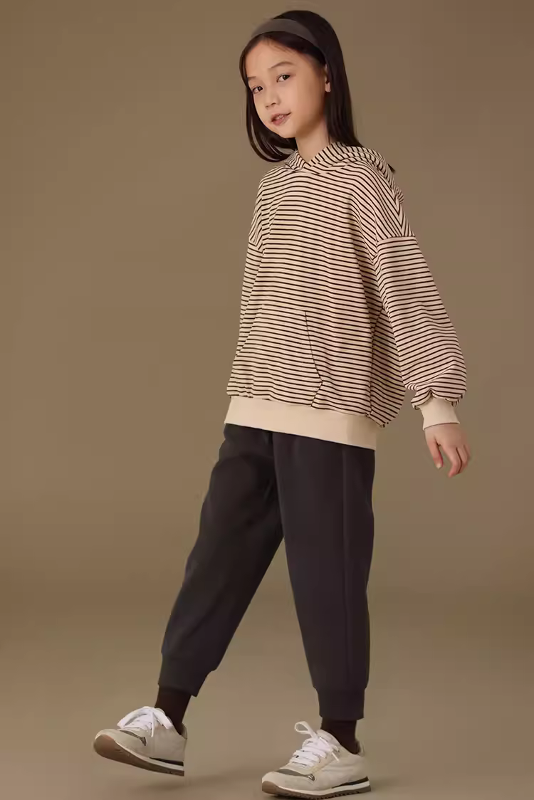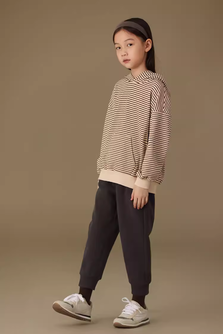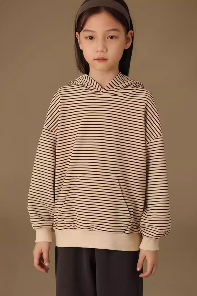 - Quần áo trẻ em Hazi Sản phẩm mới mùa thu Áo hoodie có túi kangaroo mềm mại thân thiện với làn da trẻ em Phong cách cha mẹ và con cái Áo len sọc giản dị
