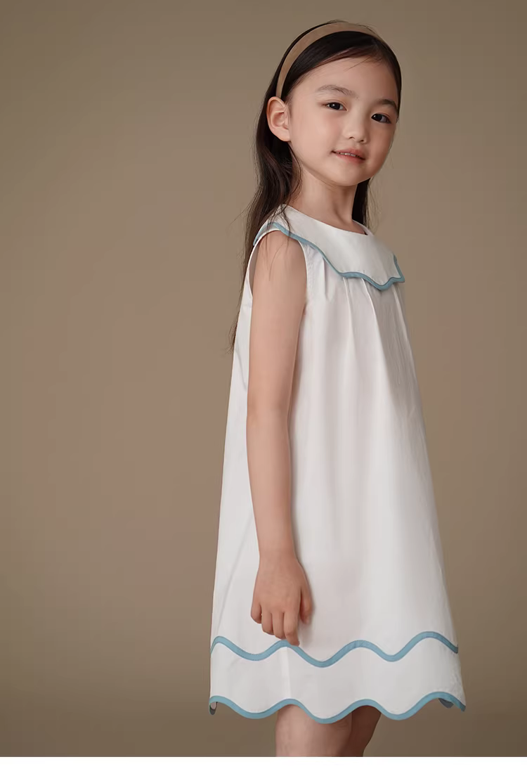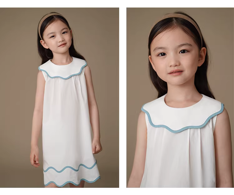 - Quần áo trẻ em Hazi Váy trẻ em mùa hè Váy màu sắc ngọt ngào cổ lớn Váy dài vừa phải Váy ba lỗ cho bé gái Trang phục mùa hè cho bé gái