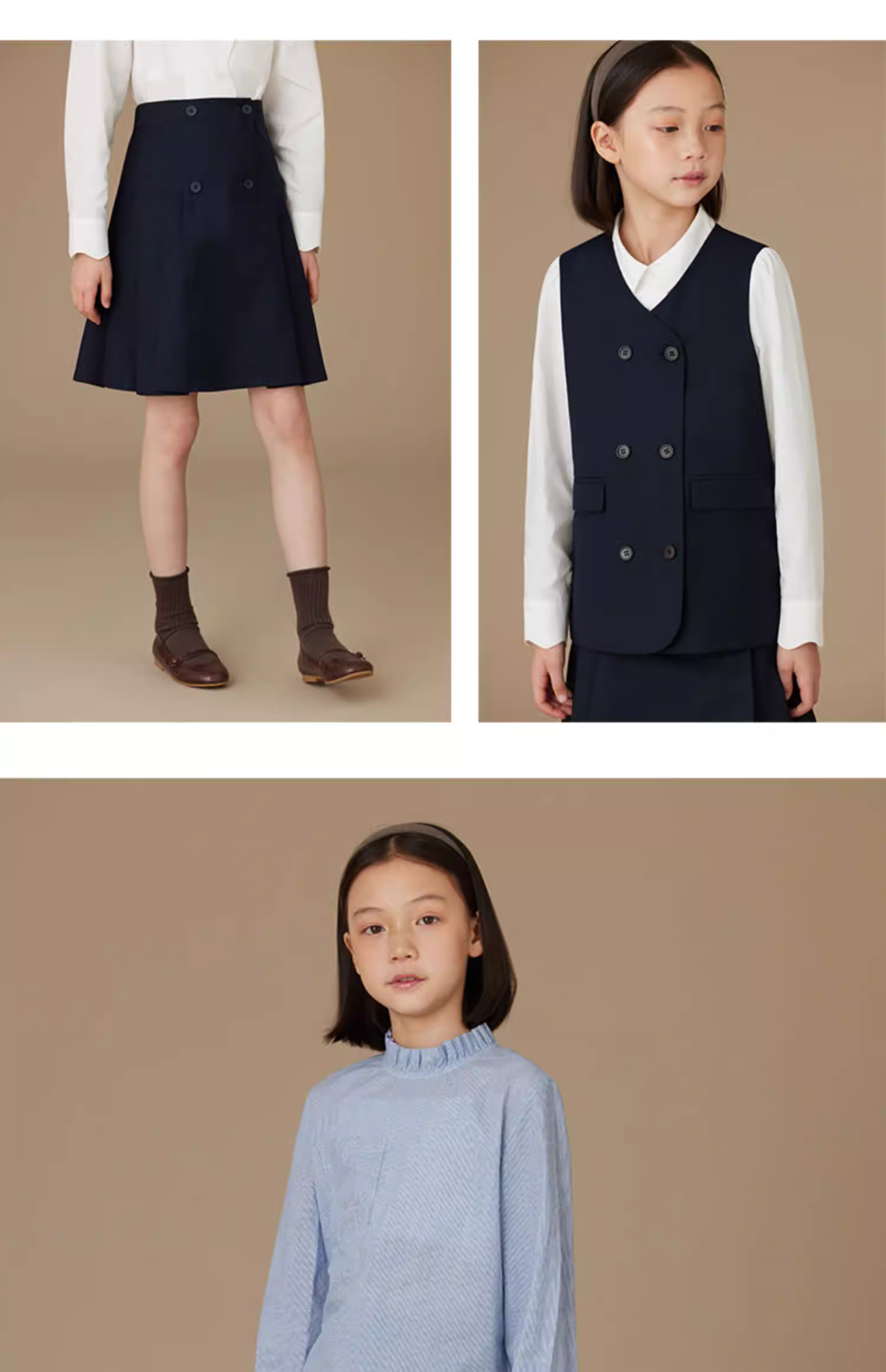 - Quần áo trẻ em Hazi Xuân/Hè Bộ đồ phong cách trường học cổ điển của Anh Bộ trang phục biểu diễn dành cho trẻ em Bộ áo vest nhiều lớp và váy ngắn dành cho bé gái