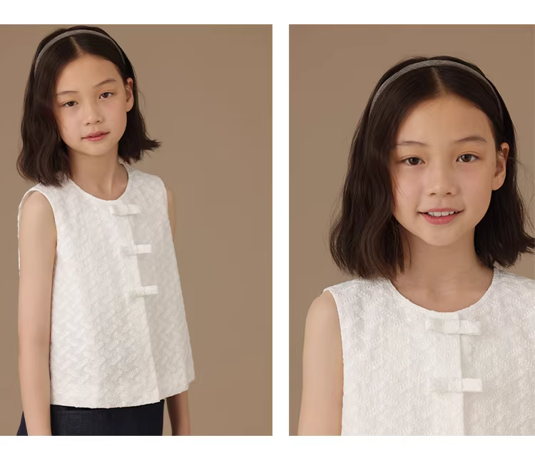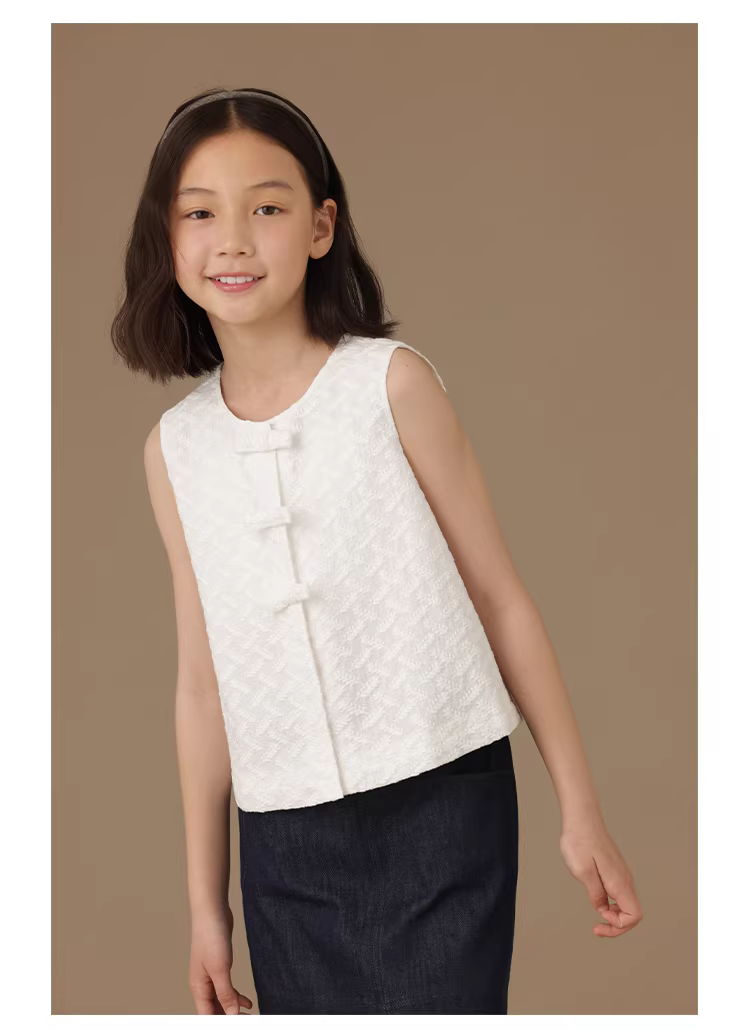 - Quần áo trẻ em màu trắng kiểu truyền thống áo không tay bằng vải jacquard hoàn toàn bằng cotton mặc mùa hè áo vest kiểu Trung Quốc mới dành cho bé gái áo khoác ngoài mỏng