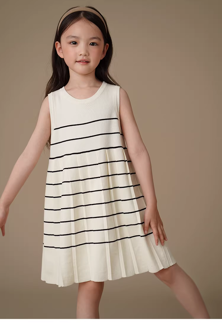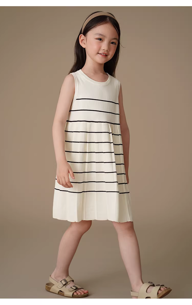 - Quần áo trẻ em mùa hè váy hai dây sọc cho bé gái váy dệt kim cho trẻ lớn hơn thiết kế đơn giản mặc mùa hè