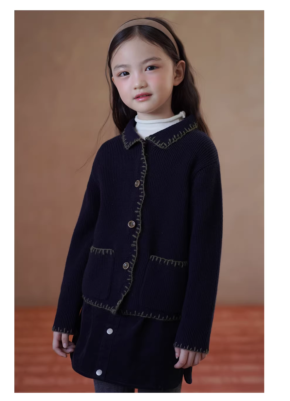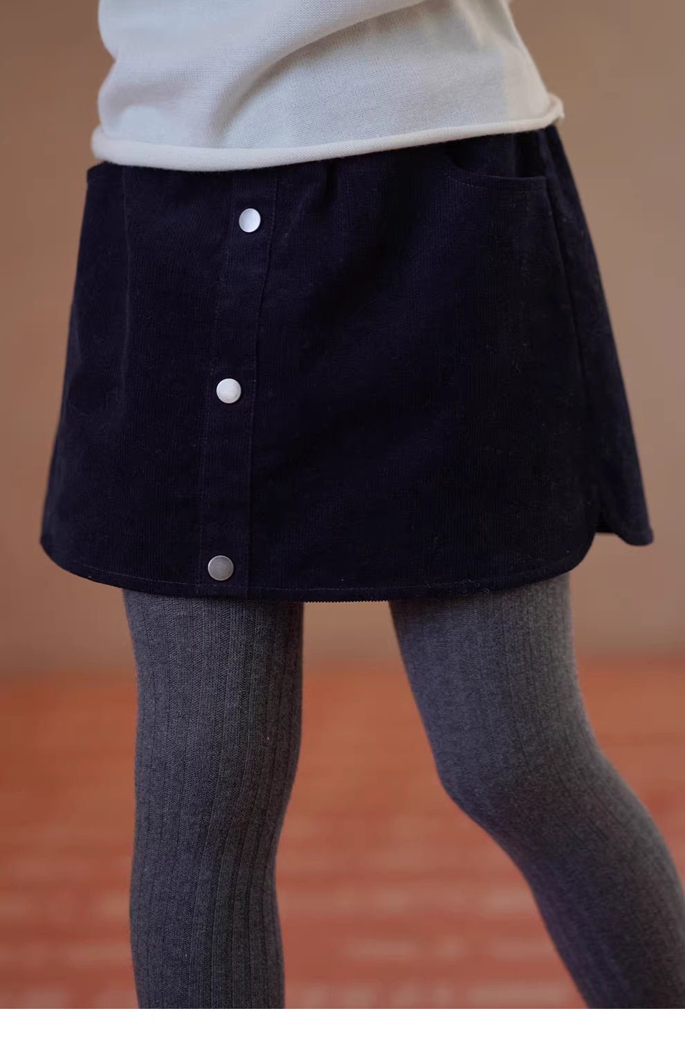 - Quần áo trẻ em mùa thu đông váy trẻ em giản dị đơn giản váy ngắn nhung kẻ màu hải quân váy chữ A ấm áp và dày dặn