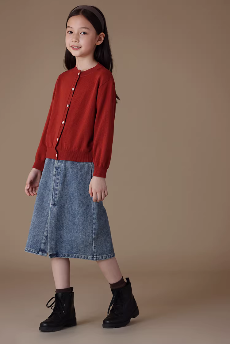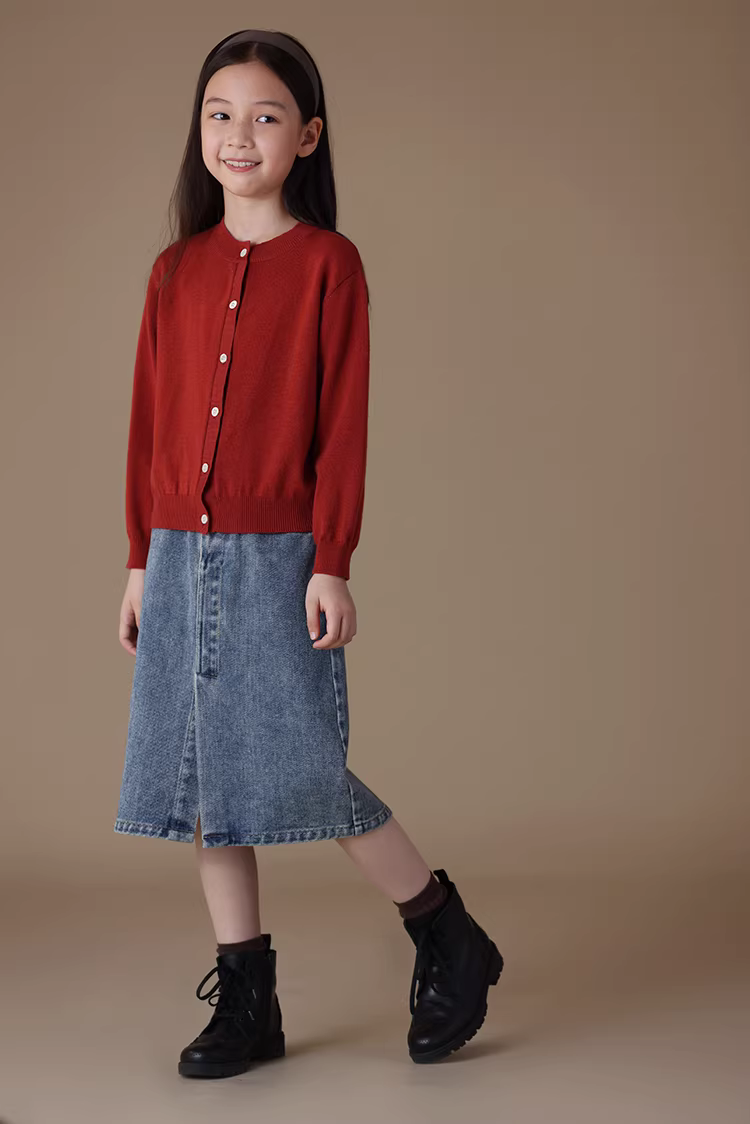 - Quần áo trẻ em mùa xuân thu áo kiểu thường ngày áo khoác cổ tròn màu đỏ hoa thu hải đường cổ điển cho trẻ lớn áo cardigan dệt kim cho bé gái