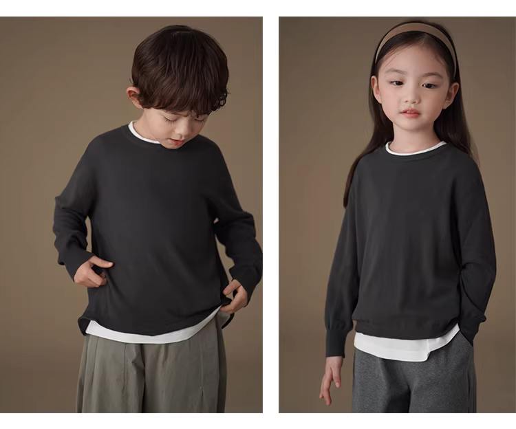 - Quần áo trẻ em mùa xuân thu áo len trẻ em giặt máy được chất liệu dệt kim thường ngày áo thun dài tay bé trai và bé gái