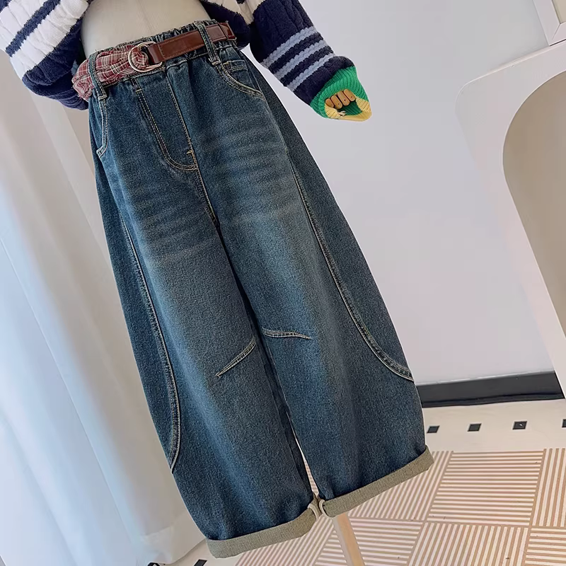 Quần áo trẻ em thu đông 2025 kiểu mới, quần kaki bé trai bé gái, quần kiểu Hàn Quốc, quần kẻ caro, quần bò có dây lưng, quần bố