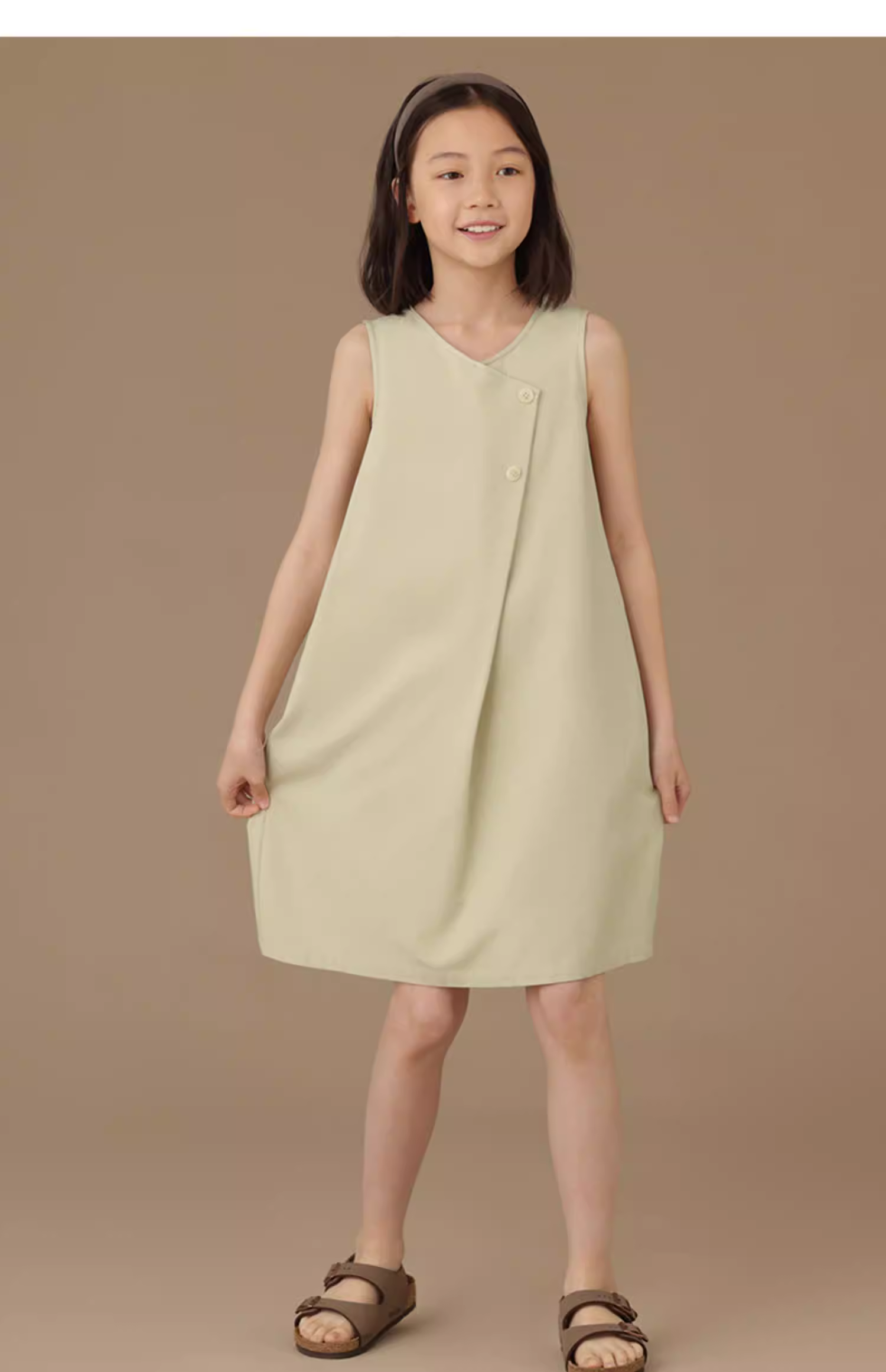 Quần áo trẻ em, váy ba lỗ màu xanh nhạt cho trẻ em, váy mùa hè cho bé gái có thiết kế độc đáo, váy bé gái sành điệu.