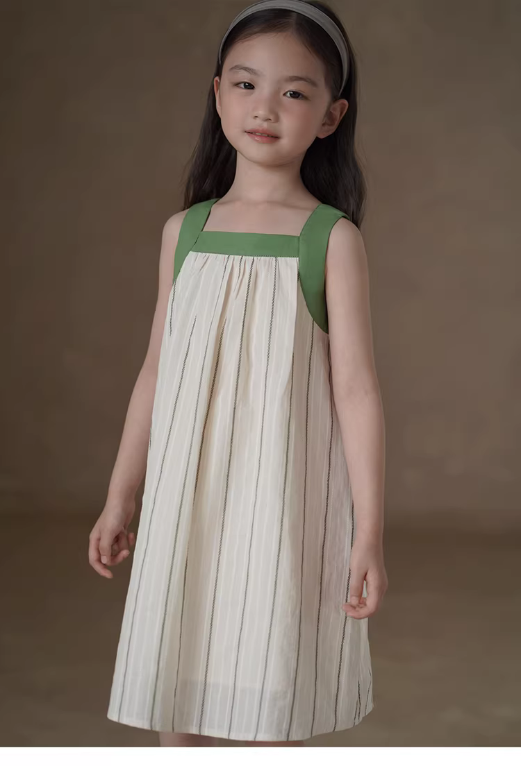 - Quần áo trẻ em váy không tay sọc phong cách nghỉ dưỡng váy dây đeo cho bé gái váy dài vừa phải thân thiện với làn da cotton nguyên chất