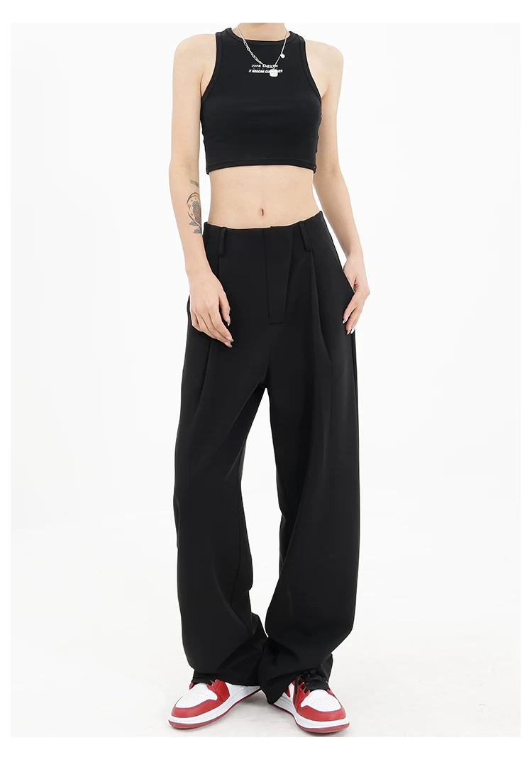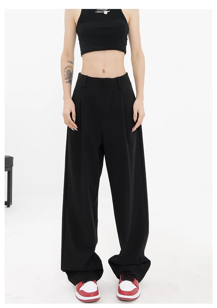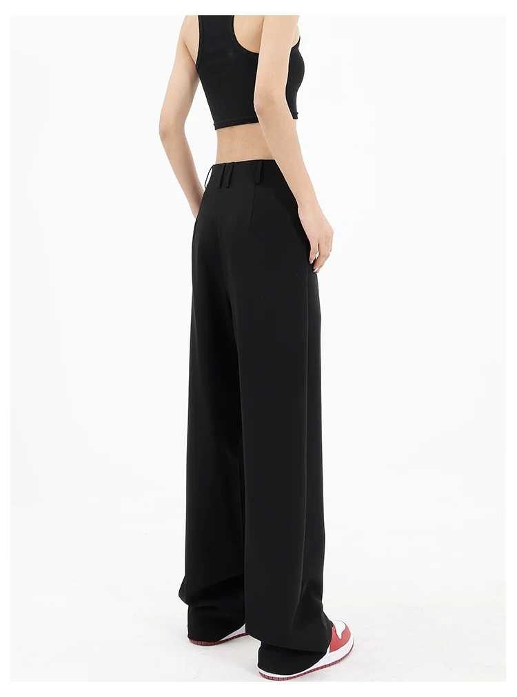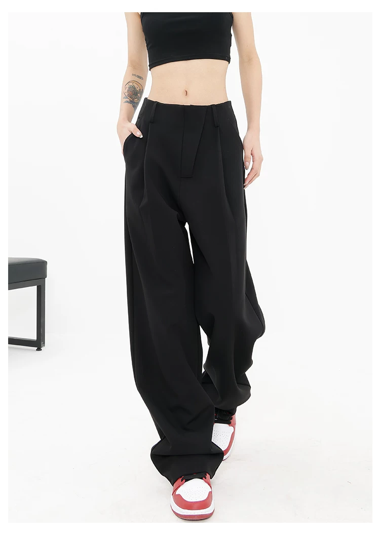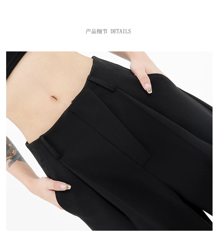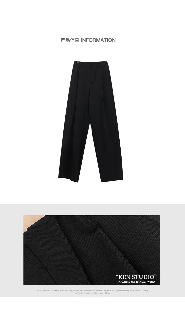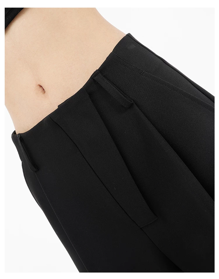 Quần âu đen thiết kế độc quyền của KEN STUDIO dành cho nữ, mùa xuân thu 2025, kiểu dáng rộng rãi, thoải mái.