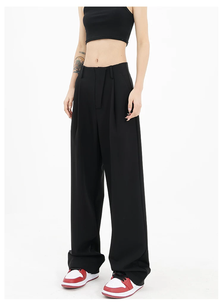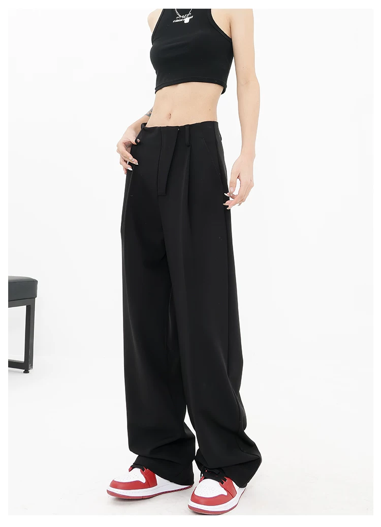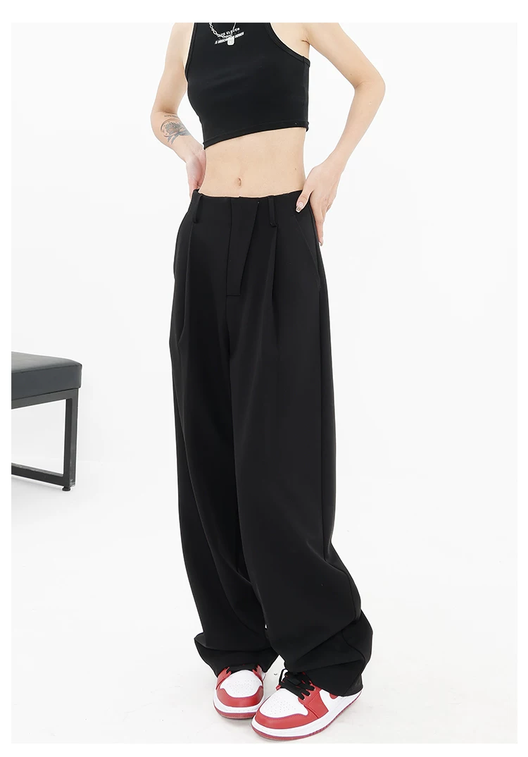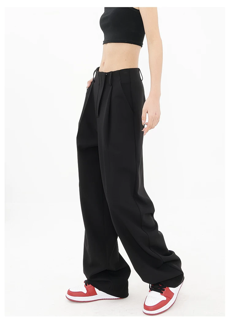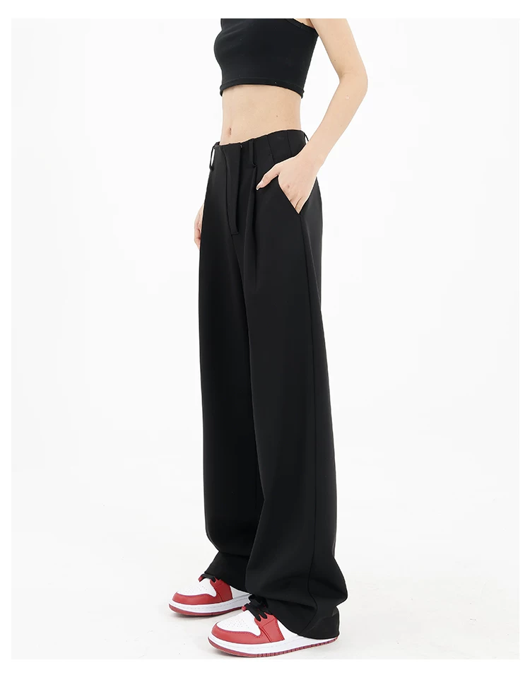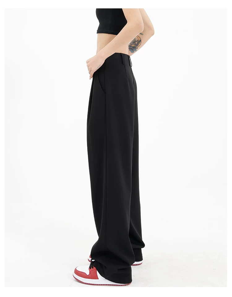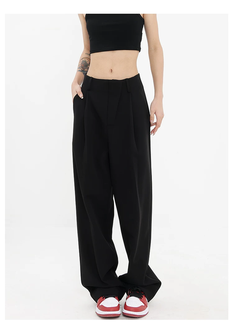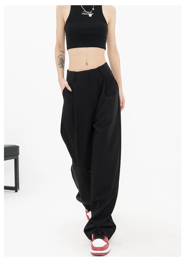 Quần âu đen thiết kế độc quyền của KEN STUDIO dành cho nữ, mùa xuân thu 2025, kiểu dáng rộng rãi, thoải mái.