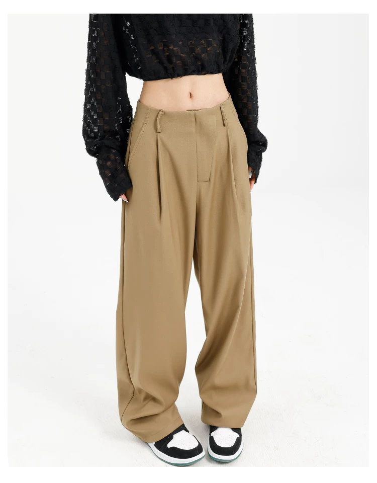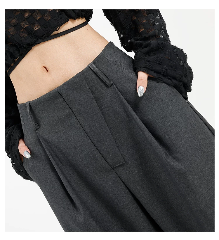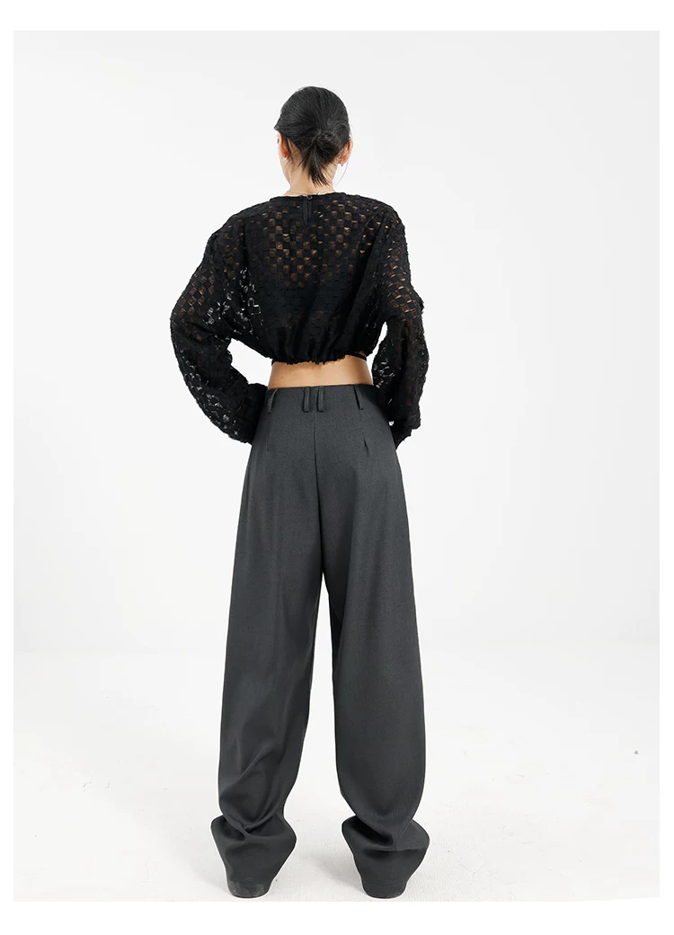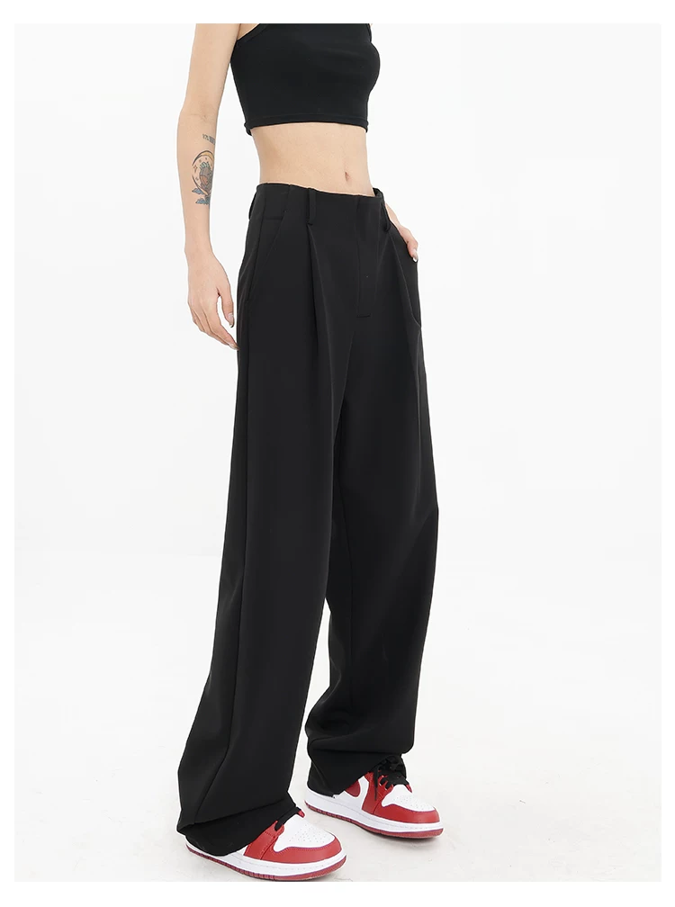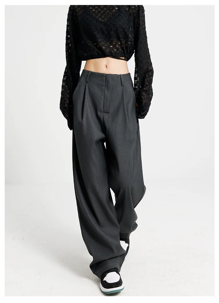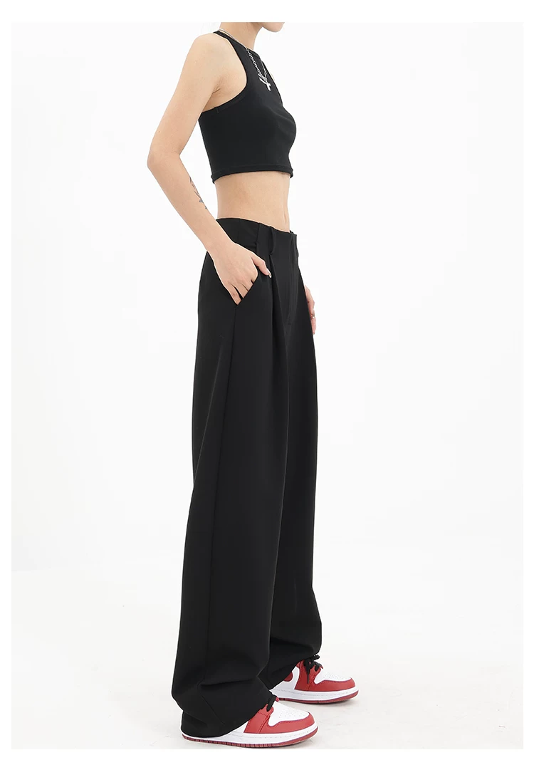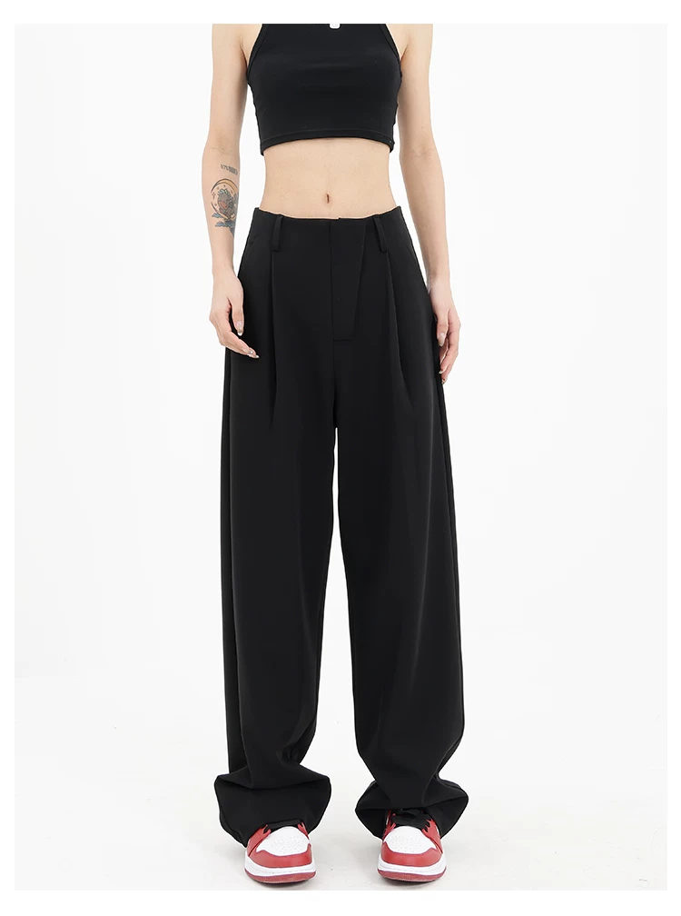 Quần âu đen thiết kế độc quyền của KEN STUDIO dành cho nữ, mùa xuân thu 2025, kiểu dáng rộng rãi, thoải mái.