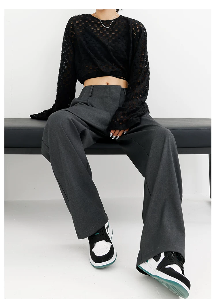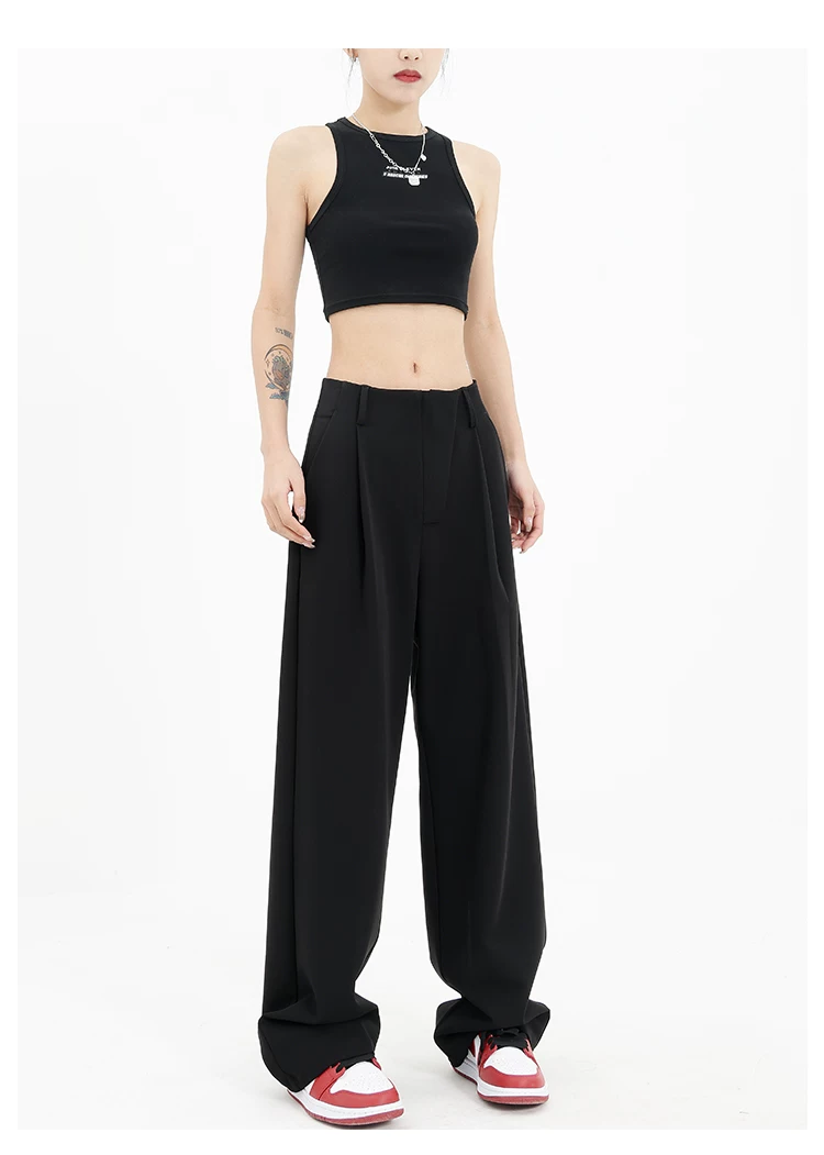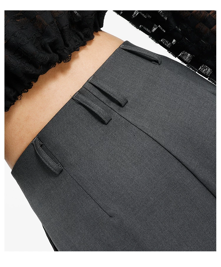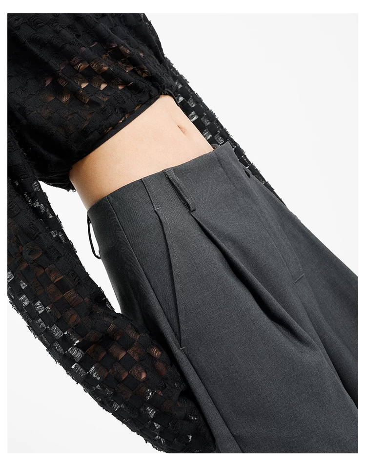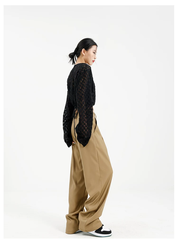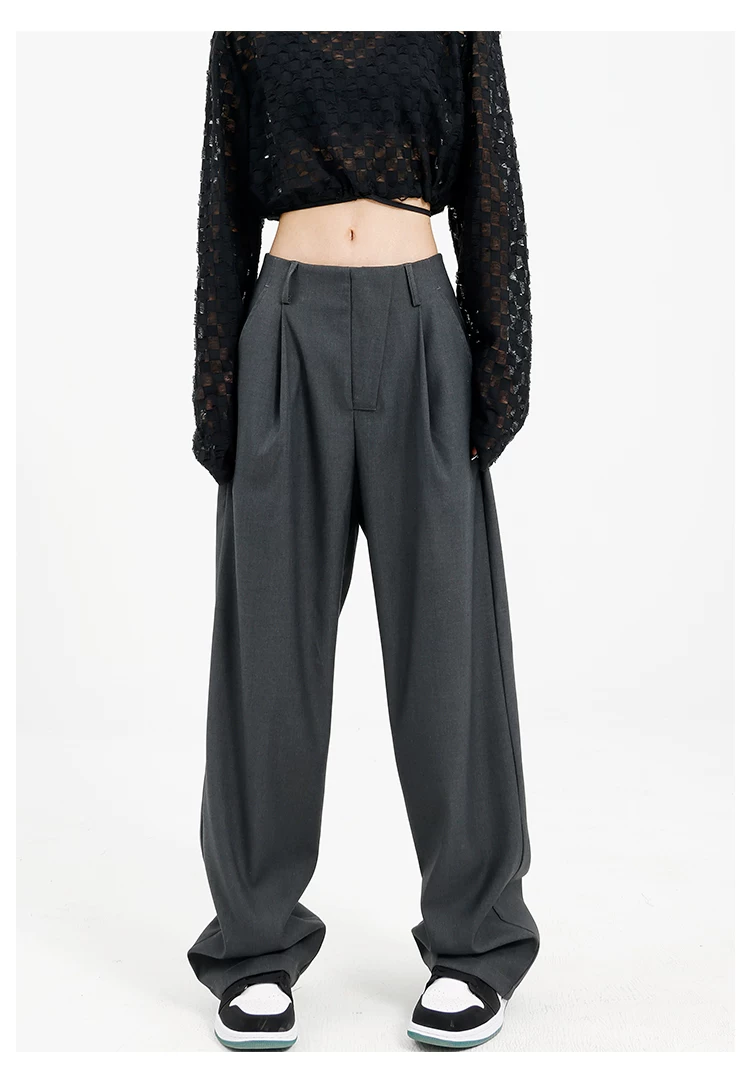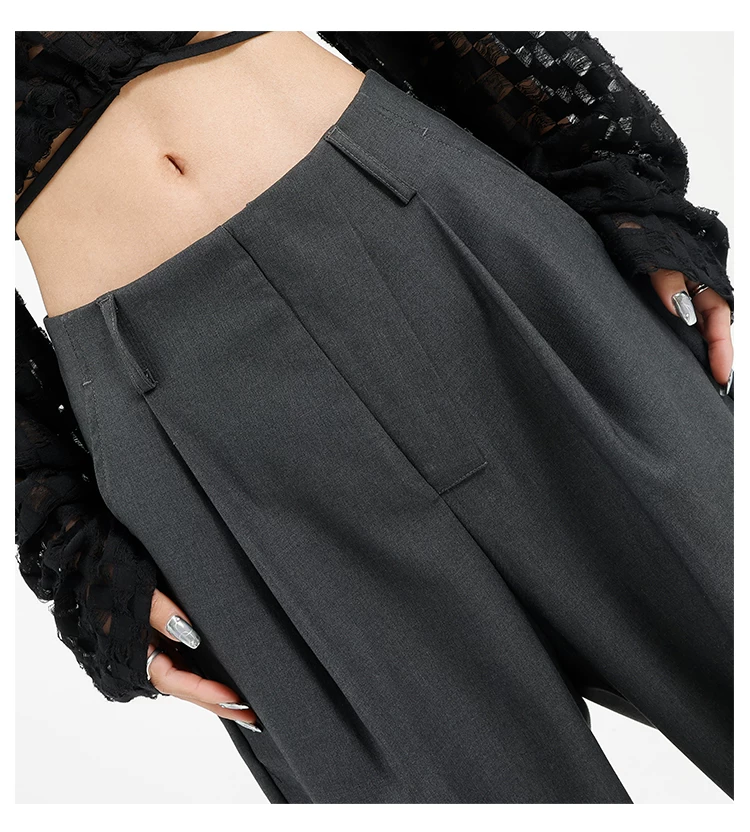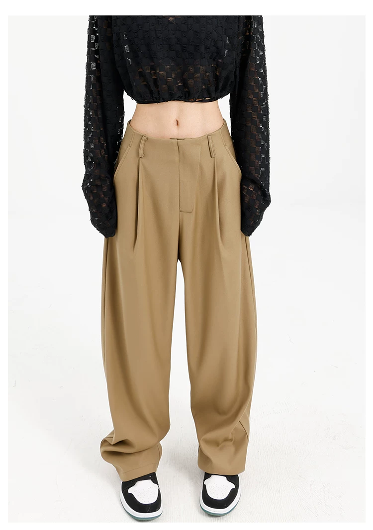 Quần âu đen thiết kế độc quyền của KEN STUDIO dành cho nữ, mùa xuân thu 2025, kiểu dáng rộng rãi, thoải mái.