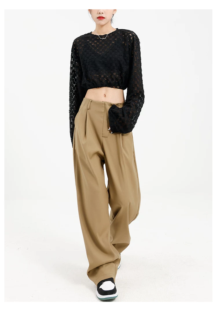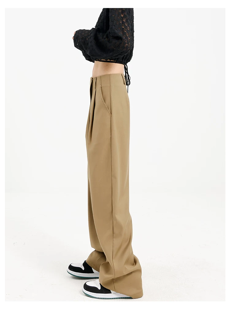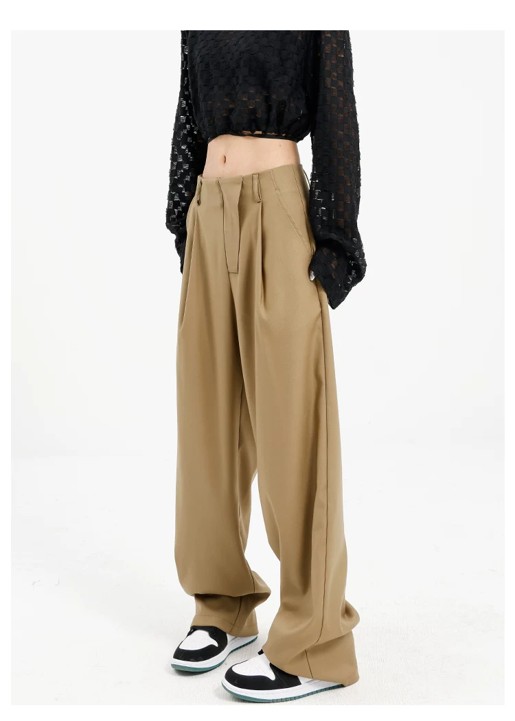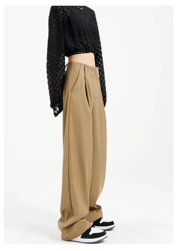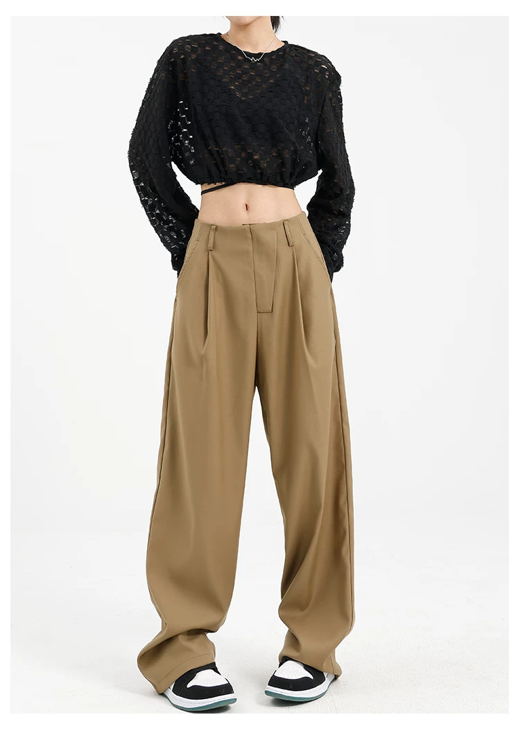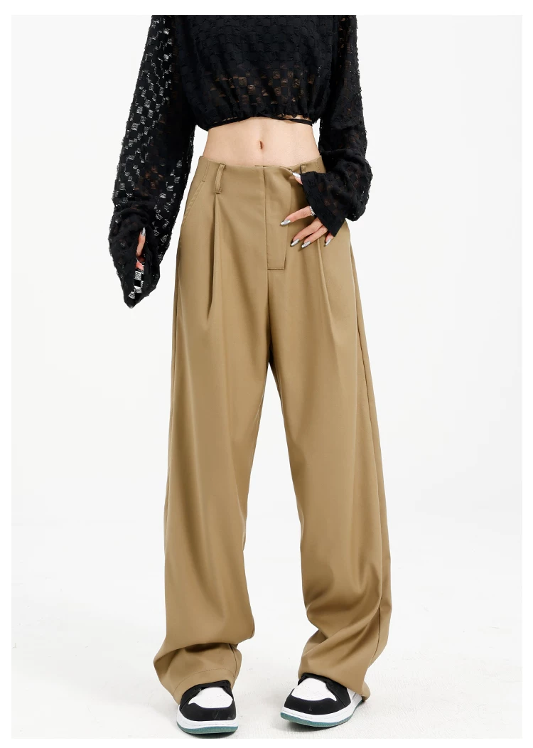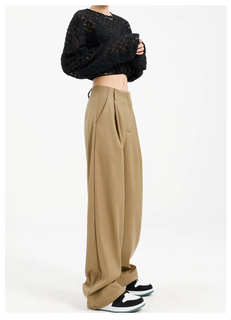 Quần âu đen thiết kế độc quyền của KEN STUDIO dành cho nữ, mùa xuân thu 2025, kiểu dáng rộng rãi, thoải mái.
