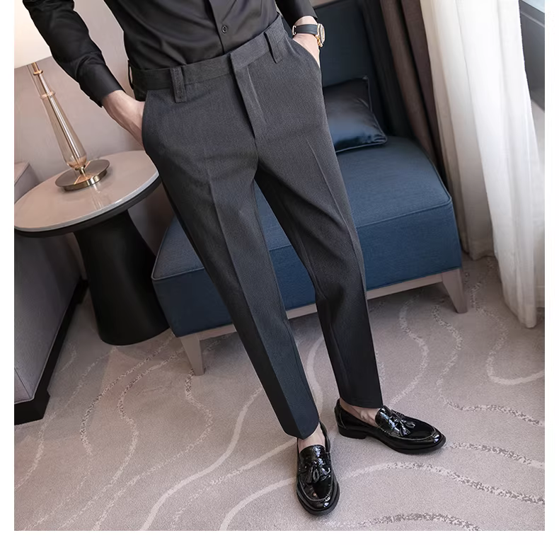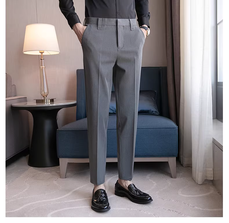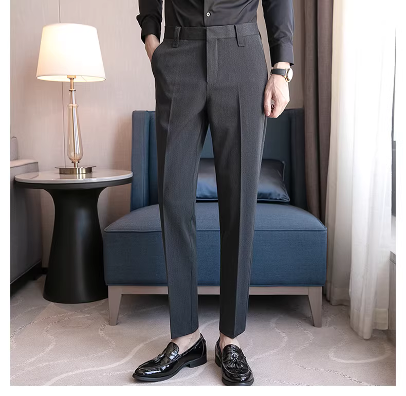 Quần âu nam cao cấp, dáng ôm dài, quần âu công sở không nhăn, kiểu dáng Anh, quần âu lịch sự.