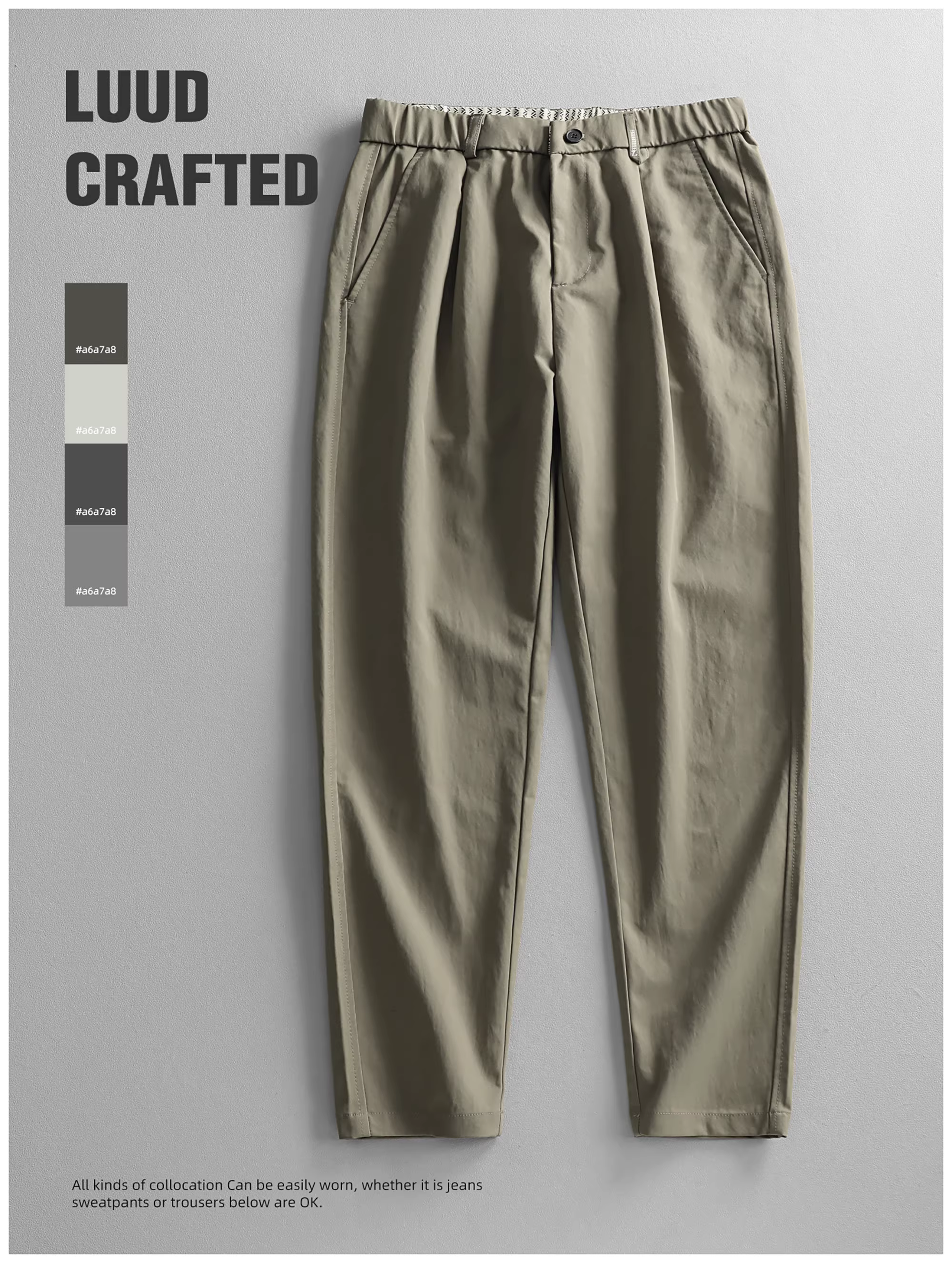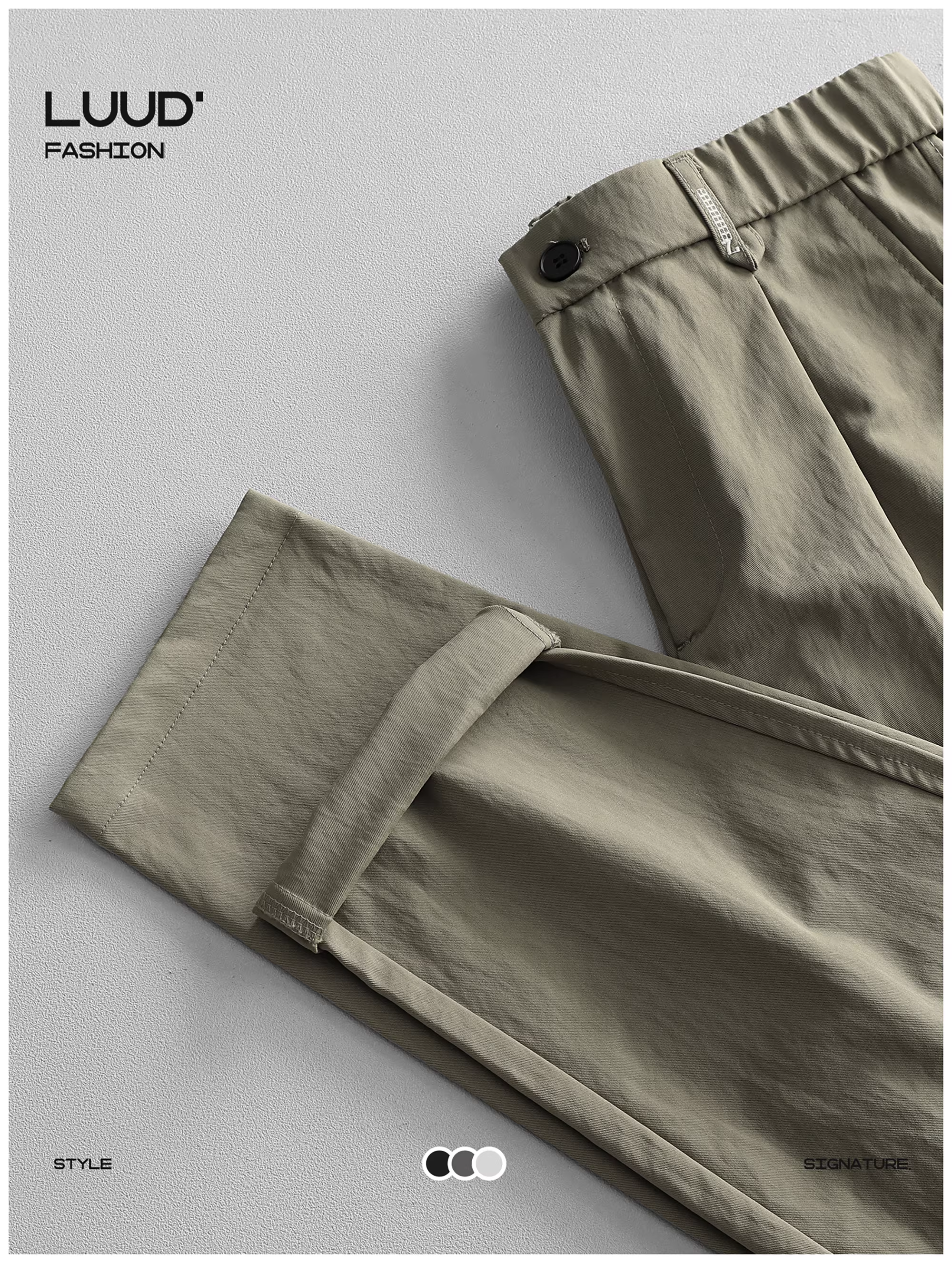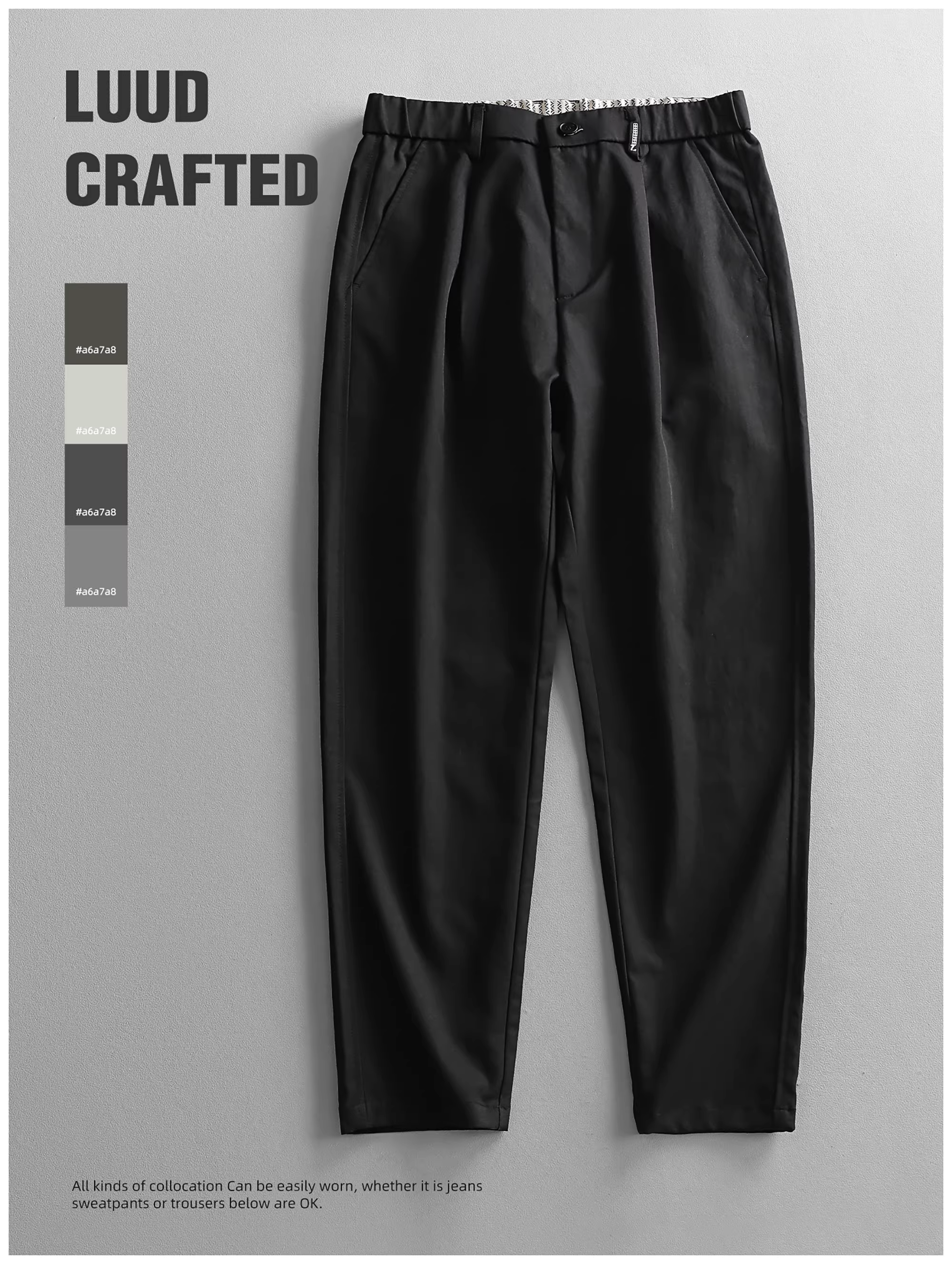 - Quần âu nam LUUD kiểu dáng thời trang, thiết kế ba chiều, chất liệu thoải mái, lưng thun bán co giãn, ống côn, màu trơn.