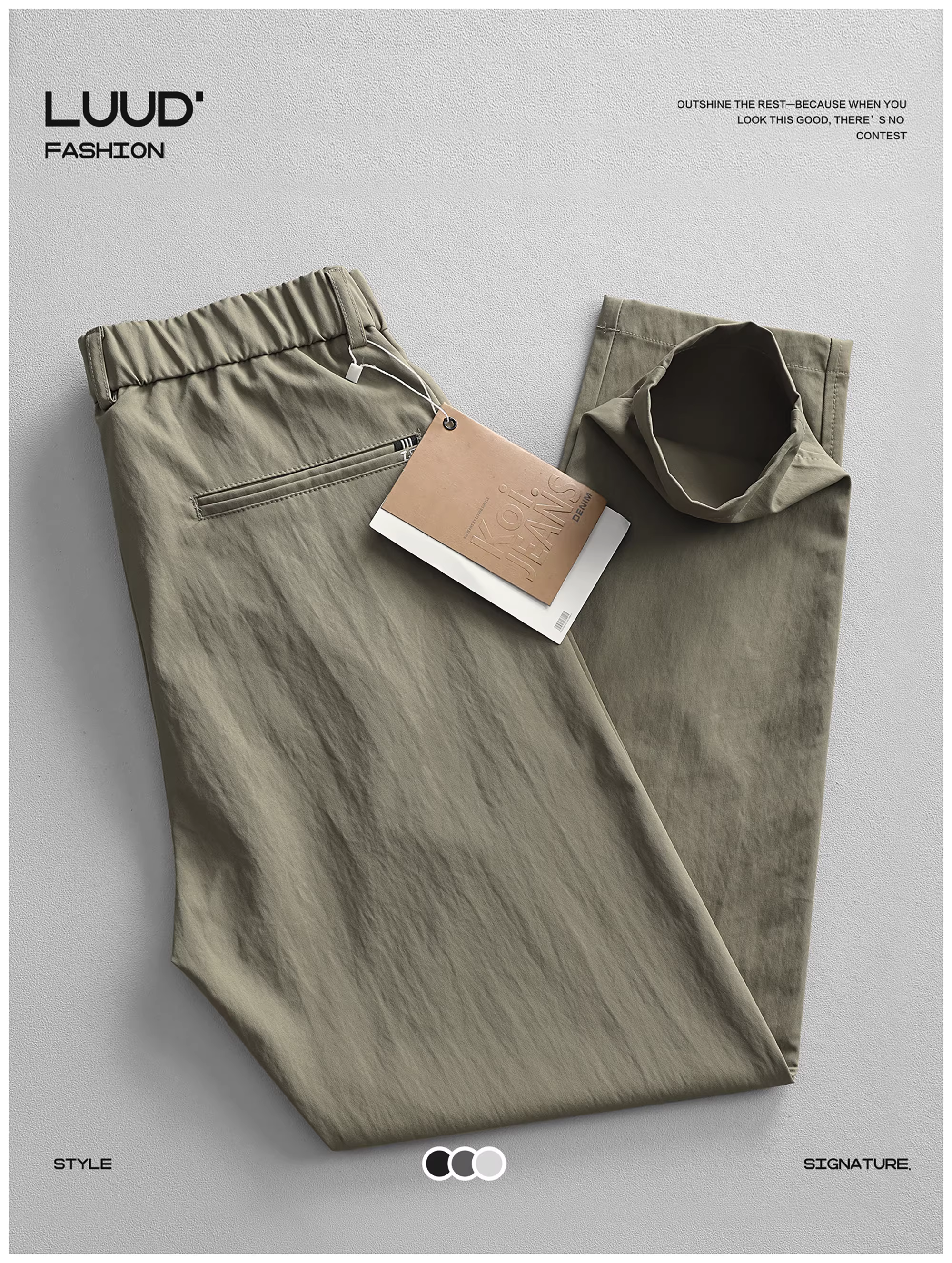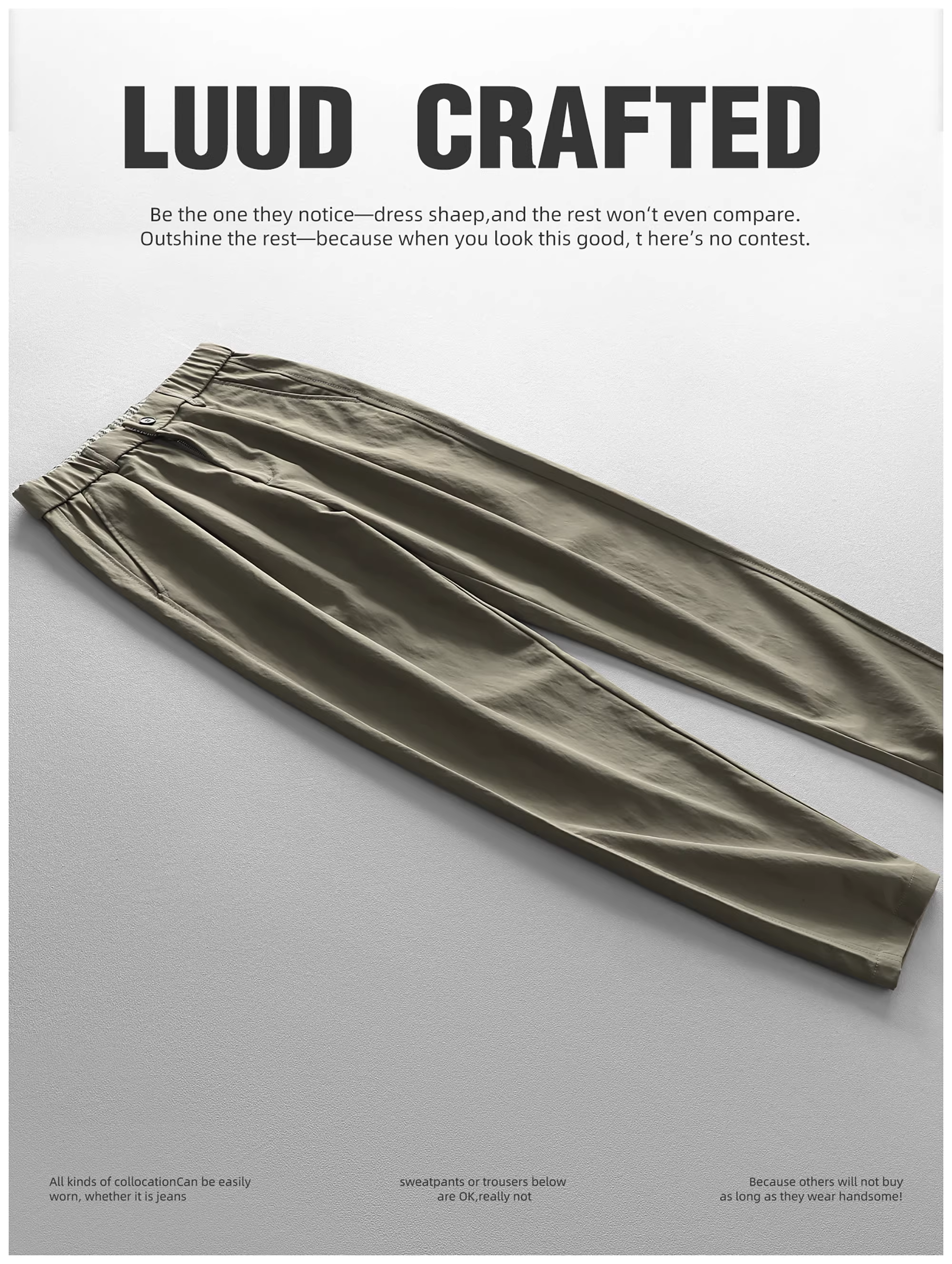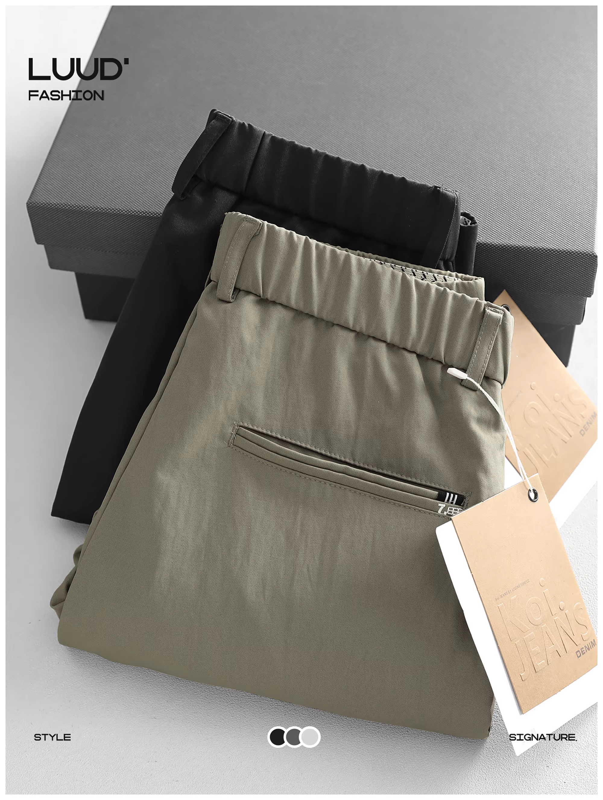 - Quần âu nam LUUD kiểu dáng thời trang, thiết kế ba chiều, chất liệu thoải mái, lưng thun bán co giãn, ống côn, màu trơn.