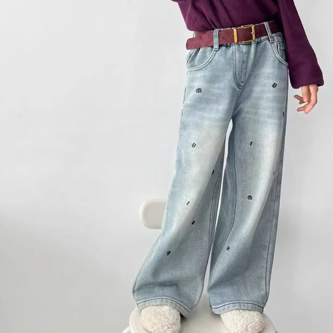Quần bé gái 25 kiểu mới xuân thu, quần áo mùa thu cho trẻ lớn, quần jean ống rộng dáng suông kiểu Hàn Quốc nhỏ nhắn, quần dài