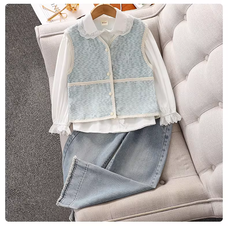 - Quần bé gái cho mùa xuân và mùa thu, quần ống rộng dáng rộng sành điệu cho bé gái lớn tuổi, quần jean ống thẳng thường ngày phong cách Hàn Quốc cho bé gái.