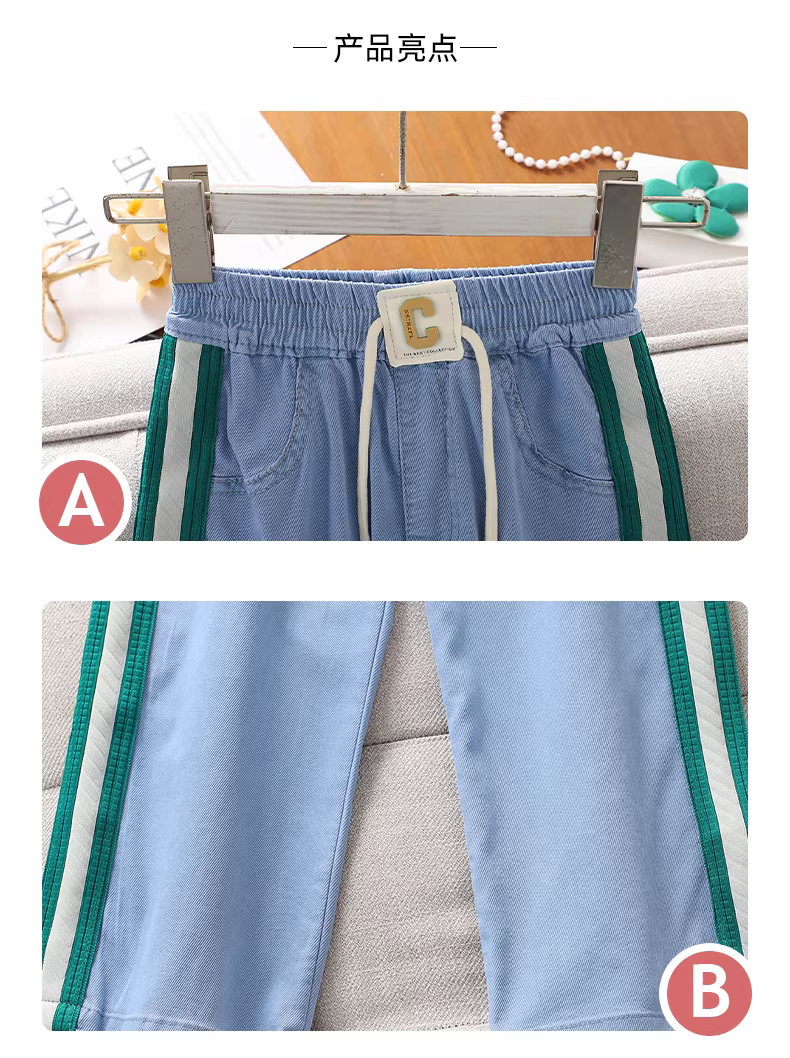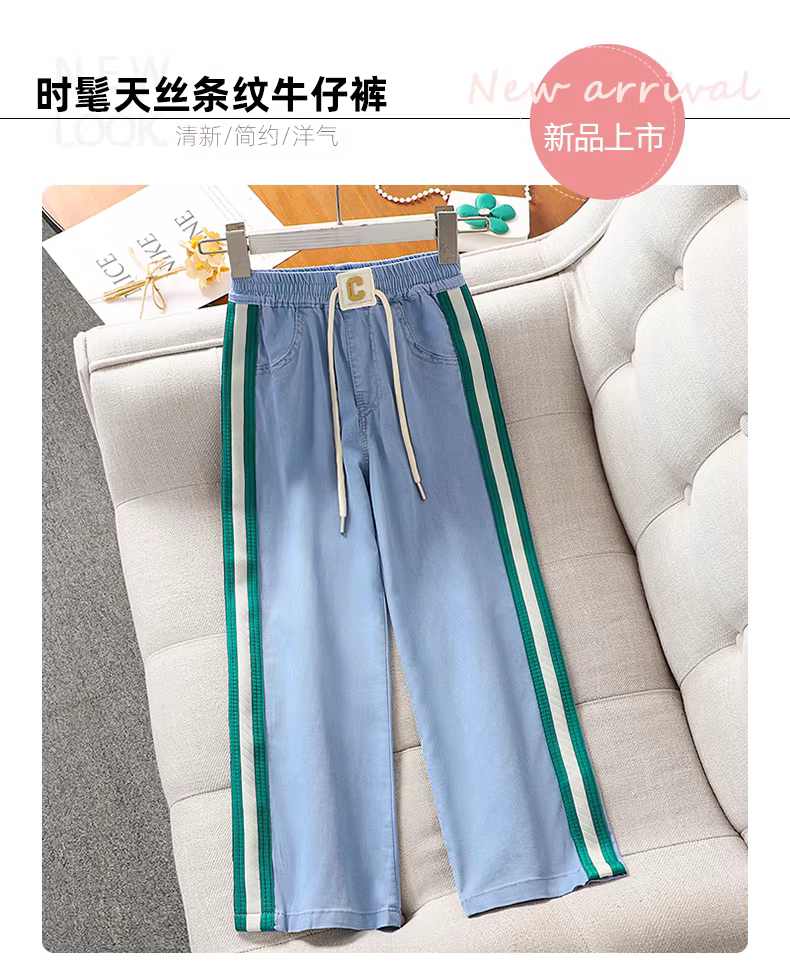- Quần bé gái hè 2025 kiểu mới, quần jean Tencel trẻ em chất liệu lụa đá mỏng, quần ống rộng dáng thẳng cho bé lớn