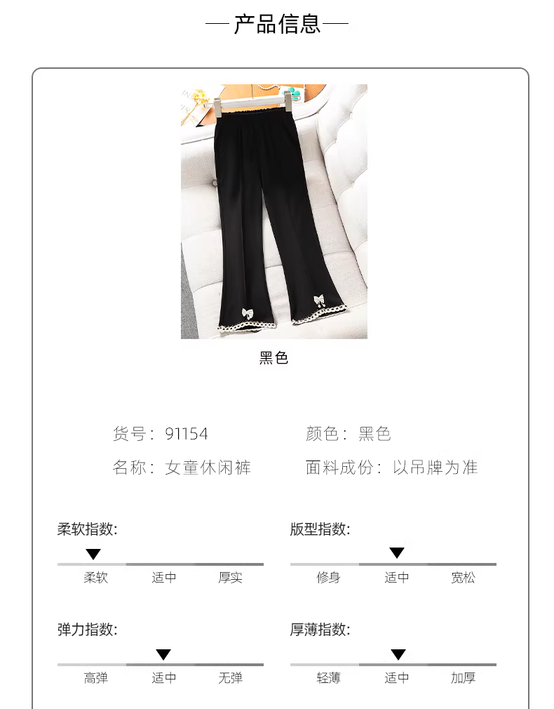 Quần bé gái xuân thu, quần loe trẻ em màu đen xuân 2025, quần mùa xuân mới, quần loe hơi rộng cho bé lớn, quần thường ngày trẻ em