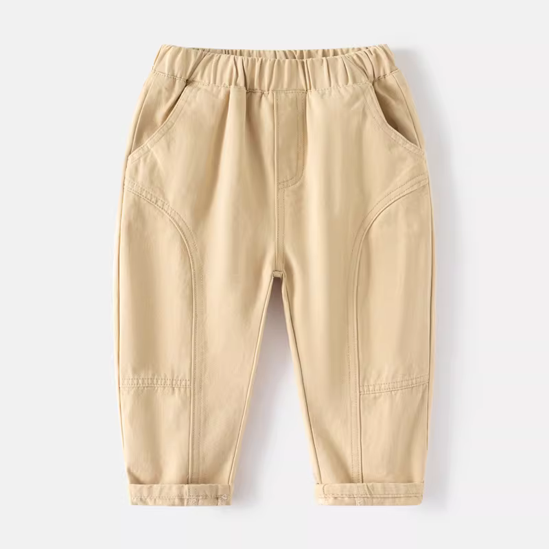 - Quần cargo bé trai xuân hè 2025 kiểu Hàn Quốc, chất liệu cotton nguyên chất, lưng thun, quần dài rộng rãi, thời trang
