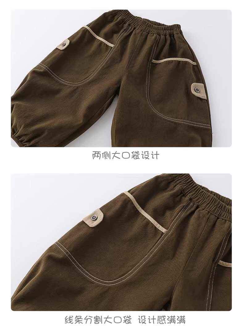 - Quần cargo cotton trẻ em xuân thu 2025, quần trẻ em mới, quần dài trẻ nhỏ, thời trang thu đông bé trai